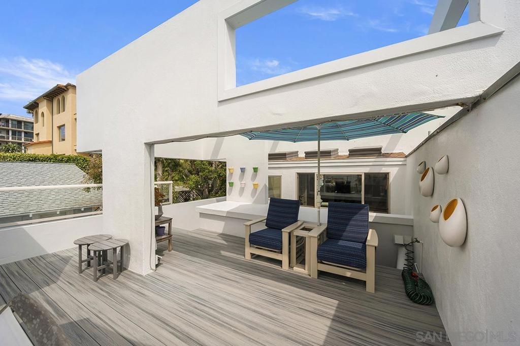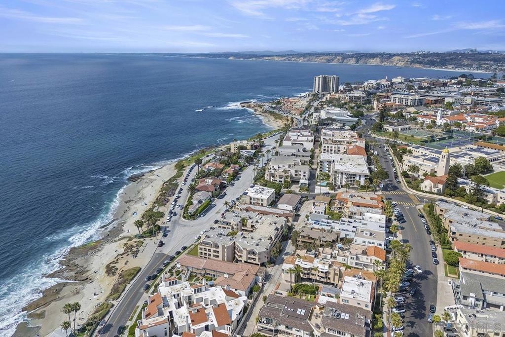 Welcome to 356 Prospect in the Village of downtown La Jolla. Located just a half block to the beach, this ocean view two story, -1- bedroom plus den, townhome in a boutique well maintained 8 unit building is a true delight. Offering over 1,500 square feet, plus a 400+ sq ft private ocean view deck ideal for entertaining and soaking up the sun, units like this rarely come up for sale and are always in high demand when they do. Multiple skylights, wood flooring throughout, newer windows and appliances, updated baths. Just a terrific location in the Village with low HOA dues, one parking space in the shared garage, plus a designated parking spot behind it in the alley. A wonderful opportunity for the fortunate few. Spectacular ocean view two story townhome at 356 Prospect Street in the Village of La Jolla with a huge 400+ sq foot private deck. Truly an amazing one bedroom plus den unit located just a stone's throw from the water and fine restaurants in town. This renovated unit has a powder room on the main level, and downstairs you will find the large primary bedroom, dual sink primary bathroom, walk-in closet; along with a den(optional bedroom?) & full size laundry closet -- and another full bathroom. The den with built-in cabinetry could potentially serve as a guest bedroom with a second exit door to quickly escape to the beach. Low HOA dues, parking for 2 cars (one in a shared 2 car garage with storage and then the spot outside behind it in the alley), and more. Be sure to view the 3D tour. See you in escrow!