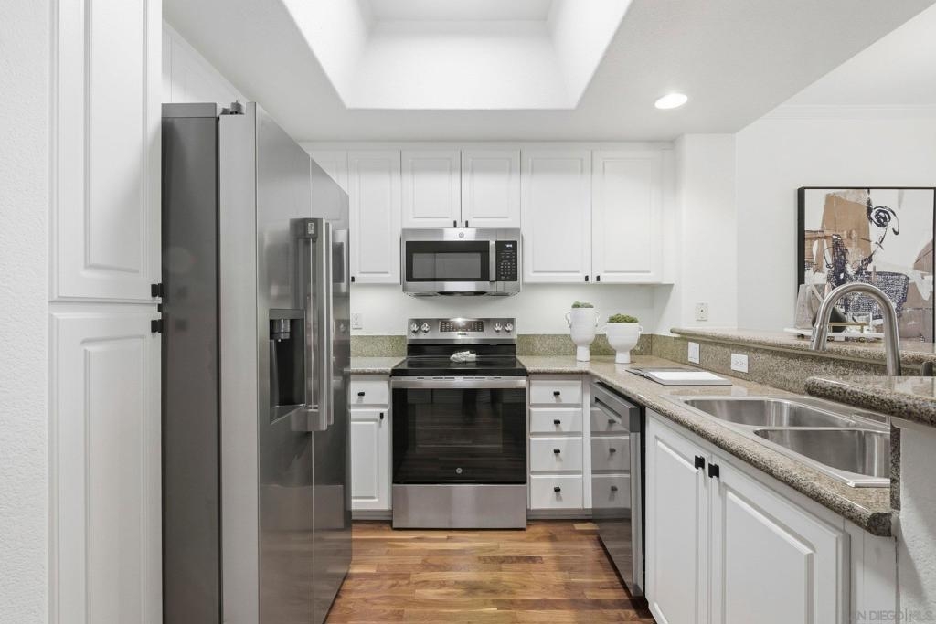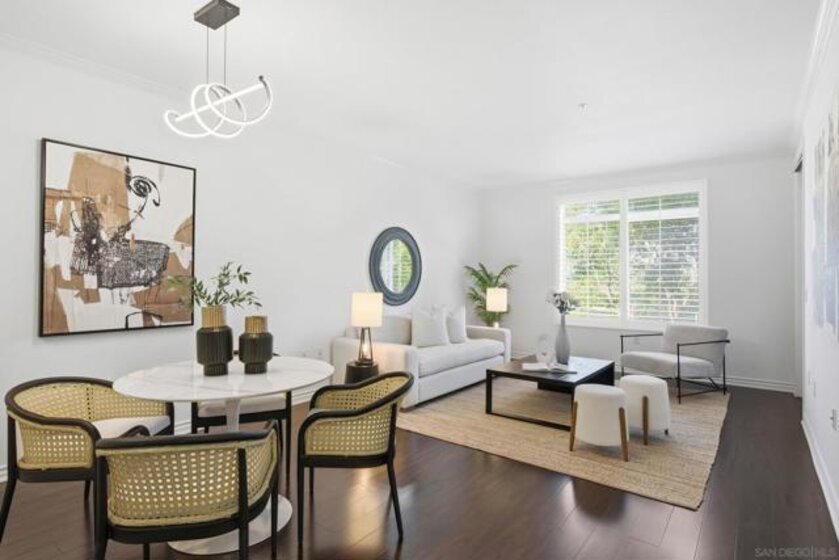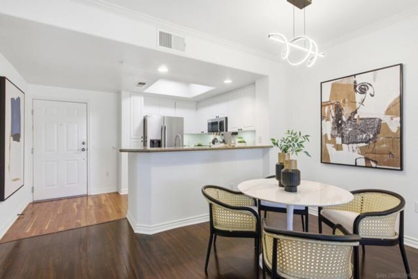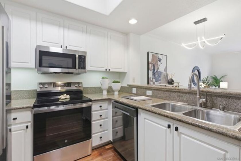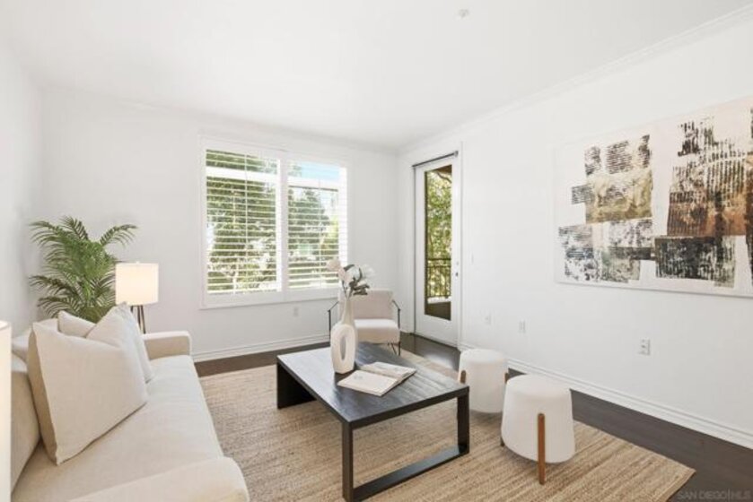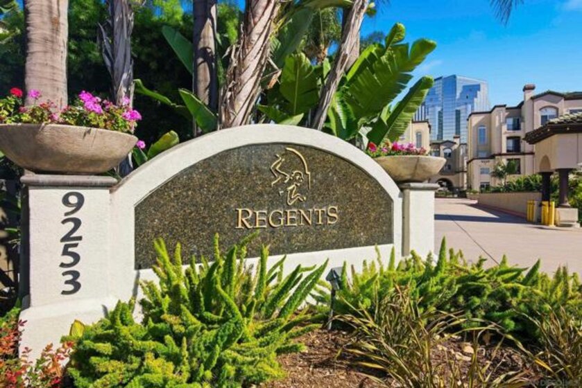 Welcome to Regents La Jolla, a private, gated, resort-style community in the heart of UTC. This spacious, move-in-ready one-bedroom residence features 9-foot ceilings, fresh interior paint, and abundant natural light throughout. The open-concept living space showcases granite countertops, recessed lighting, stainless steel LG and GE appliances, and counter seating—ideal for both everyday living and entertaining. Enjoy San Diego’s year-round climate from the attached balcony overlooking lush greenery, complete with a large private storage closet. Interior highlights include crown molding, plantation shutters, ceiling fans, and full-size in-unit laundry. The generously sized bedroom offers a large closet and direct access to the balcony. Includes one assigned, gated underground parking space. Residents of Regents La Jolla enjoy exceptional resort-style amenities including concierge service, pool and spa with cabanas, BBQ areas, clubhouse with billiards and theater, fitness center, yoga room, pet wash, business center, teaching kitchen, evening security, and more. Ideally located just minutes to UCSD, UTC Mall, dining, medical centers, and major freeways. One block to UCSD bus stops or an easy walk to campus, with quick access to La Jolla beaches, I-5, I-805, and Highway 52.