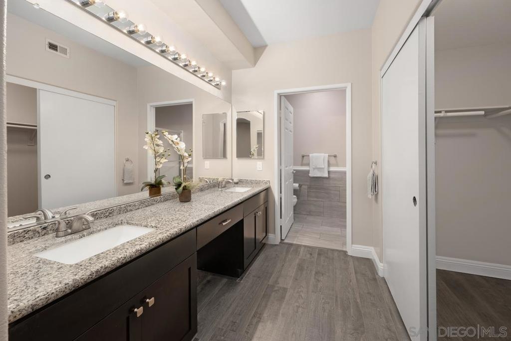 Desirable corner unit with courtyard view patio. Ground level near the resort-like amenities - concierge, pool/spa/cabanas, bbq, billiards/clubhouse, theatre, ping pong, yoga room, gym, pet wash, kitchen w/ cooking classes, biz center, evening security and more. Parking spaces near elevator. Fresh paint, new range and fridge, full size washer/dryer closet, vinyl plank and tile flooring. Ideal floor plan in complex. Next door to Starbucks, Regents Pizza, eateries and mini-markets. Near all transit and convenient UTC/La Jolla lifestyle. Regents La Jolla is the newest residential ownership development in the area. Designed with easy living in central coastal San Diego as the focus. Close to everything, yet a private and secure resort community. A few minutes drive to UTC Westfield mall, restaurants, parks, community centers, grocery stores, UCSD campus/hospital/clinics. 1 block to UCSD bus stops or walk to campus. Easy freeway access to La Jolla beaches, I-5, I-805, and Hwy-52. So much to offer!