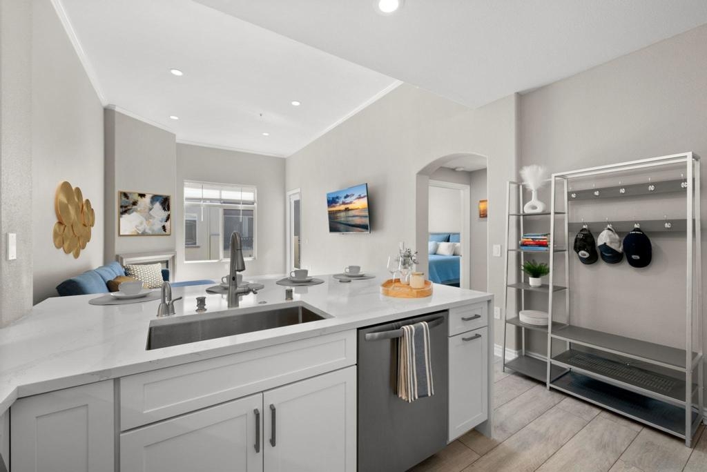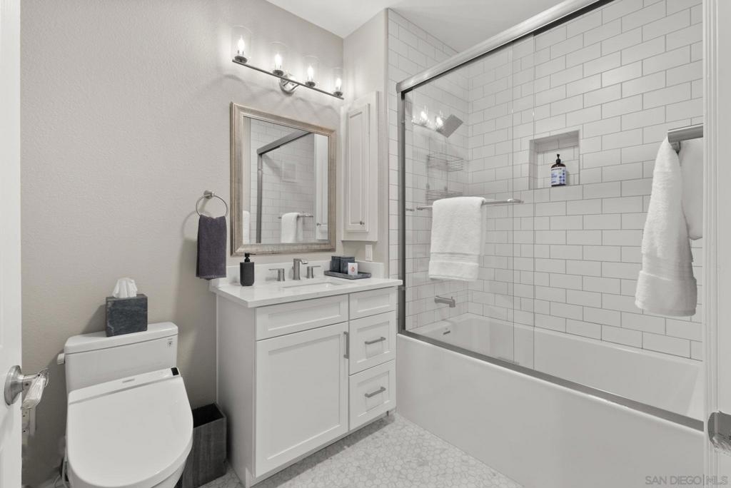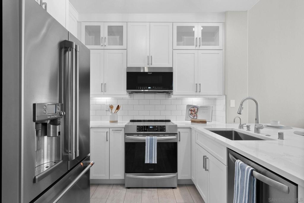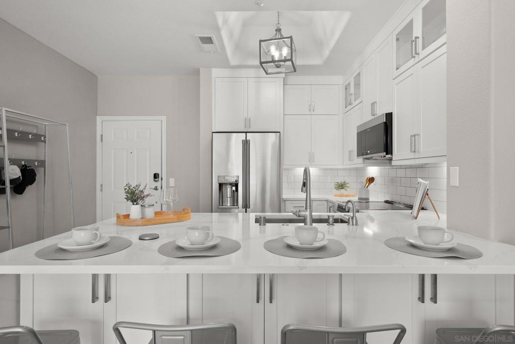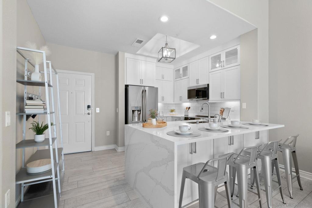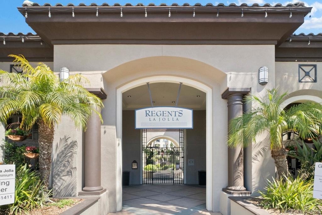 Welcome to the highly sought after Regents community in the heart of University City and La Jolla. This stunning "top-level" condominium offers the epitome of luxury living and is in immaculate condition. Located on the “penthouse floor” and fully remodeled in 2022 (Over $120,000 in upgrades). New flooring, cabinets, countertops, bathroom, appliances, flooring, lighting, vanity, shower, new HVAC and heat. This one-of-a-kind unit boasts a modern kitchen with stainless steel appliances and luxurious Calcutta Azai Quartz countertop. The spacious living room has the highest ceilings in the complex (top unit) and connects to a cozy patio, ideal for alfresco dining or relaxation. The bedroom retreat boasts access to the balcony, a generous walk-in closet, and a well-appointed bathroom with a shower. Beyond the confines of this elegant abode, residents enjoy an array of resort-style amenities within the esteemed Regents complex. Lounge by the Olympic-sized pools, indulge in cooking classes, or unwind in the private movie theater—all within steps of your doorstep. Unit shows true pride of ownership. Convenience meets sophistication with 1 assigned underground tandem parking spots, ensuring easy access to this oasis of tranquility. With proximity to UCSD, Westfield Mall, beaches, and trolley centers, every aspect of coastal living is within reach. Whether you seek relaxation or adventure, this condominium offers a coveted lifestyle amidst La Jolla's seaside charm.