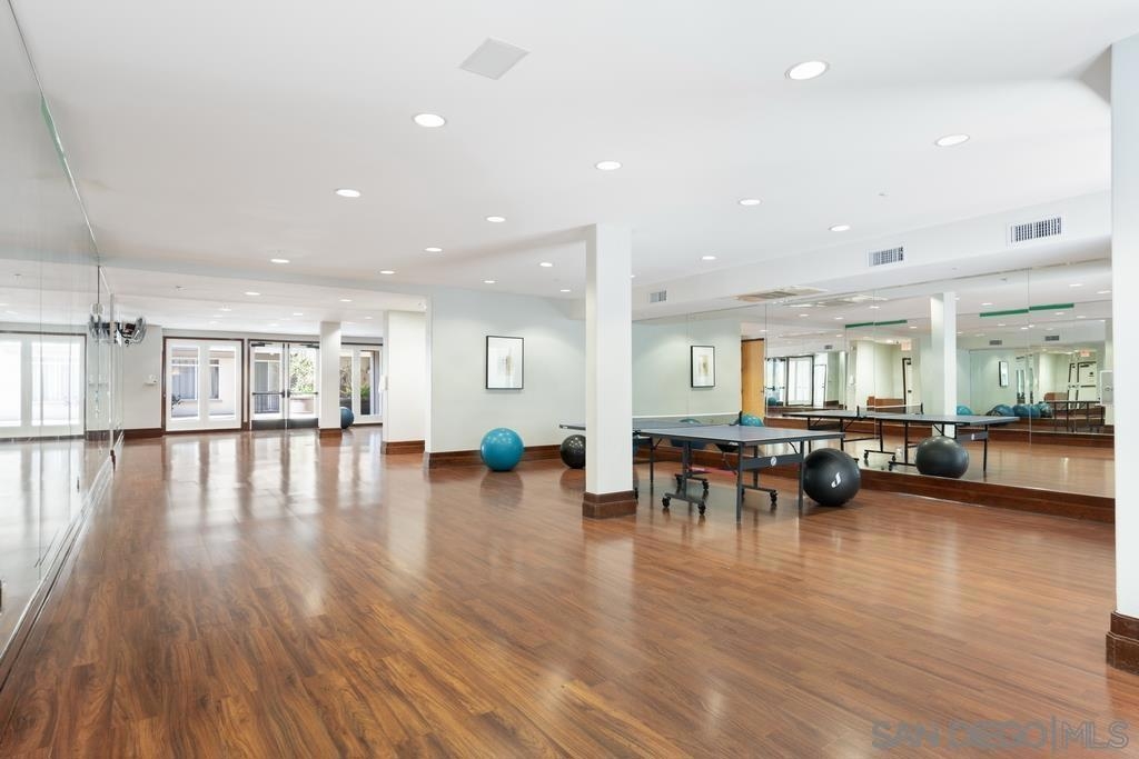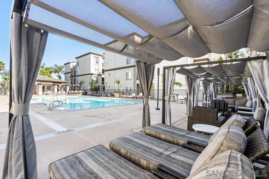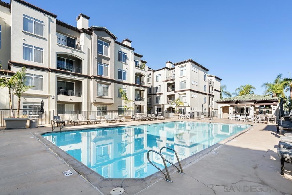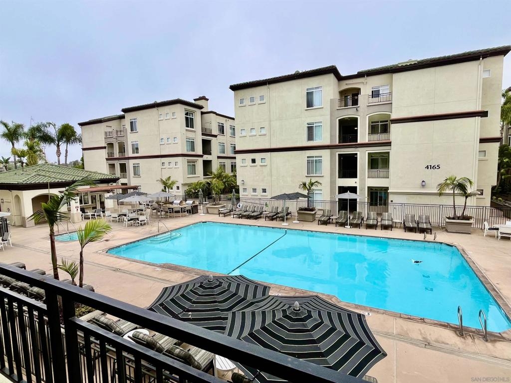 Rarely for sale! This naturally bright and spacious condo has engineered wood floors, 9-ft ceilings, crown molding, new paint and newer laundry machines. The roomy balcony overlooks swimming pool. Best location in the complex! Granite countertops and stainless steel appliances; wrap-around breakfast bar. TWO gated assigned underground parking. Near beaches, premier shopping, dining, UCSD, hospitals, and UTC mall. Easy access to MTS bus, Trolley, I-5, 805 and 56.