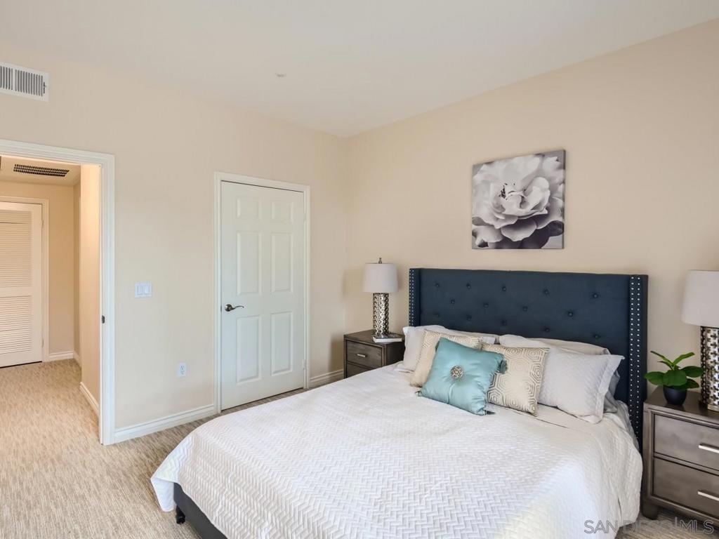 Stunning one-level floor plan in most dazzling Golden Triangle complex featuring ultra-modern kitchen with 2-tier ceiling, recessed lights, bull-nosed granite counters and stainless steel appliances opening into elegant living room with handsome crown molding and entrance to cozy patio and archway to bed/bath with walk-in closet, tree-lined backyard, private washer/dryer, pools, cabanas, fitness center, K & L Gym, cooking classes, concierge from 9AM to 6PM and more! Perfect vibrant Golden Triangle location near the trolley, UCSD, renovated Nordstrom mall and much, much more!