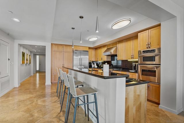 Stunning sit down panoramic ocean views from this single level beach condo in the coveted Seahaus development. This one of a kind corner unit is flooded from the light by the floor to ceiling windows that bring the view into all of the main living spaces. With a comfortable open floor plan that features a generously sized kitchen that looks out onto the living room, dining area and balcony, this property creates a sense of living the La Jolla lifestyle. Entertain from the gourmet kitchen that features a large island with eat in bar, 6 burner Viking stove, Viking refrigerator and wine fridge. The Office/optional 3rd room currently opens to the main living area and has a private stairwell entrance to the ground floor. Relax in the resort style master suite that features a walk in closet, soaking tub, separate shower, double vanities and plenty of storage. The 2nd bedroom has it’s own bathroom. Soak in the ocean breeze and sunsets on the spacious balcony large enough to accommodate a grill and table. This property is completed by the in unit large laundry room with side by side washer/dryer, 2 side by side parking spaces in the secure underground parking garage, a storage room and resort level amenities featuring a pool, spa, BBQ area, recreation room and workout facilities. This is truly one of the best units is Seahaus in the heart of Bird Rock. See supplement. Stunning sit down panoramic ocean views from this single level beach condo in the coveted Seahaus development. This one of a kind corner unit is flooded from the light by the floor to ceiling windows that bring the view into all of the main living spaces. With a comfortable open floor plan that features a generously sized kitchen that looks out onto the living room, dining area and balcony, this property creates a sense of living the La Jolla lifestyle. Entertain from the gourmet kitchen that features a large island with eat in bar, 6 burner Viking stove, Viking refrigerator and wine fridge. The Office/optional 3rd room currently opens to the main living area and has a private stairwell entrance to the ground floor. Relax in the resort style master suite that features a walk in closet, soaking tub, separate shower, double vanities and plenty of storage. The 2nd bedroom has it’s own bathroom. Soak in the ocean breeze and sunsets on the spacious balcony large enough to accommodate a grill and table. This property is completed by the in unit large laundry room with side by side washer/dryer, 2 side by side parking spaces in the secure underground parking garage, a storage room and resort level amenities featuring a pool, spa, BBQ area, recreation room and workout facilities. This is truly one of the best units is Seahaus in the heart of Bird Rock. In addition to everything mentioned above, other upgrades by current owner include paint throughout, Stain master carpet & light fixtures in bedrooms/office, light fixtures over island and in kitchen, custom built A/V cabinet in LR, fireplace surround, frameless glass shower door in guest bathroom, solar shades through with ocean facing shades on remote, dishwasher, sink faucet and surround sound in LR. Equipment: Dryer, Washer Topography: LL