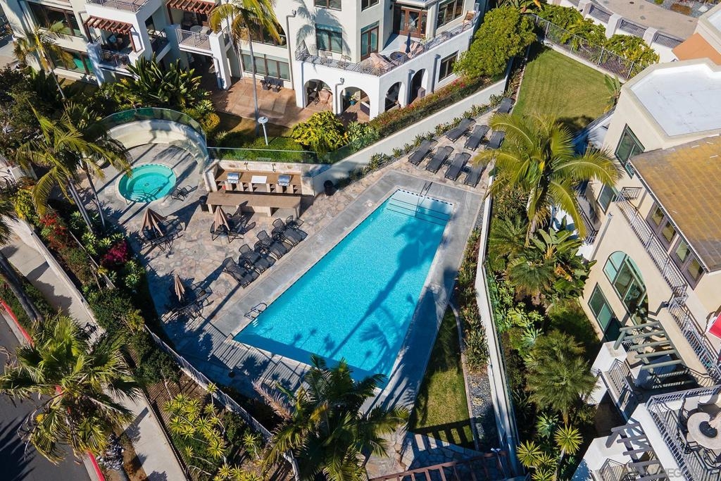 Fabulous Seahaus condo with ocean view. Top floor, end unit, single level studio that is light and bright with modern style. Featuring an open floor plan, vaulted ceiling, balcony, washer/dryer in unit, plus a/c. Wood flooring, stainless steel appliances and granite counters. Elevator access. No unit below. Tandem parking in gated garage, plus a private storage space. Highly desirable complex in Bird Rock, with pool/spa, gym, community room and barbecues. Walk to shops, cafes, restaurants, parks and beaches. A beautiful home by the sea.