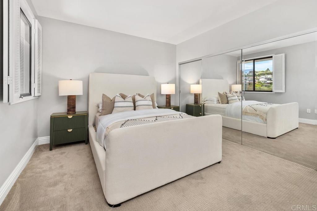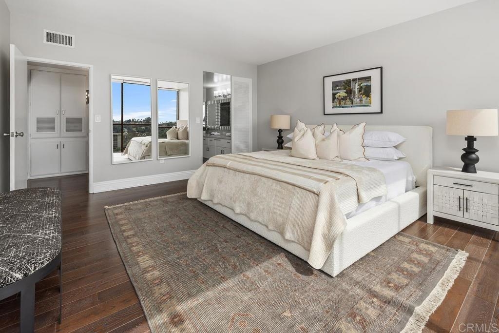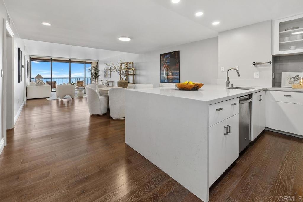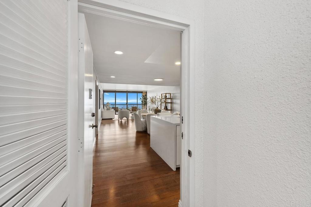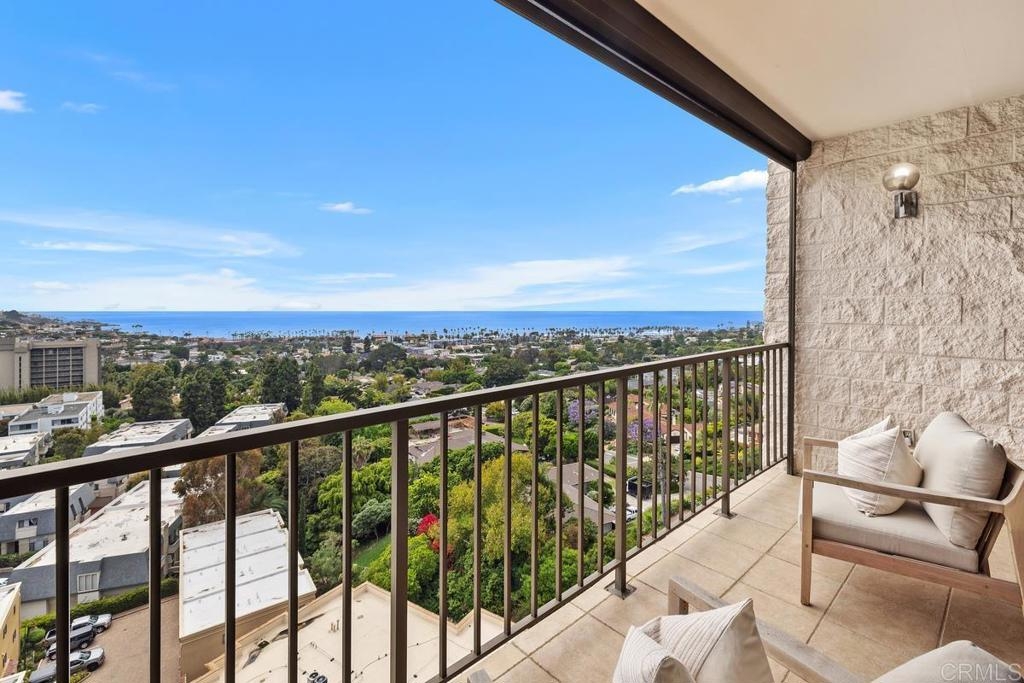 Experience sweeping ocean views from this recently renovated condo, featuring 1,464 square feet—the largest floor plan in Shore Tower—and three assigned parking spaces. Wake up to stunning views from the primary bedroom suite offering a floor-to-ceiling window wall, an ensuite bathroom with a dual-sink vanity, and a walk-in closet. Enjoy gorgeous sunsets, gentle cross breezes, and breathtaking ocean views from nearly every room. This entertainer's dream home boasts an open floor plan, two separate bedroom suites, and a spacious stone-tiled balcony with electric shades accessible from both the living room and primary bedroom. Located on the 12th floor of Shore Tower, a resort-style building which offers an elegant foyer, gym with sauna, tennis courts, large rec room, sparkling pool and spa, guest suites for visiting friends and family, BBQ area, on-site property manager, security, lobby-level parking, and plenty of guest parking. Conveniently located near La Jolla Shores, La Jolla Village, UCSD, and freeways, this condo is ideal for lovers of ocean views, whether as a primary or secondary home, where coastal living is at its finest.