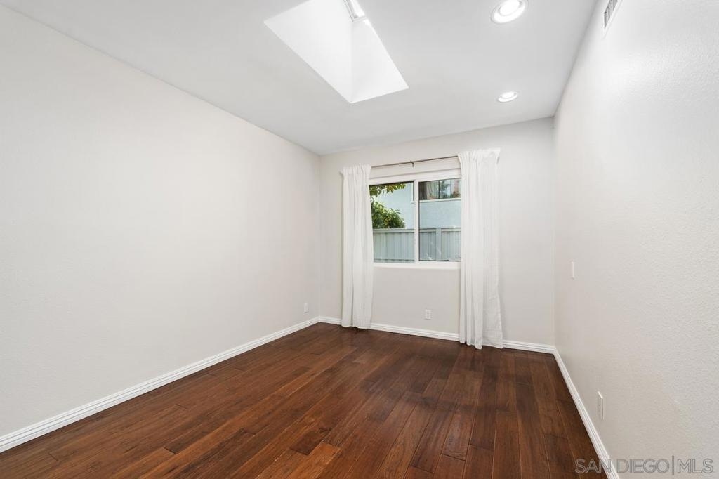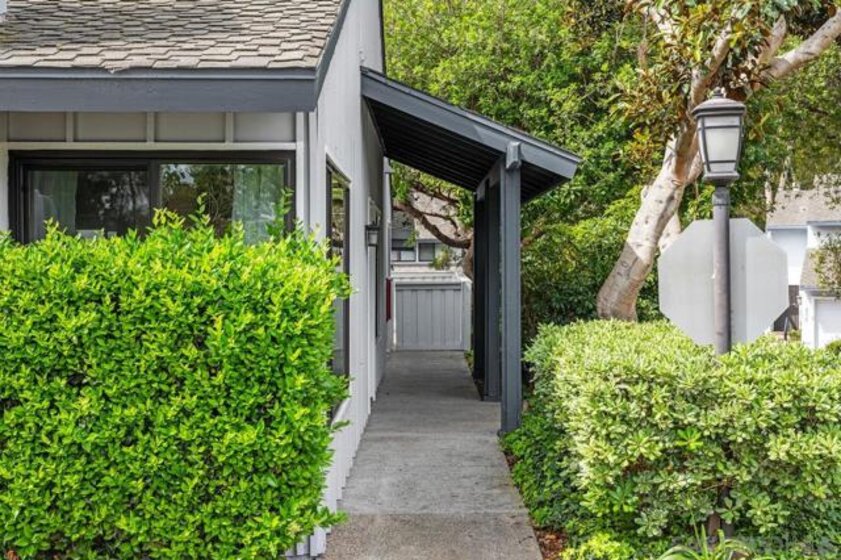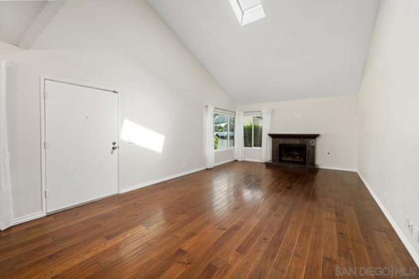 Beautifully upgraded with so much to offer! This single level end unit with a two-car attached garage, with freshly epoxied floors, feels more like a detached home. Rich dark hardwood floors welcome you in. Vaulted ceilings with skylight keep everything bright and airy. An elegant fireplace for those chilly evenings. Both bathrooms tastefully upgraded A remodeled kitchen with custom counters and stainless appliances leads to a spacious, private patio. The perfect place to sit and sip your morning coffee or evening glass of wine. Just a few of the splendid features of this amazing home located opposite a green belt at the end of a complex that offers pool, spa and clubhouse!