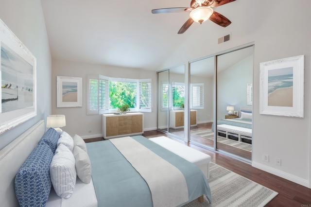 Welcome to 8037 Caminito Mallorca, an exceptional residence nestled in the highly desirable La Jolla Village Southpointe community. This move-in ready townhome offers 3 bedrooms, 2.5 bathrooms, and 1,467 square feet of elegantly updated living space. Step inside to discover an abundance of natural light, with tile flooring downstairs and rich wood floors upstairs creating a warm and welcoming atmosphere. Energy-efficient dual pane windows with timeless plantation shutters are found throughout, ensuring comfort and style in every room. The attached two-car garage includes a recently installed A/C-ready furnace and convenient in-unit laundry with washer and dryer. Upstairs, the primary and secondary bedrooms provide tranquil peek-a-boo views and refreshing ocean breezes—your private retreat at the end of the day. The third bedroom boasts a spacious walk-in closet, offering flexibility for guests, a home office, or a growing family. Enjoy relaxing by the fireplace in the living area or cook in the well-appointed kitchen with granite countertops, recessed lighting, and quality appliances—including an electric stove/oven, built-in microwave, dishwasher, and refrigerator. The kitchen looks out to a private patio with open greenbelt access and no neighbors behind for added privacy. Enjoy seamless indoor-outdoor living with beautiful patio views and direct access to a serene greenbelt—no neighbors behind for enhanced privacy and tranquility. Take advantage of the resort-style amenities that Southpointe offers, including three sparkling community pools—one just steps from your front door. Enjoy unparalleled convenience: UCSD is only 1.5 miles away, and you’re minutes from La Jolla Shores Beach, La Jolla Cove, Torrey Pines State Beach, world-class golf at Torrey Pines, and the upscale stores and restaurants of The Shops at La Jolla Village. Everyday necessities are at your fingertips, with Trader Joe’s, multiple grocery stores, and local eateries all within walking distance. Guests will appreciate proximity to the luxurious Estancia La Jolla Hotel & Spa. This townhome combines prime location, exceptional features, and the best of La Jolla’s coastal lifestyle. Come experience the vibrant Southpointe community and make this wonderful home your own!