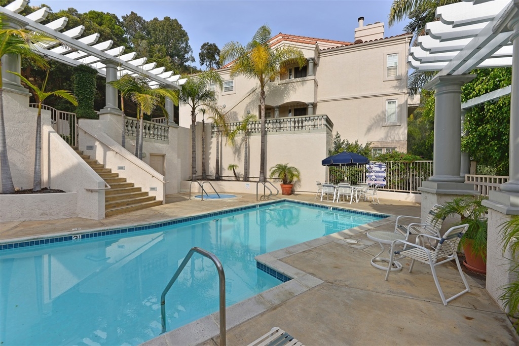 Beautifully remodeled, end-unit townhome in the gated community of St. Tropez offering a pool and spa. Flowing living areas greet you and feature a fireplace, balcony and a gorgeous cook’s kitchen. 1 bedroom & bath are conveniently located on the entry level. Head downstairs where you will find dual master suites and a private patio. Central location across from Pottery Canyon Natural Park with easy access to UCSD, La Jolla Shores beach, Torrey Pines Golf Course, and everything the Village has to offer. Neighborhoods: La Jolla Shores Complex Features: ,, Equipment: Garage Door Opener, Range/Oven, Vacuum/Central Other Fees: 0 Sewer: Sewer Connected Topography: GSL