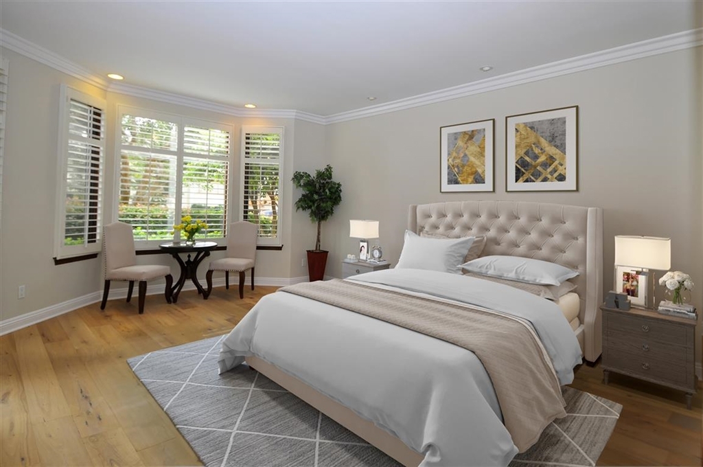 Beautiful La Jolla Village Executive ONE LEVEL Turn-Key Condo-Home, located in the Hart of the Village featuring two large Master Bedrooms + Two Exquisite Bathrooms with high-end features. Kitchen has built-in stainless steel appliances, granite counter tops, natural stone back splash, Breakfast Counter plus Kitchen Nook with travertine flooring. The Open Floor Plan features Tall Ceilings, Hardwood Flooring, L/R Gas Log Fire Place with direct access to a delightful Patio to & from the L/R & M/Bedroom +. Neighborhoods: VILLAGE Complex Features: , Equipment: Dryer,Garage Door Opener Other Fees: 0 Sewer: Sewer Connected, Public Sewer Topography: LL Guest House Est. SQFT: 0