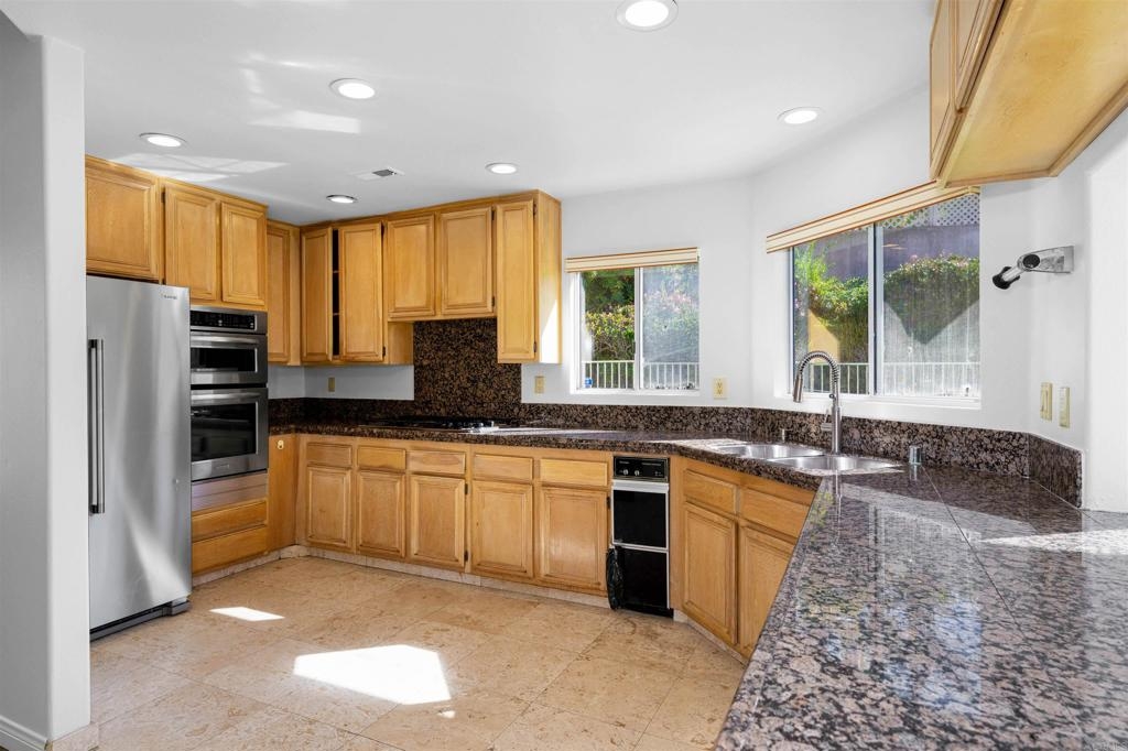 Spacious La Jolla Alta Townhome with Resort-Style Amenities Welcome to Ventana—one of La Jolla Alta’s most delightful and secure coastal communities. This expansive 3-bedroom, 2.5-bath split-level townhome offers exceptional value, natural light, and a livable floor plan ready for a fresh new vision. The entire top level is dedicated to a sprawling Primary Suite retreat, complete with its own fireplace, abundant windows that bring the outdoors in, an oversized bath with separate shower and water closet as well as a massive walk-in closet. High ceilings throughout enhance the sense of space, while both the living room and family room feature fireplaces, creating warm, inviting areas for everyday living and entertaining. The home also offers a sun-splashed breakfast nook, a more formal dining area, a large kitchen with pantry, generously sized secondary bedrooms, a separate laundry room, and direct access to a two-car garage. Thoughtfully designed and well proportioned, this residence presents an excellent opportunity to refresh and customize to your taste. As a Ventana resident, expect to enjoy a truly exceptional lifestyle with heated pools, spa, tennis and pickleball courts, clubhouse, library, and beautifully maintained grounds—plus a friendly, welcoming neighborhood atmosphere.