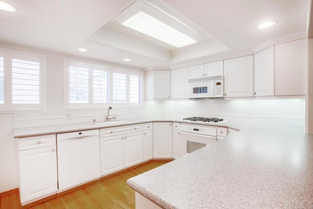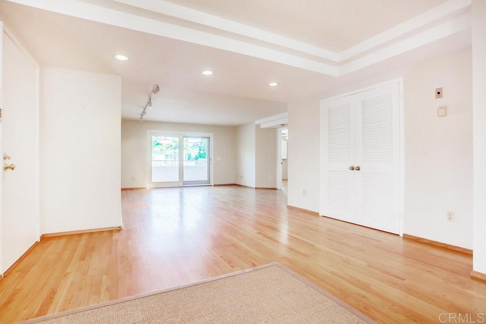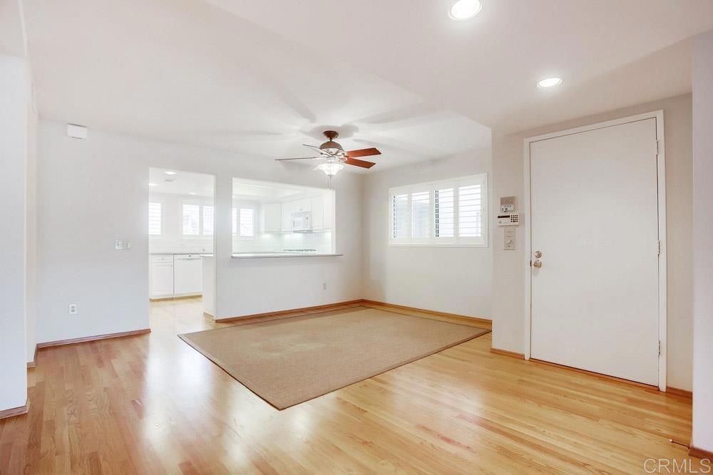 Light, bright and open, single-level condo right in the middle of downtown La Jolla. Beautifully maintained and cared for as a 2nd home for years. Real hardwood floors, dual pane windows/doors, renovated master bath & white kitchen. Large, open, private patio. Small HOA of only 9 units provides a quiet/private setting. Two gated, underground, reserved parking spaces with direct elevator access to the unit. Rear access to the complex without any stairs available