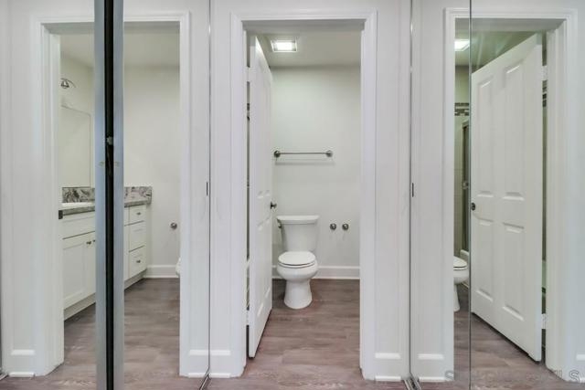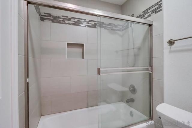 West-facing condo features upgraded quartz counters, stainless steel appliances, shaker cabinets & big pantry, mirrored closet with built-ins, and luxury vinyl wood flooring throughout. Remain cool at home with AC and ceiling fans and enjoy your private outdoor patio, or step out to partake in any/all the Community amenities including 2 pools, 2 spas, gym & clubhouse. Prime location in walking distance to UCSD, the full-service retail district of La Jolla Village Square & trolley to Mission Valley or DownTown!