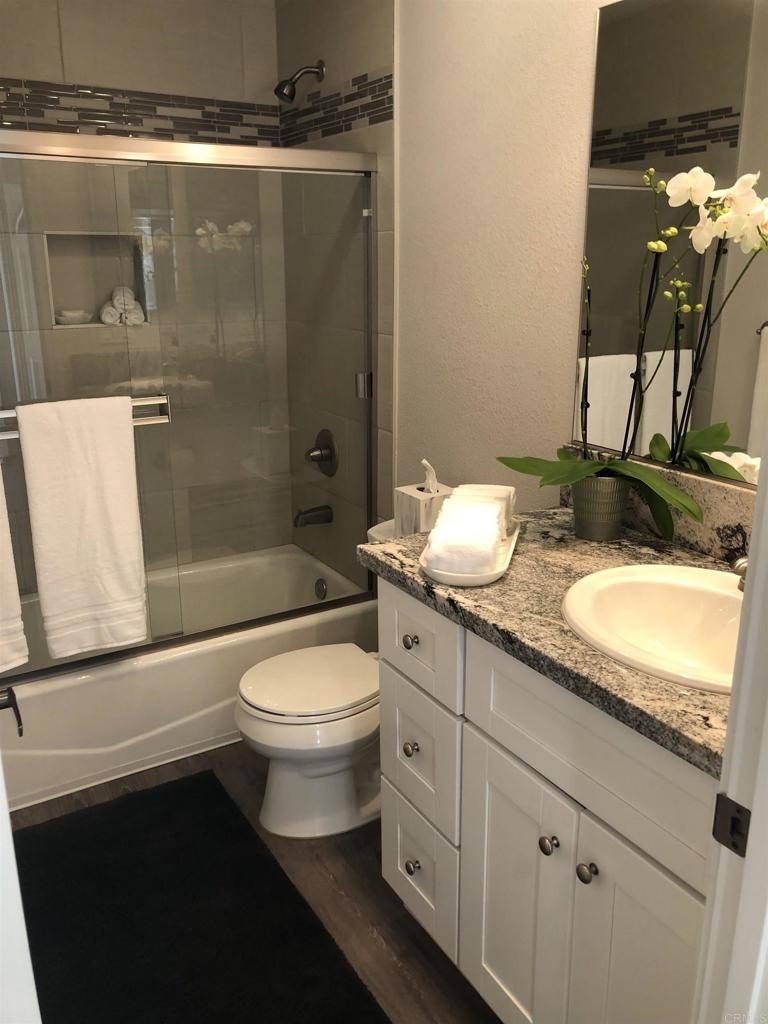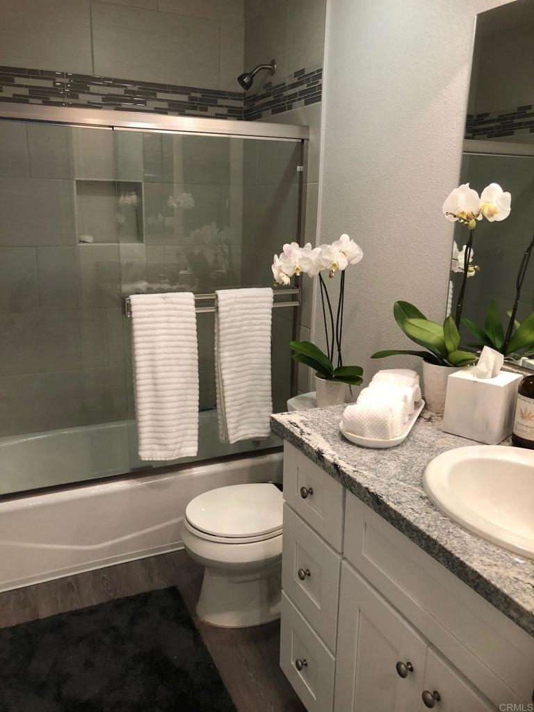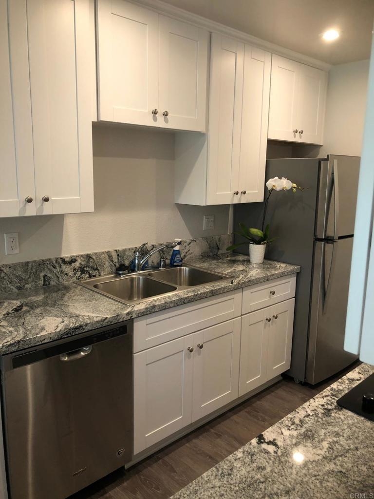 Huge price improvement!! Situated in the highly sought after Villa La Jolla Condominiums, this LaJolla one story, ground floor Condominium is walking distance to incredible restaurants and retail. Within minutes to LaJolla shores beach, UCSD and nearby public transportation. This ground floor Condo was fully updated three years ago. With a 1 bedroom/ 1 Bath and 1/ carport, this place spans 691 square feet of modern living space. The open-plan living area seamlessly connects to the upgraded kitchen, with modern white cabinets, grey quartz countertops, and stainless steel appliances. Flowing from the kitchen is the dining room and living room with a slider to a generous patio. Then to a very good size Primary suite with mirrored sliding closet doors, across from the hallway leading to a luxurious full size bathroom. Dual paned windows and recessed lighting throughout. Set within the Villa LaJolla community, you'll have access to wonderful amenities like a swimming pool/ spa, workout room, outdoor BBQ area and party room .