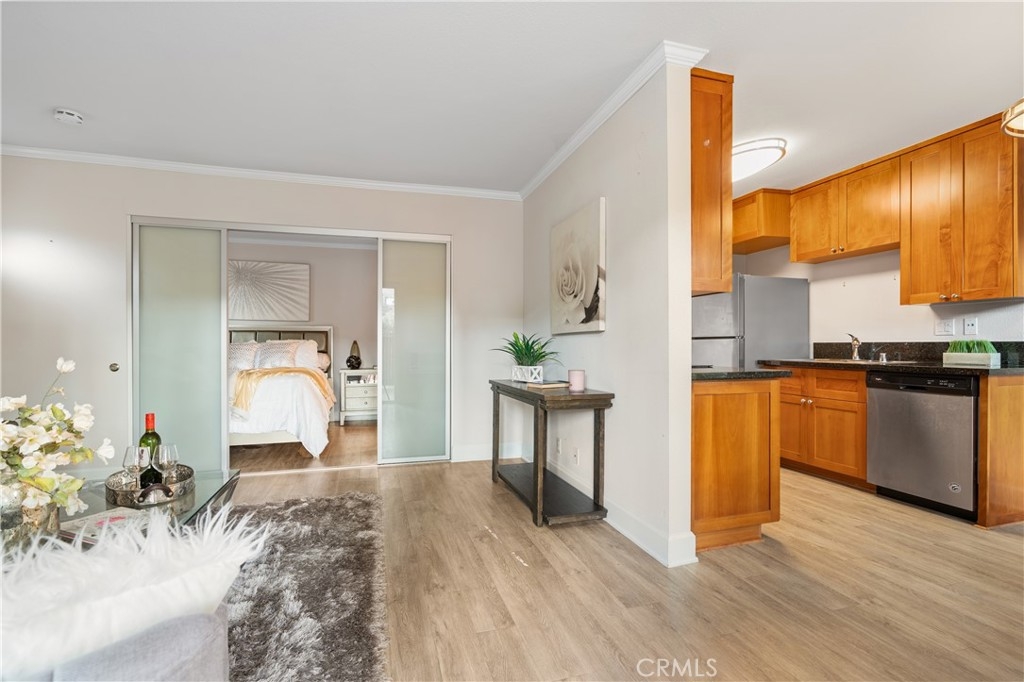 Welcome to your new La Jolla retreat, where resort-style amenities meet convenience in a first-floor, corner-unit home, that’s as sunny as the San Diego weather. This stunning one-bedroom condominium isn’t just a place to live—it’s a lifestyle. Step inside and you’ll find sleek vinyl plank flooring that’s not only easy on the eyes but also an indestructible delight to walk on. The kitchen, equipped with granite countertops, shaker cabinetry and stainless steel appliances, is perfect for whipping up a quick breakfast before hitting the beach or hosting friends for a dinner party. Dual pane windows keep things quiet and a Vivint security system and doorbell camera add piece of mind. The modern bathroom with dual framed mirrors are not just functional—they’re selfie-ready, ensuring you’re always looking your best before stepping out. Inside full-size laundry was added - a huge addition as many units do not have this feature. Outside, your spacious patio is perfect for storing beach gear, and the included sunshade ensures a cool, comfortable space to unwind. Just steps away, the community’s two pools, two jacuzzis, fitness center, and clubhouse await, offering you resort-style amenities right at home. No packing required—just pure relaxation. Parking is a breeze with your reserved spot just a stone's throw away. Say goodbye to the hassle of circling the block or battling for a space—simply pull in and start enjoying your day. Imagine waking up each day just minutes from the iconic La Jolla Shores beach, where you can enjoy the waves before your coffee even has a chance to cool. Whether you're a student at UCSD, someone who simply loves the finer things in life, need a second home close to work, or an easy-to-manage vacation home near the beach, this condo offers an unbeatable location. This prime location puts you in the heart of La Jolla, with easy access to UCSD, La Jolla Village, and all the local hotspots. Whether you’re exploring the neighborhood or enjoying the local dining scene, everything you need is right at your doorstep. Life’s too short to settle for anything less than extraordinary.