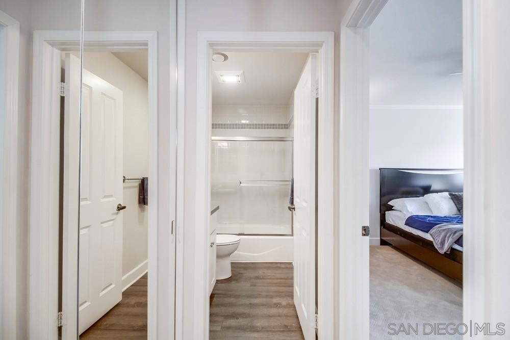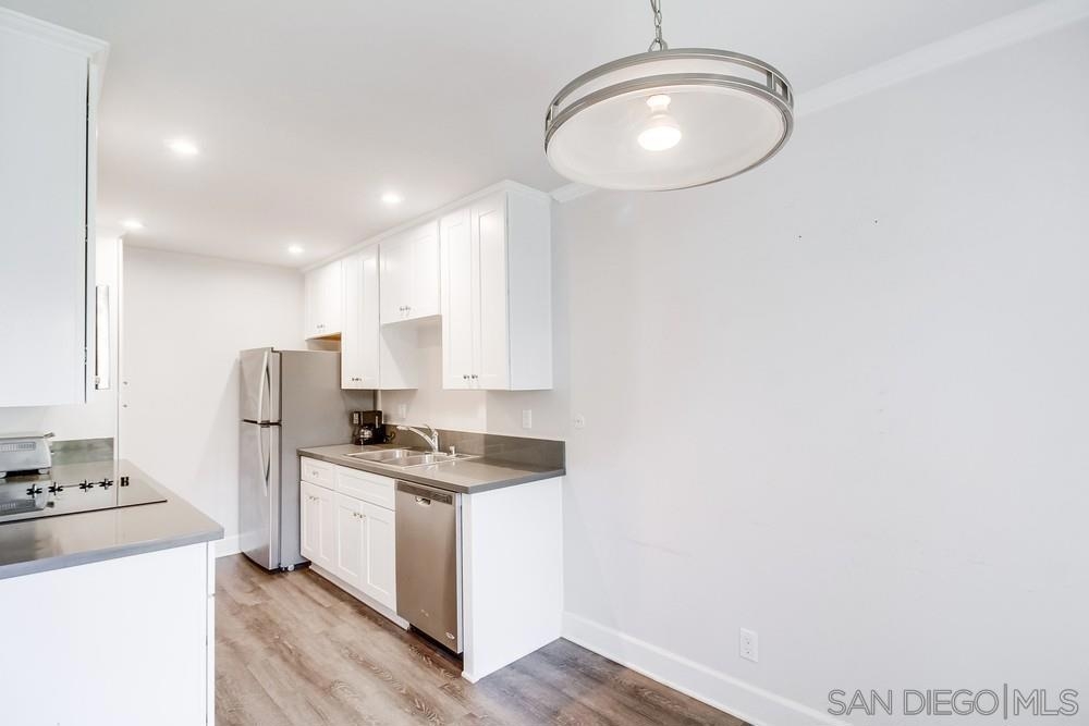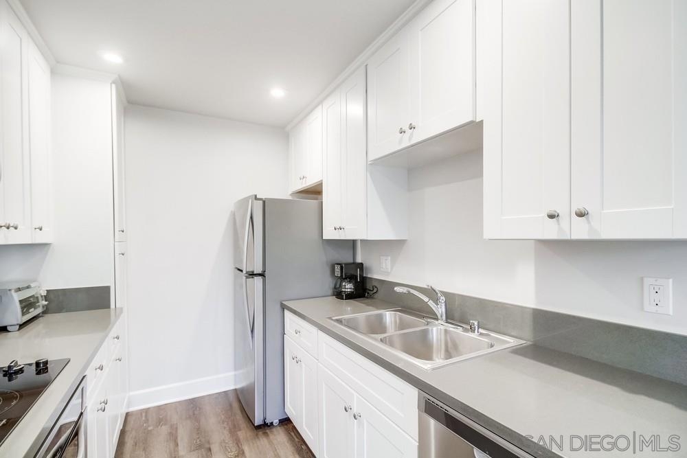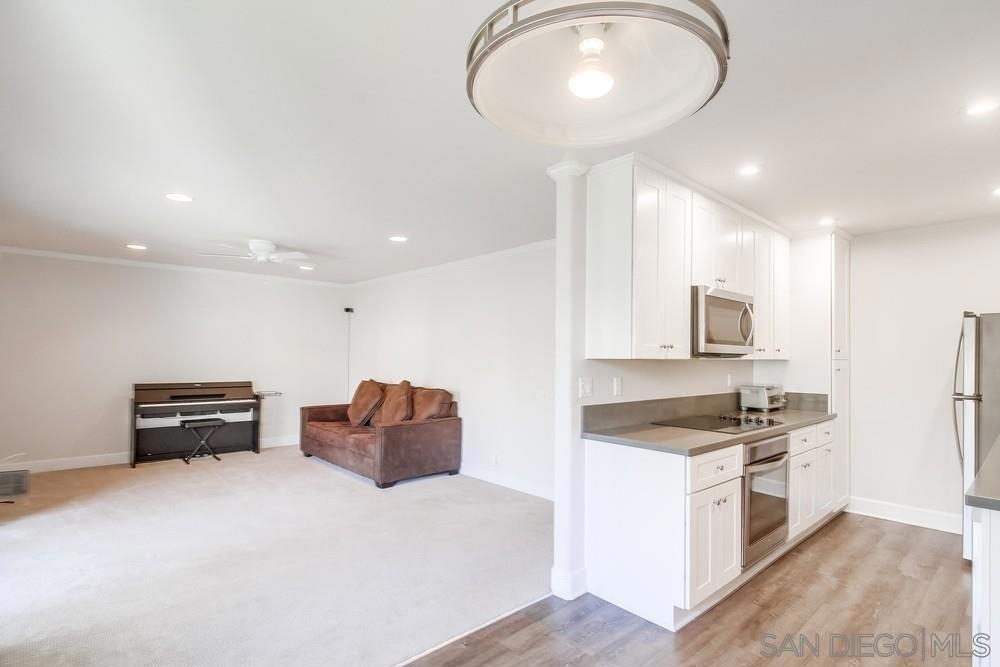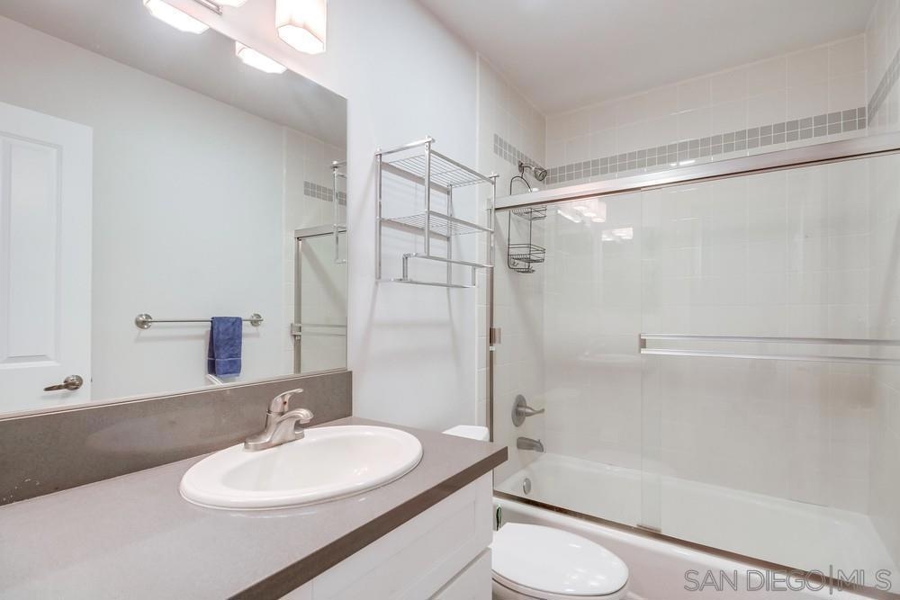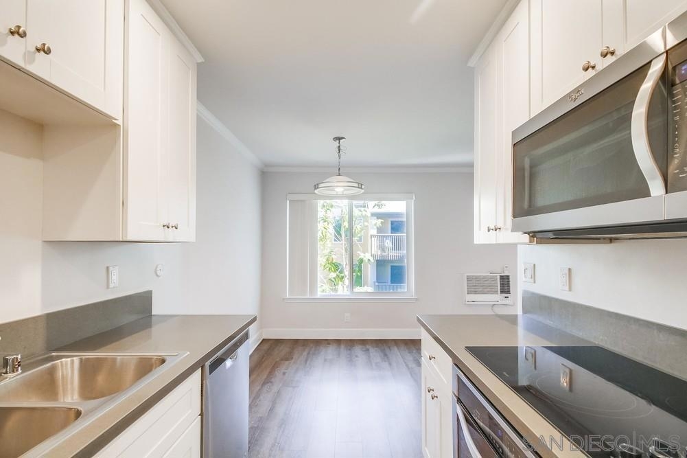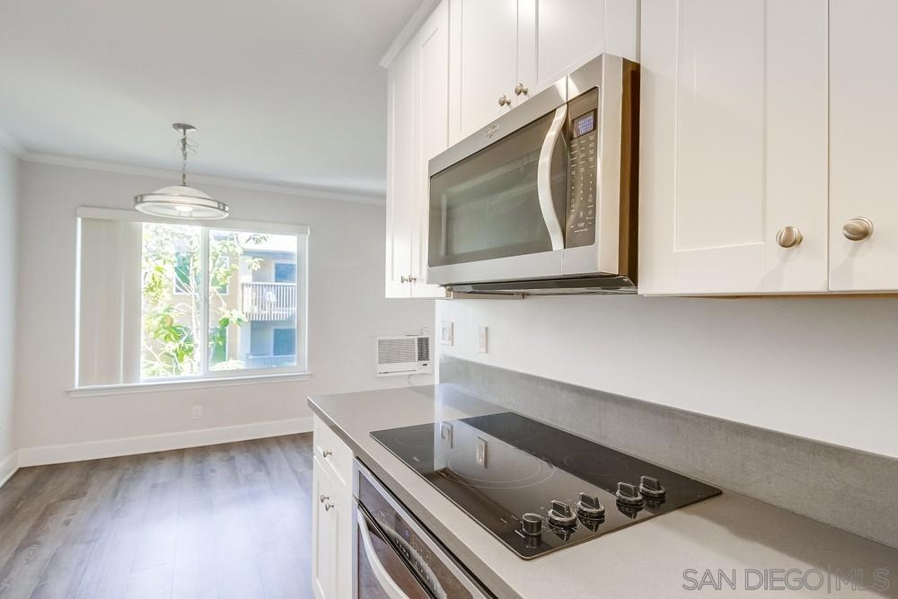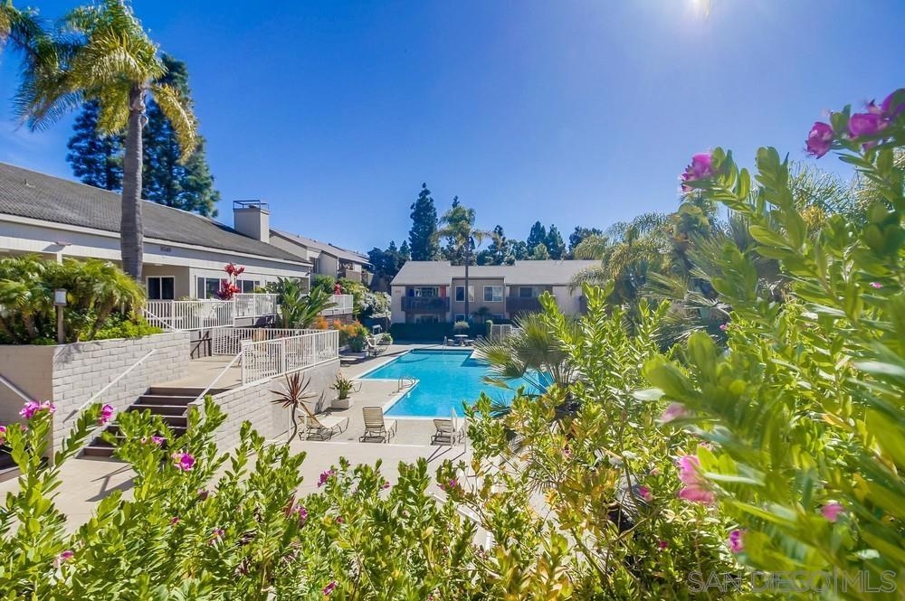 Move in ready upstairs one bedroom unit in the highly coveted Villa La Jolla complex. This remodeled gem boasts a beautiful kitchen with quartz countertops, stainless steel appliances, and designer cabinetry. Enjoy the serenity of no neighbors above, complemented by ceiling fans and dual pane windows. The updated bathroom, abundant storage, and large mirrored closets add to the allure. Bask in natural light on your private balcony, perfect for indoor/outdoor living. With one dedicated parking space and additional guest and street parking available, convenience is assured. Community amenities include a clubhouse, gym, pool, and spa. Ideally situated near UCSD, shopping, dining, the trolley, and just minutes from the beach, this property is a must-see! VA approved complex!