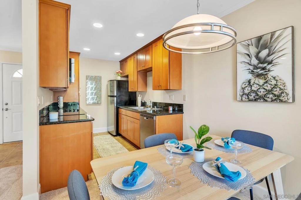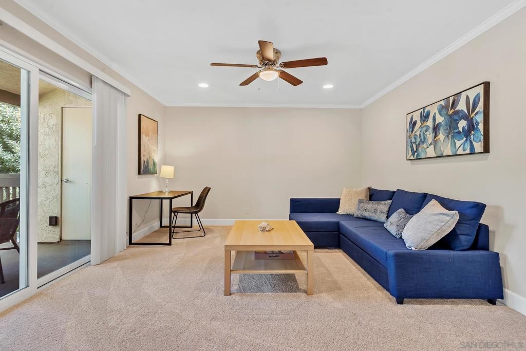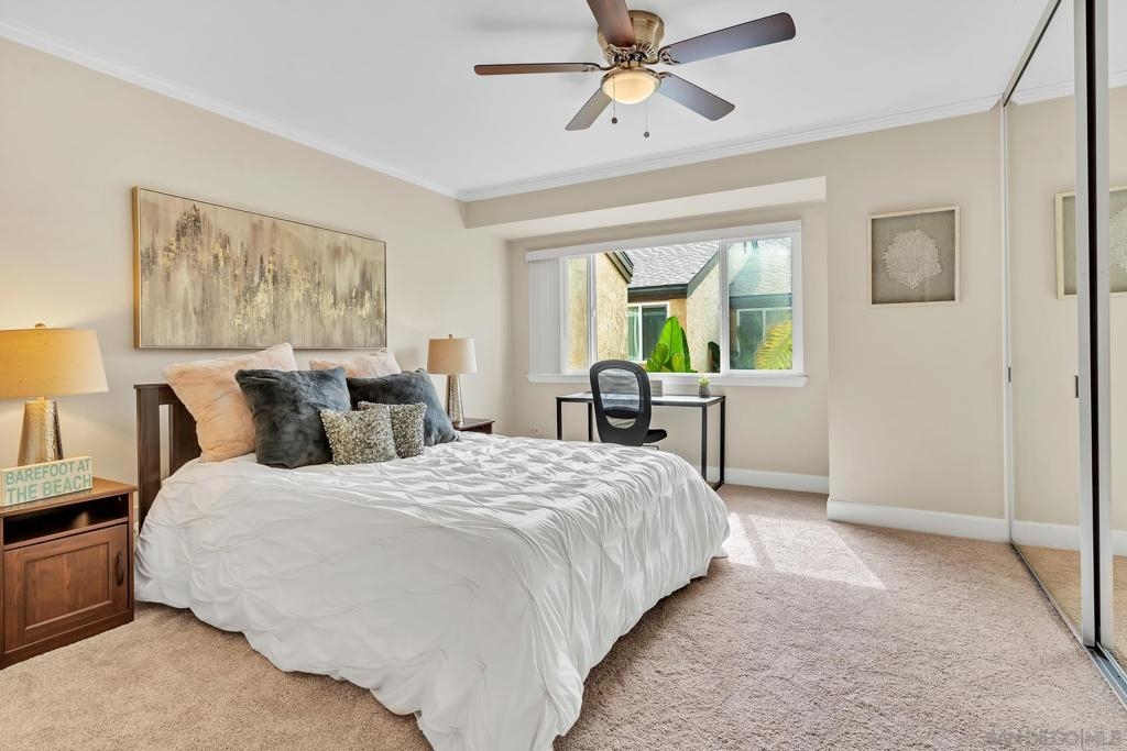 Welcome to this beautiful upstairs 1-bedroom condo, ideally situated in the charming neighborhood of La Jolla. This condo offers brand new carpet, custom paint, upgraded kitchen and bathroom, mirrored closet doors with ample closet space and is surrounded by tropical landscaping. This location provides vacation-type feel and nice natural light throughout. Located just minutes away from UCSD, I-5, SR-52, UTC Mall and beautiful local beaches.