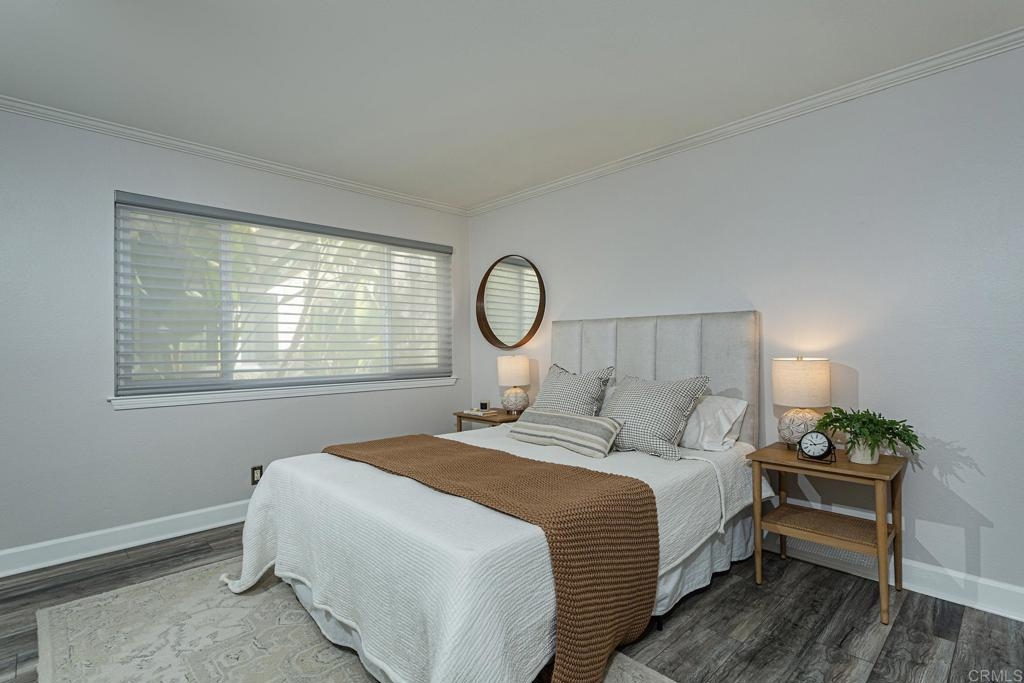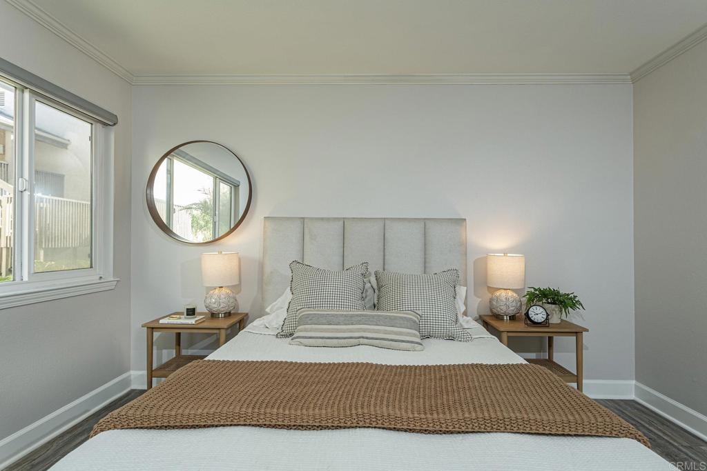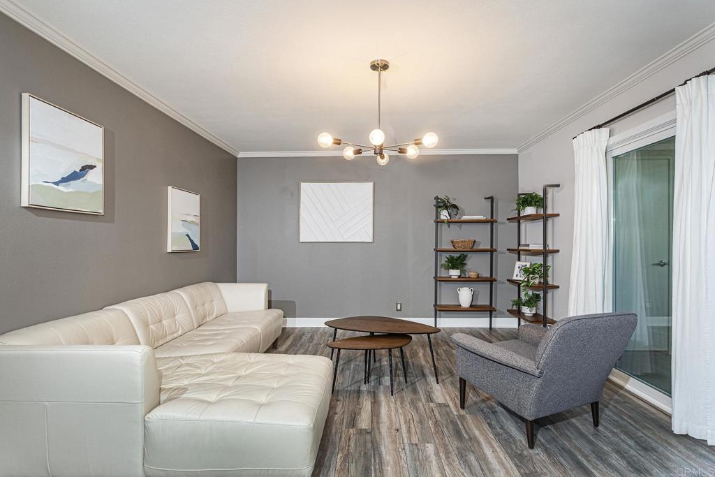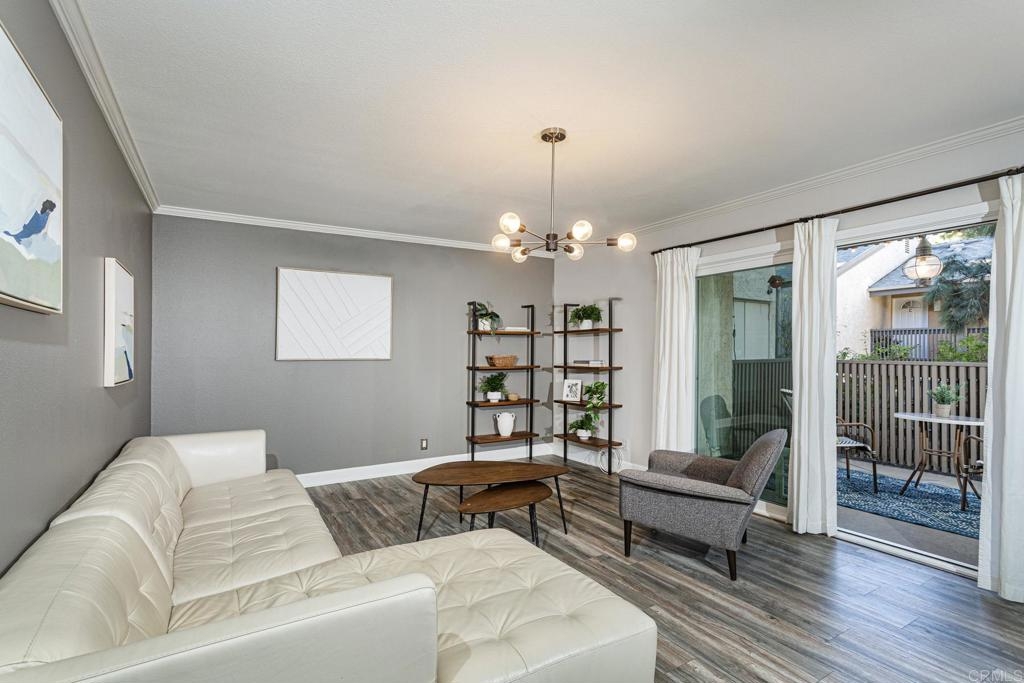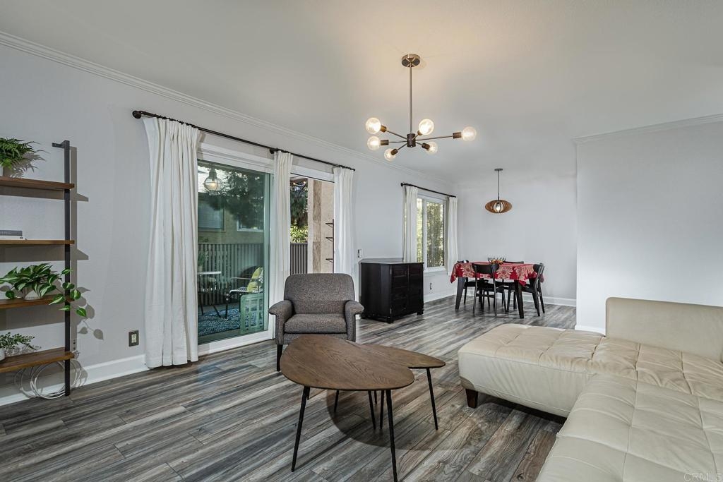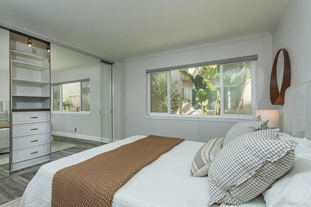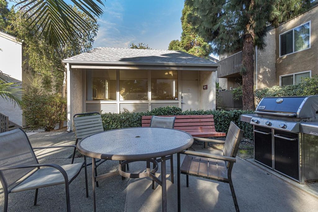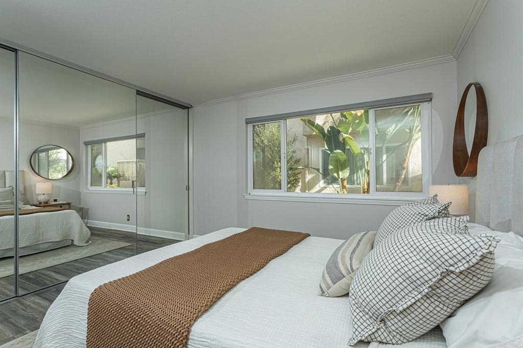 Welcome to this stunning first floor condo in the heart of La Jolla. Modern kitchen features, Granite counters, custom color thermofoil cabinets and high-end appliances. The remodeled bathroom is simply exquisite. Primary bedroom with mirrored wardrobe doors and closet built in with drawers. Entry Hall with nice size closet for additional storage. Other upgrades include laminate plank floors, a recently painted interior, and dual pane windows. The large, enclosed patio is perfect for enjoying your time to unwind or hanging out with your furry one. Conveniently located close to Whole Foods, Trader Joes, restaurants, easy access to I-5 and SR 52, the trolly line, minutes to UCSD and La Jolla Shores Beach. Villa La Jolla offers 2 pools, 2 spas, fitness center and clubhouse which make this home a perfect blend of modern luxury and urban convenience.