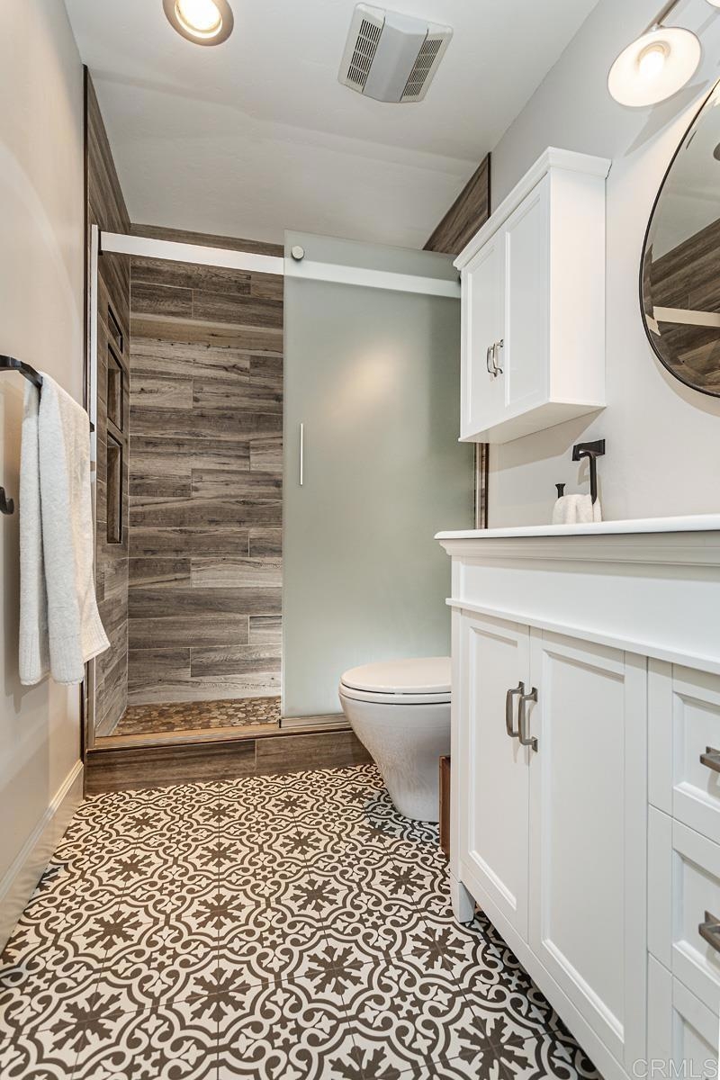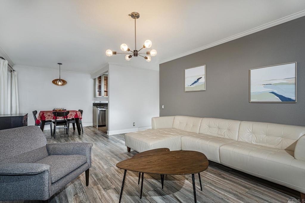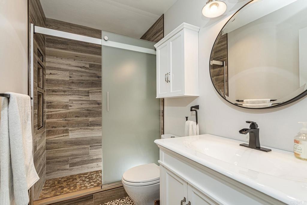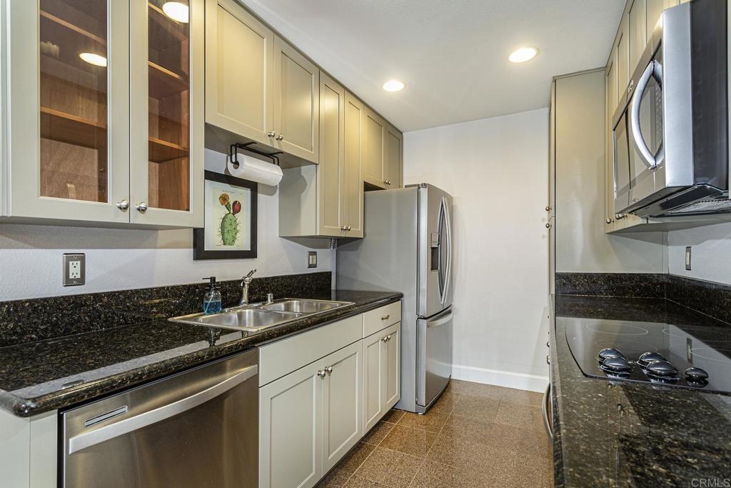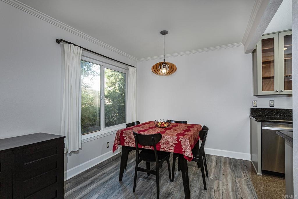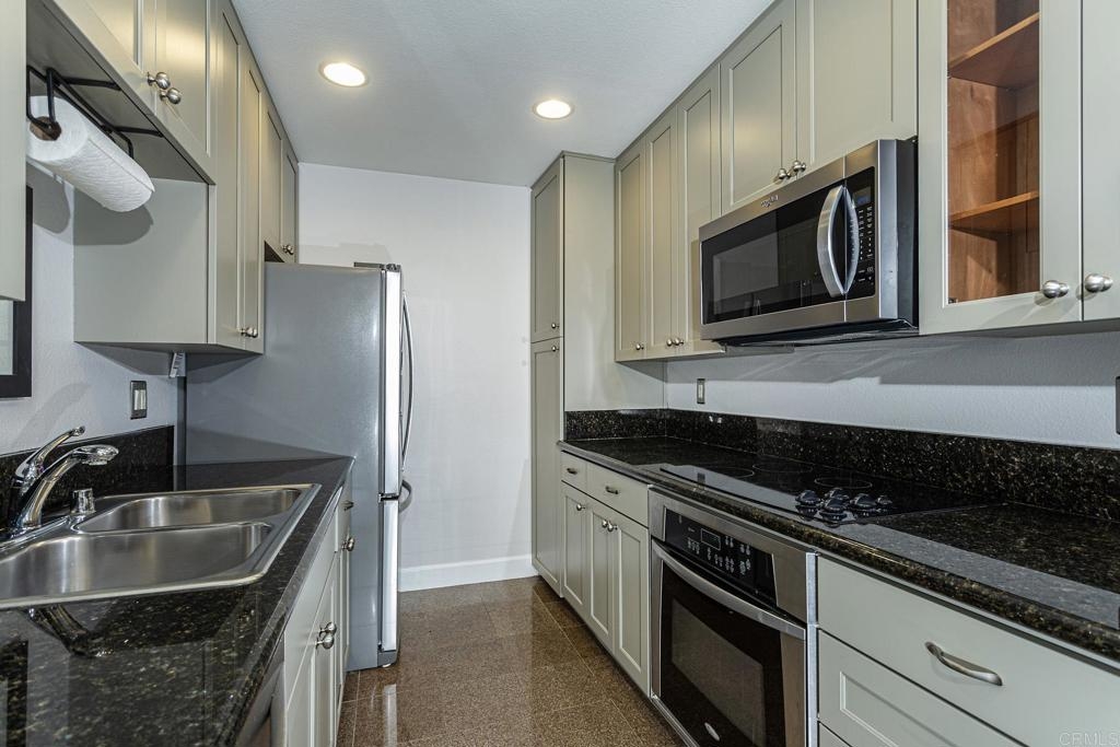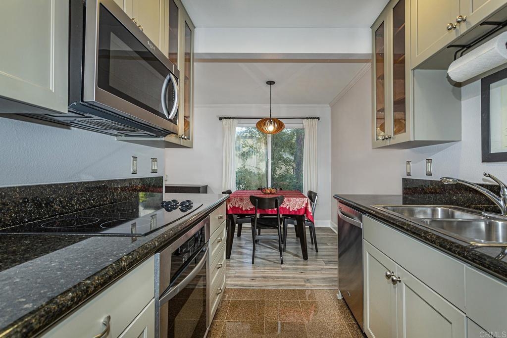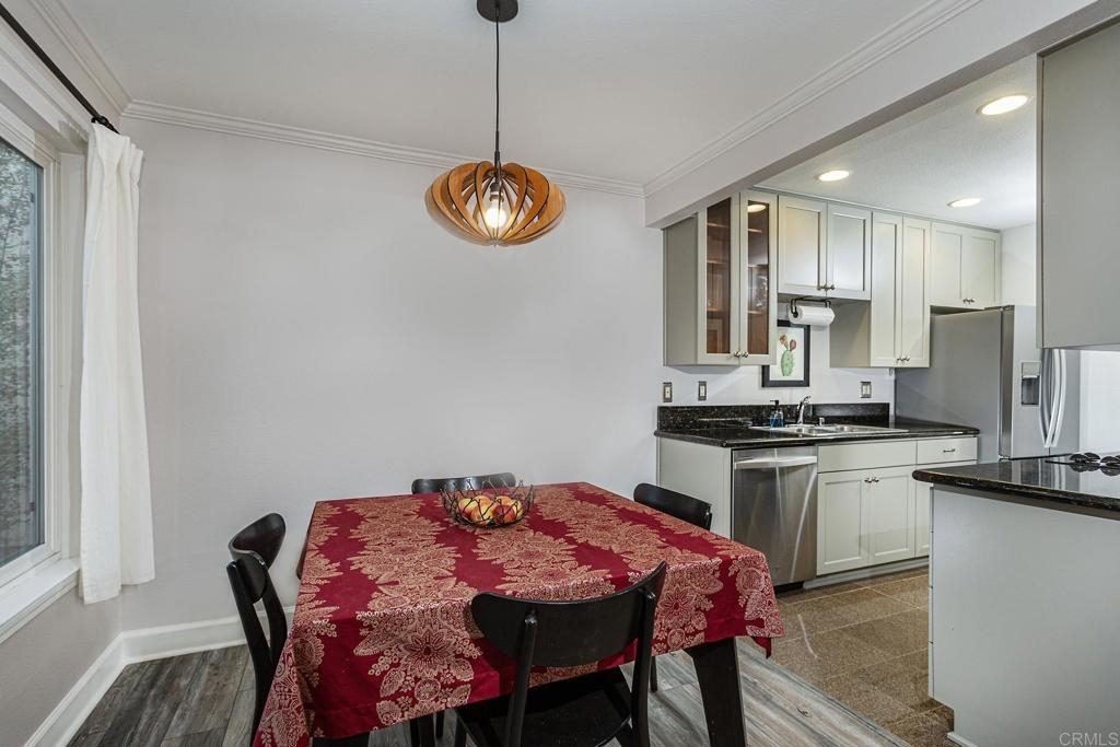 Welcome to this stunning first floor condo in the heart of La Jolla. Modern kitchen features, Granite counters, custom color thermofoil cabinets and high-end appliances. The remodeled bathroom is simply exquisite. Primary bedroom with mirrored wardrobe doors and closet built in with drawers. Entry Hall with nice size closet for additional storage. Other upgrades include laminate plank floors, a recently painted interior, and dual pane windows. The large, enclosed patio is perfect for enjoying your time to unwind or hanging out with your furry one. Conveniently located close to Whole Foods, Trader Joes, restaurants, easy access to I-5 and SR 52, the trolly line, minutes to UCSD and La Jolla Shores Beach. Villa La Jolla offers 2 pools, 2 spas, fitness center and clubhouse which make this home a perfect blend of modern luxury and urban convenience.