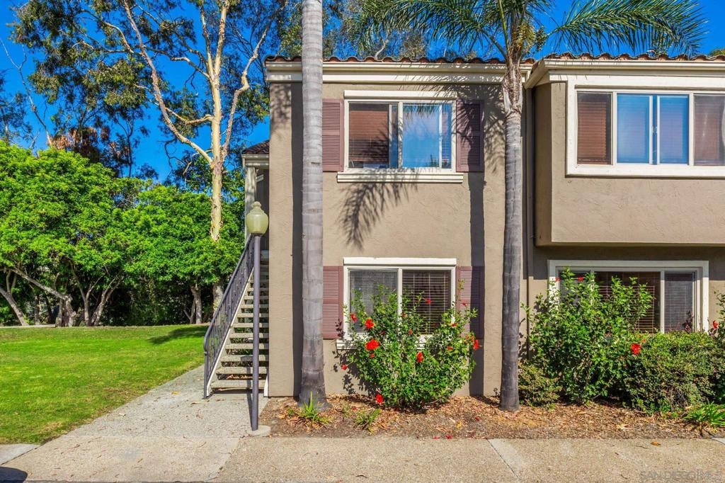 Beautiful move-in-ready 2-bedroom, 2-bathroom END UNIT with VIEWS in the highly sought-after Villa Tuscana community. Built in 2000, this ground-level home offers the convenience of no stairs and is situated in one of the most desirable locations in the complex, featuring a large grassy area adjacent for added privacy. The kitchen is equipped with granite countertops and ss appliances, opening to a spacious floorplan with a cozy fireplace. Enjoy the expansive patio with views and a refreshing breeze, perfect for entertaining. Conveniently located close to UCSD, trolley access, freeways, shopping, the beach, and more!