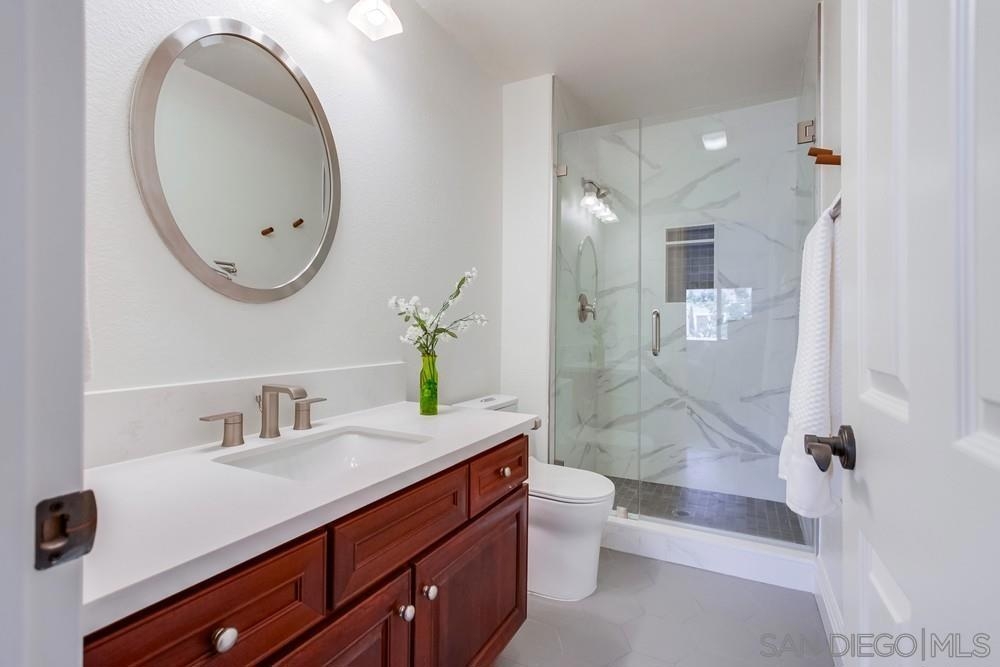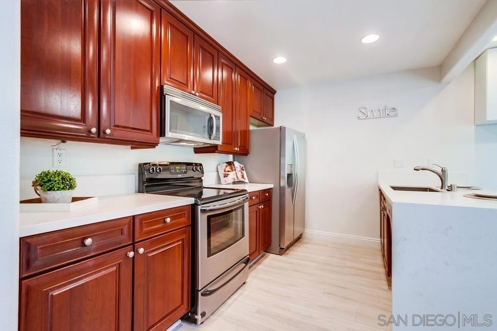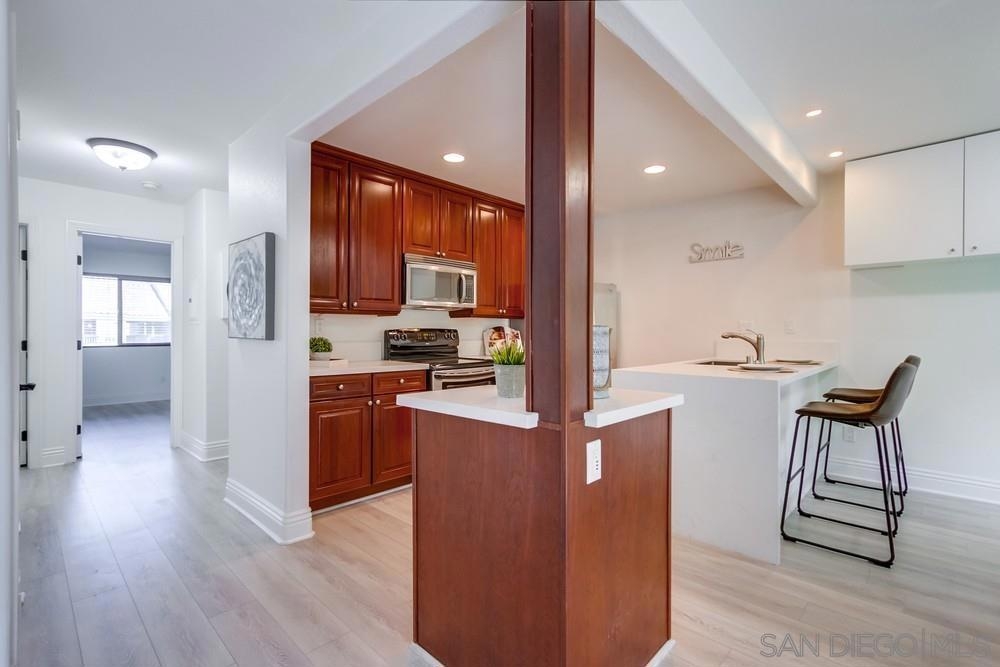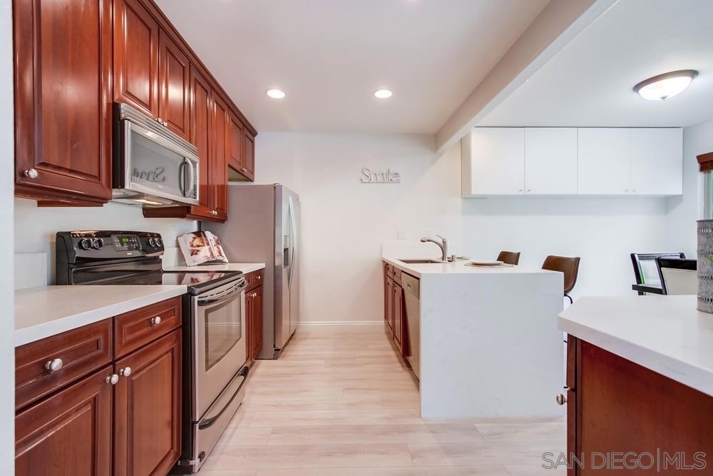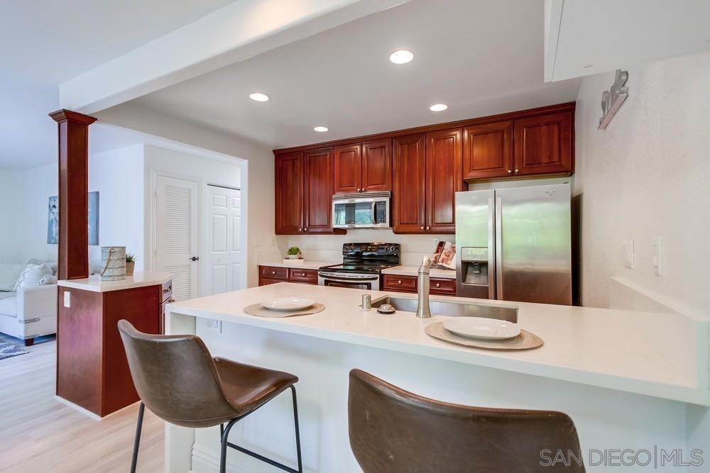 Discover an incredible opportunity with this exquisite upper-level condo in Villa Toscana. Situated within walking distance of the park, La Jolla Village Shopping Plaza, the UCSD bus stop, and trolley station, convenience is at your doorstep. Nestled in a central locale, this complex offers seamless access to freeways and beaches, all while relishing in serenity. Immerse yourself in luxury within this immaculate, move-in ready condo. Meticulously upgraded with cherry cabinetry, stainless steel appliances, stunning quartz countertops, and opulent luxury vinyl plank flooring. The chance to own your La Jolla dream home awaits – seize it now!