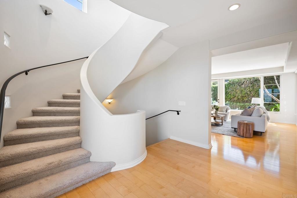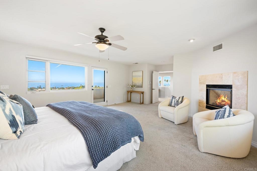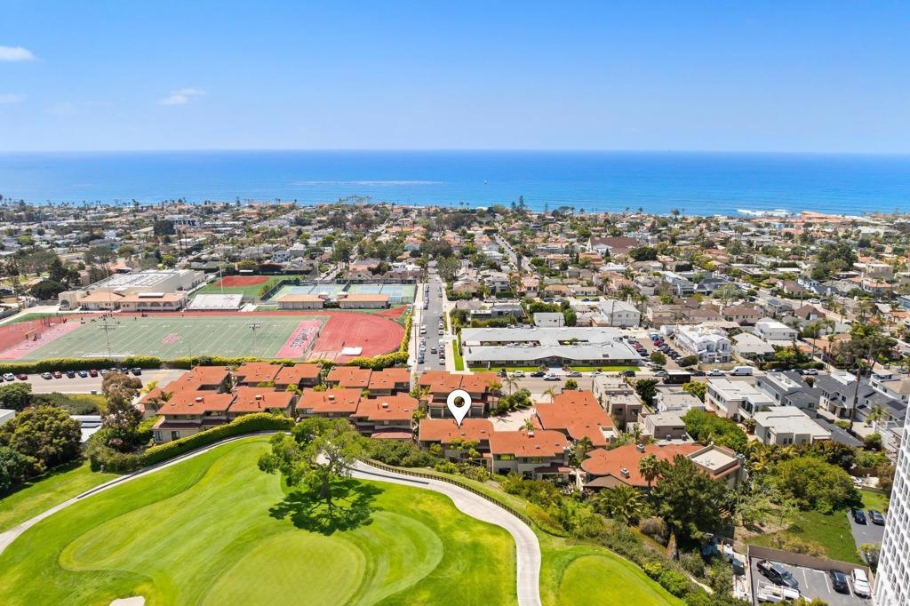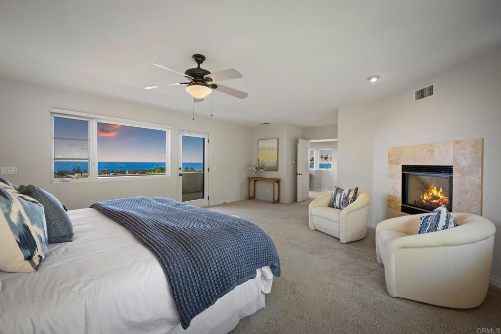COME LIVE THE LA JOLLA DREAM WITH STUNNING SUNSET AND BLUE OCEAN WATER VIEWS FROM ALMOST EVERY ROOM on EVERY LEVEL. This home is so close to the village, with walkability to all that makes La Jolla an Iconic place to live! This home is the largest and rarely available plan at the highly desirable enclave at Village Point! An exquisitely designed and Modern Mediterranean Townhome offers the perfect blend of spacious elegance, superior architecture, and a prime Ocean View location! Striking architectural details include the stunning Nautilus circular staircase, soaring ceilings, three fireplaces, and an abundance of windows creating light and open living with 3 separate extraordinary large private balconies to take in the massive amazing westerly ocean and sunset views. Enjoy a flowing open floor plan, bright natural light, spacious living spaces, and 3 ensuite bedrooms plus an additional office/gym/mancave/wine storage or kid’s playroom. The extremely oversized Primary Suite is on the top VIEW level, with absolute breathtaking ocean views and an amazing westerly facing balcony to take in the morning coffee or relax in the evening to your sunset views. The updated kitchen features premium Dacor stainless steel appliances, granite, and custom cabinetry, all with Ocean views with an additional oversized west facing balcony for entertaining. Lower level has two full en-suite bedrooms each with their private balcony and full bathrooms. Your home is all within walking distance to the wonderful La Jolla Coast in several directions and the world-famous village of La Jolla and all it has to offer including Famous Beaches, World Class Shopping, Golf, Amazing top rated ocean view restaurants! Take a short stroll or bike ride to renowned diving and snorkeling spots, explore the enchanting children's tidal pool, or indulge in upscale shopping and dining along La Jolla's charming streets. Nearby are La Jolla High School along with The Coggan Family Aquatic Complex for swimming enthusiasts and The Bishops School, The Legendary Torrey Pines PGA Golf Course is just minutes away, see amazing culture with the Scripps Birch Aquarium and La Jolla Playhouse nearby. Some of the most iconic surf and view spots the coastline has to offer are in La Jolla....Don't miss this opportunity to have it all! Visit local close by museums in the Village and you are a stone's throw to the La Jolla Country Club golf course, yes that is adjacent to your home! The private interior elevator, allows for a step free entrance to the home from the garage level, delivering your groceries, your shopping bags and YOU to all levels. Just steps from your car to the YOUR INCREDIBLE OCEAN VIEWS and SUNSETS, COME LIVE YOUR DREAM IN LA JOLLA WITH SUPERIOR ICONIC LA JOLLA VIEWS.