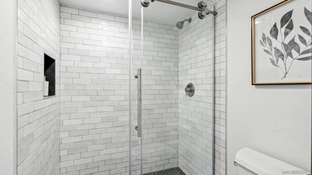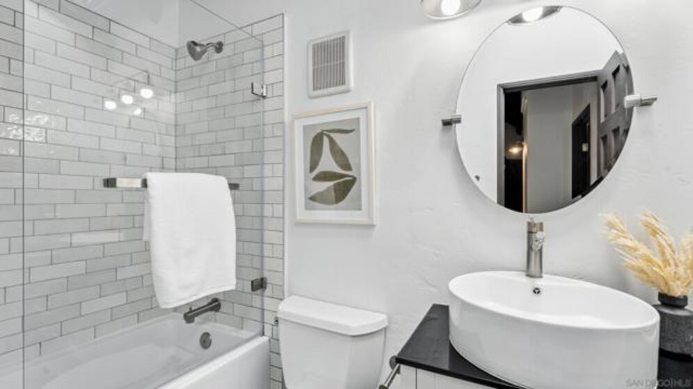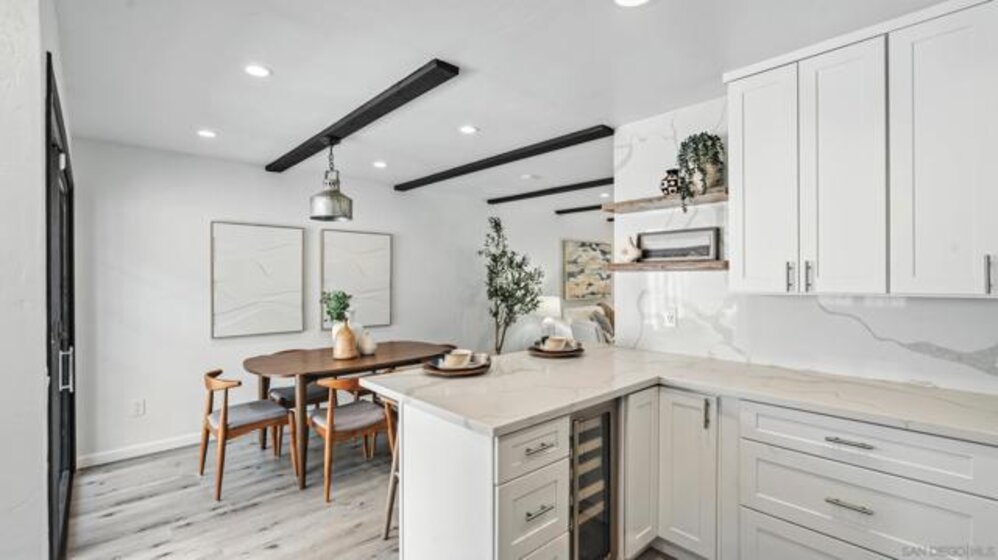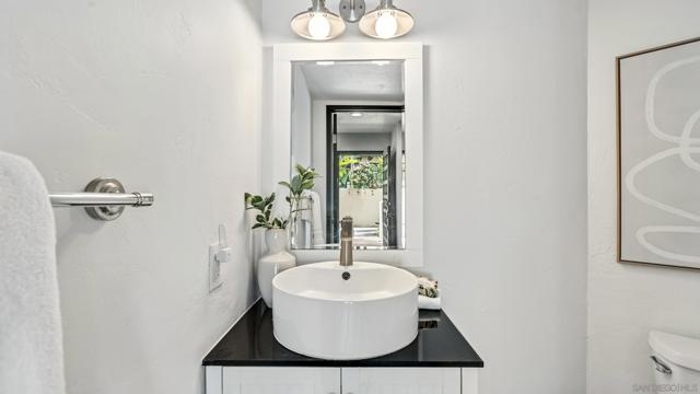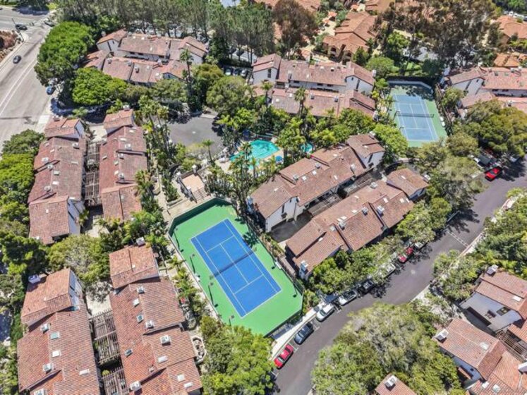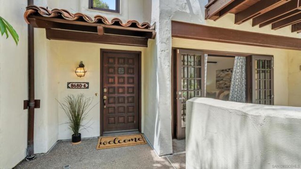 Experience unparalleled luxury in this exquisitely remodeled contemporary townhome in La Jolla. This elegant 2-bedroom, plus bonus room, 2.5-bath home features an open-concept design that seamlessly transitions to multiple patios, perfect for refined outdoor entertaining. Step inside to find Mediterranean-inspired architecture with wide-plank luxury floors, exposed beam ceilings, and a cozy brick fireplace. The gourmet kitchen is a chef's dream, equipped with top-tier appliances and range, a wine fridge, custom cabinetry, plus quartz countertops. The capacious primary suite boasts soaring vaulted ceilings, a private balcony, and an opulent en-suite bathroom with dual sinks and a custom shower. The second level also includes a spacious second bedroom, a fully upgraded second bathroom, plus a versatile bonus room perfect for a home office or nursery. The 2-car garage features an epoxy floor, Electrolux washer and dryer, water heater, plus extensive built-in storage for your convenience. Located in the coveted Villas Mallorca, enjoy amenities including tennis courts, a heated pool and spa, and lush landscaping. Positioned moments from UTC shopping and dining, major freeways, the enchanting La Jolla Cove and beaches, and UCSD. Zoned for top-rated La Jolla schools, this tranquil haven offers the best in luxury living.