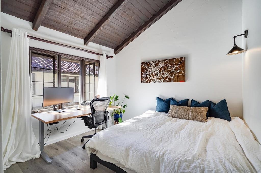 Beautifully remodeled contemporary townhome in La Jolla/UTC! This stylish 2 bed + bonus room, 2.5 bath home offers prime indoor/outdoor living in a light-filled, open concept interior that spills effortlessly onto multiple patios for outdoor entertaining. Mediterranean-inspired architecture welcomes you into the freshly remodeled interior, showcasing new wide-plank LVT floors, exposed beam ceilings and a cozy brick hearth fireplace in the living and dining space. Host cocktails at the breakfast bar in the gourmet kitchen, featuring new top-of-the-line KitchenAid appliances, new Thor 36” range, stainless apron sink, wine fridge, custom shaker cabinets and quartz countertops. Enjoy a tropical patio oasis and private deck with ample room to BBQ and dine al fresco. Vaulted ceilings soar over the expansive primary bedroom with a private balcony and luxurious en-suite bath equipped with dual sinks and a custom shower. The second level also hosts a generous second bedroom, a full bath, and a bonus room perfect for a home office or nursery. The spacious 2-car garage features a new epoxy floor, new front-load Electrolux washer and dryer, new water heater and whole-home water filter, new quiet belt-drive opener, and tons of extra finished storage space unique to this unit. This is the most sought-after complex in UTC! Zoned for top-rated La Jolla schools, close to everything yet super tranquil and secluded. Villas Mallorca offers tennis courts, a heated pool and spa, and large mature landscaping, moments from UTC shops and dining, freeways, La Jolla Cove and UCSD. Equipment: Garage Door Opener Sewer: Sewer Connected Topography: LL