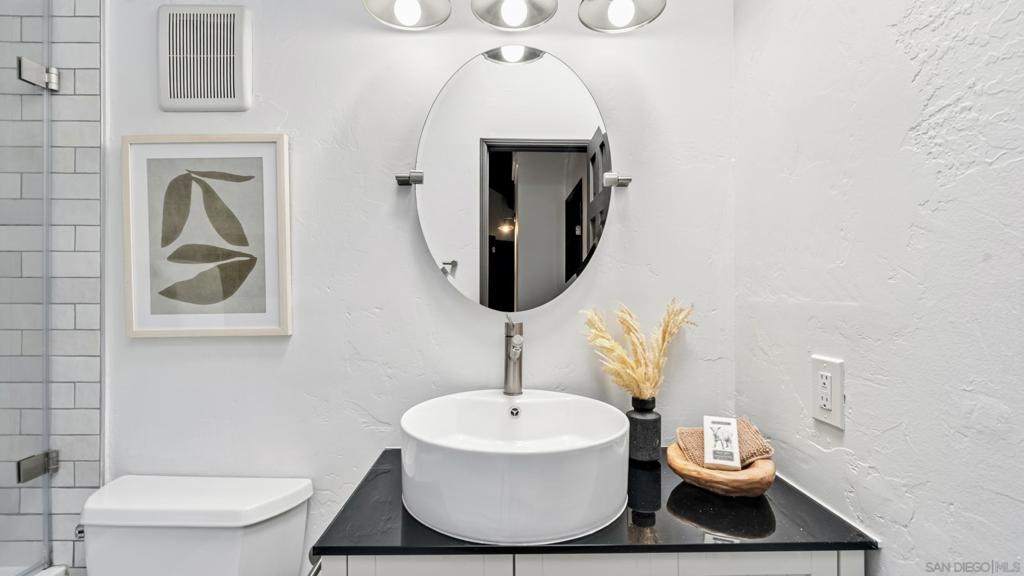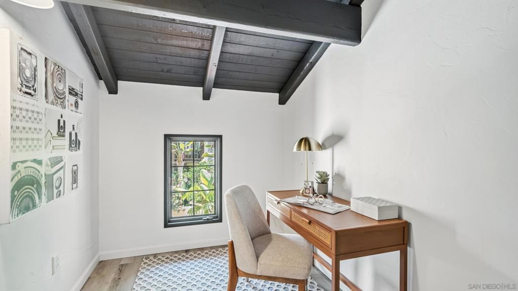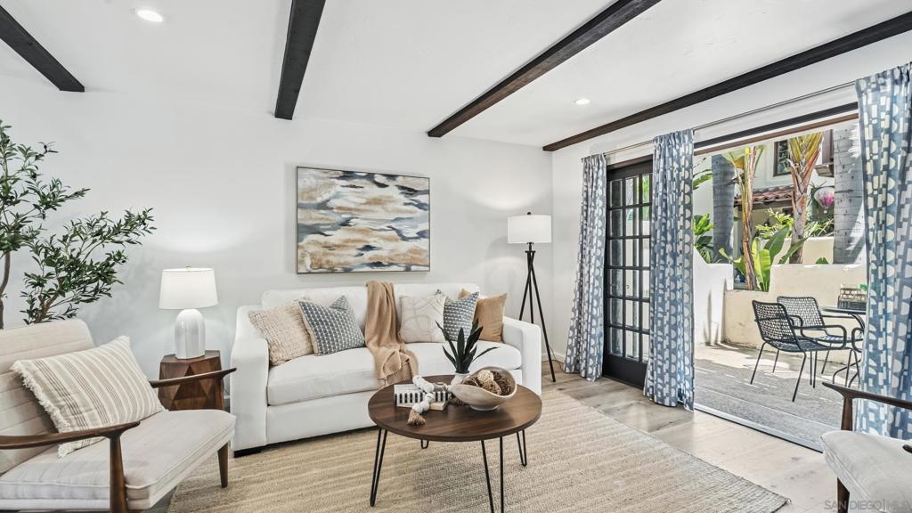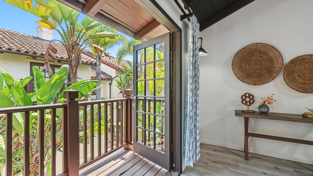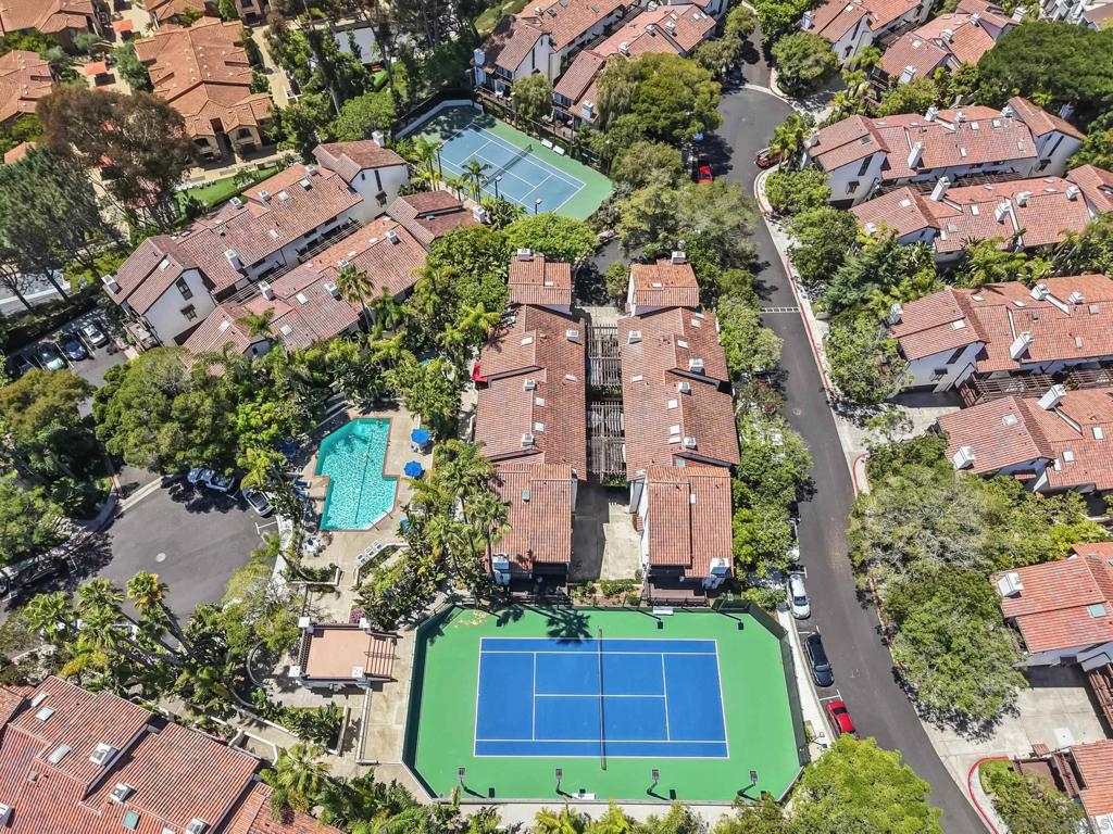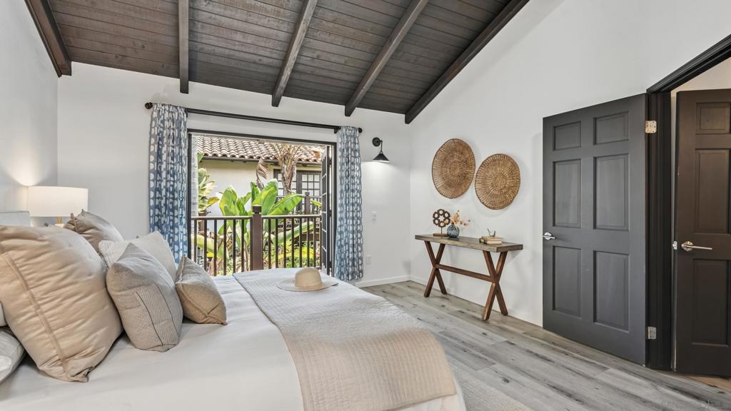 Experience unparalleled luxury in this exquisitely remodeled contemporary townhome in La Jolla. This elegant 2-bedroom, plus bonus room, 2.5-bath home features an open-concept design that seamlessly transitions to multiple patios, perfect for refined outdoor entertaining. Step inside to find Mediterranean-inspired architecture with wide-plank luxury floors, exposed beam ceilings, and a cozy brick fireplace. The gourmet kitchen is a chef's dream, equipped with top-tier appliances and range, a wine fridge, custom cabinetry, plus quartz countertops. The capacious primary suite boasts soaring vaulted ceilings, a private balcony, and an opulent en-suite bathroom with dual sinks and a custom shower. The second level also includes a spacious second bedroom, a fully upgraded second bathroom, plus a versatile bonus room perfect for a home office or nursery. The 2-car garage features an epoxy floor, Electrolux washer and dryer, water heater, plus extensive built-in storage for your convenience. Located in the coveted Villas Mallorca, enjoy amenities including tennis courts, a heated pool and spa, and lush landscaping. Positioned moments from UTC shopping and dining, major freeways, the enchanting La Jolla Cove and beaches, and UCSD. Zoned for top-rated La Jolla schools, this tranquil haven offers the best in luxury living.