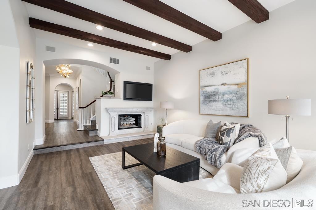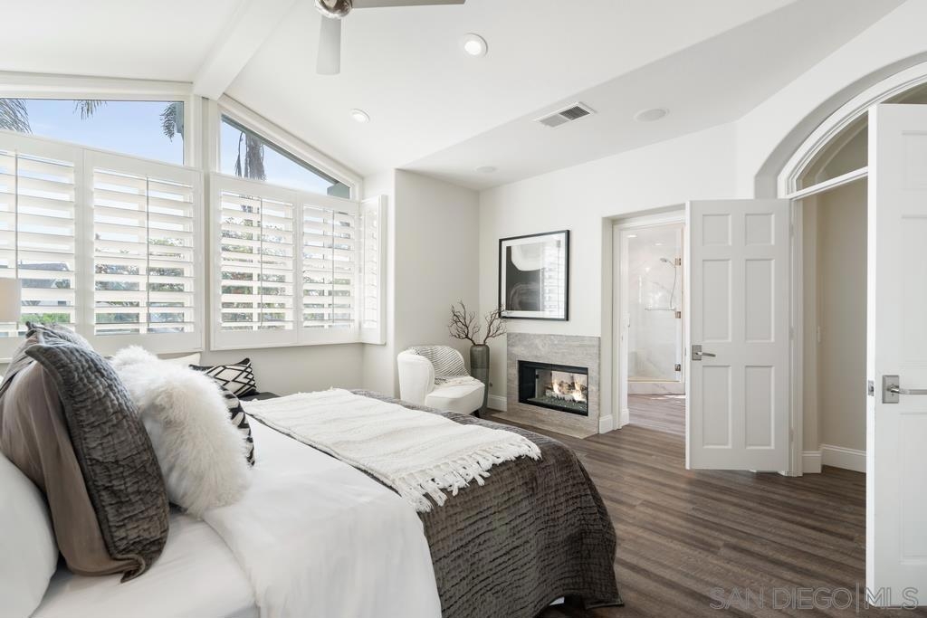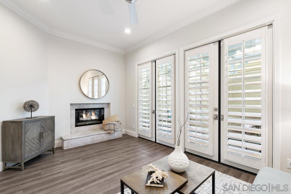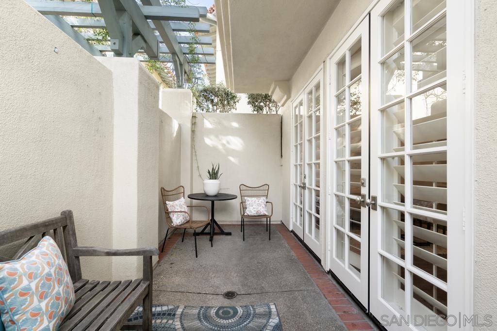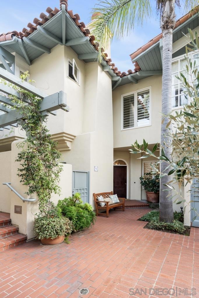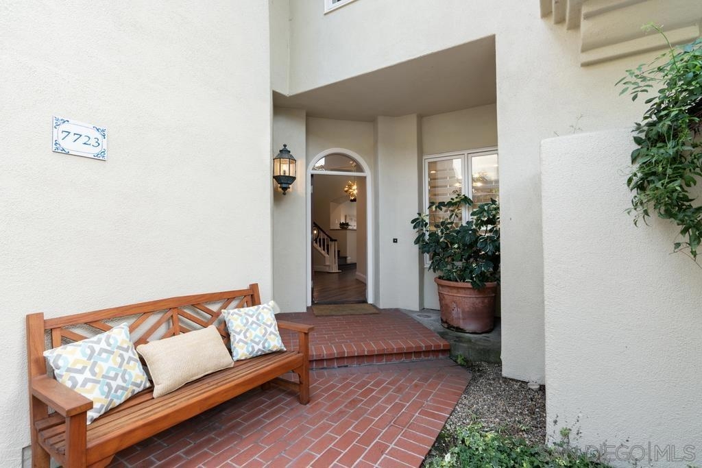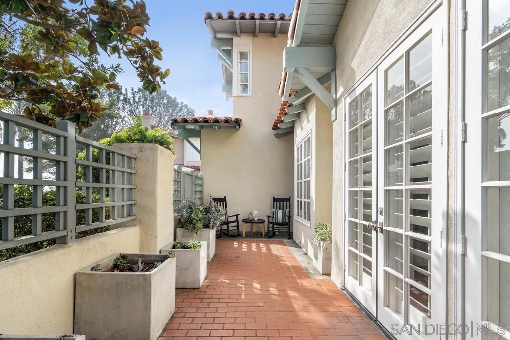 A rare gem in the heart of old La Jolla, this residence nestled in the exclusive Villas of Ivanhoe seamlessly combines contemporary flair with timeless elegance. The fusion of modern design and traditional charm is immediately evident with the formal dining room effortlessly transitioning into an expansive living room graced by a stunning mantle and fireplace. A cozy den with another fireplace on the other side of the home beckons for further moments of relaxation. This sleek and well-proportioned residence is bathed in natural light thanks to its lofty ceilings and generously sized windows and French doors. The plethora of thoughtful details and distinctive features - the natural wood beam ceilings, arched doorways and wood floors - contribute to the character and charm. The eye-catching wrap-around staircase serves as a centerpiece, adding a touch of grandeur to the overall aesthetic. The kitchen, adorned with gleaming quartz countertops, exemplifies the commitment to high-end finishes and functionality. Whether it's a quiet moment alone or a family meal, the breakfast nook adds an extra layer of coziness to the home. All three generously proportioned bedrooms and a well-placed laundry room are located on the second floor. Natural light infuses the rooms and cascades across the walls. A delightful see-through fireplace shares space with the impressive en suite primary bathroom that features a jacuzzi tub, separate shower, high vanities, double sinks, and a walk-in closet. The private patios on each side of the home invite you to embrace the indoor-outdoor lifestyle and bask in the warm Southern California sunshine and relish moments of tranquility under the open sky. This Villa ensures privacy and security as one of only thirteen residences in an exclusive gated community. With a garage entry leading to two convenient side-by-side parking spaces and storage space exclusive to the unit, arriving home is a pleasure. Villas of Ivanhoe is on the doorstep of the enchanting neighborhood of La Jolla and mere blocks away from the iconic La Jolla Cove and Children's Pool Beach and a vibrant array of restaurants, cafes and boutiques in the heart of the village. This residence offers sophistication, comfort and convenience: the perfect vantage point to immerse oneself in the rich tapestry of the La Jolla coastal lifestyle.