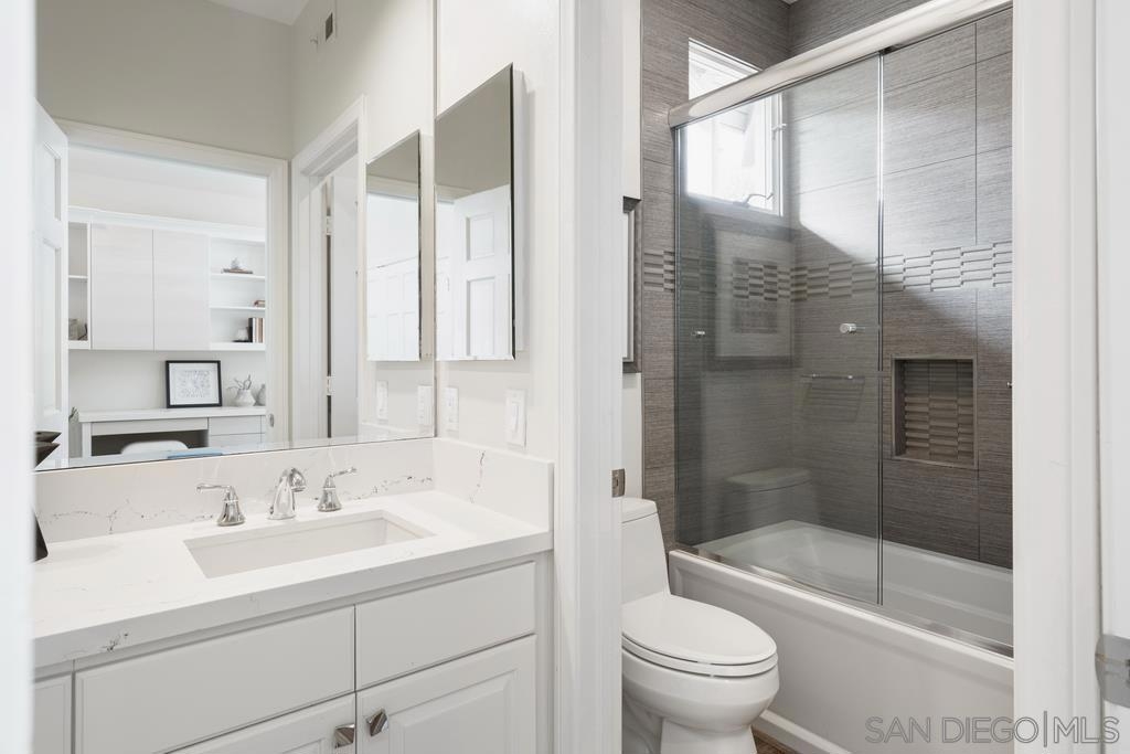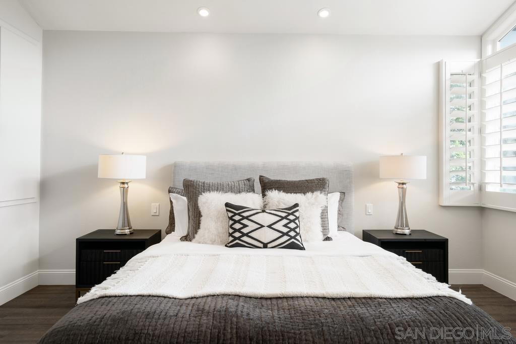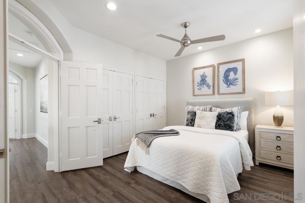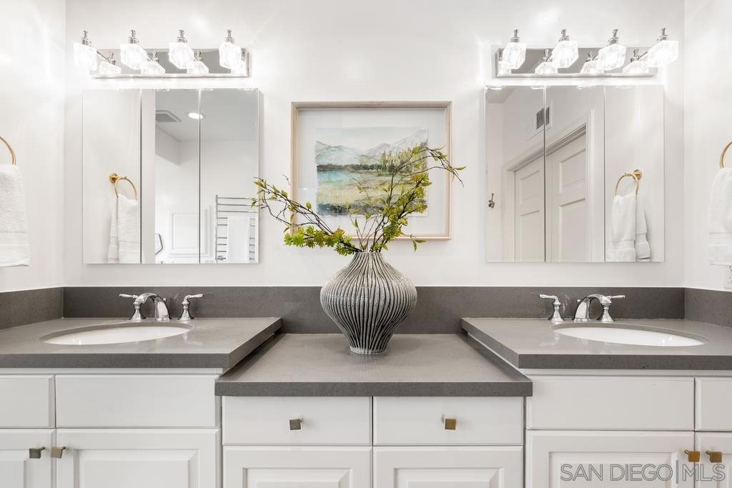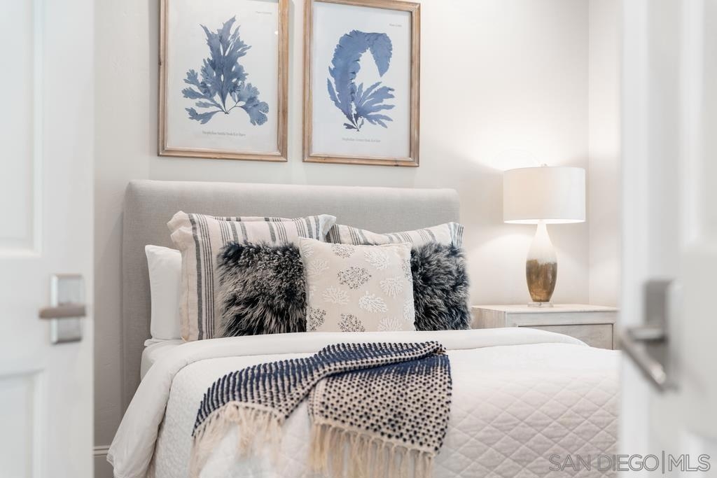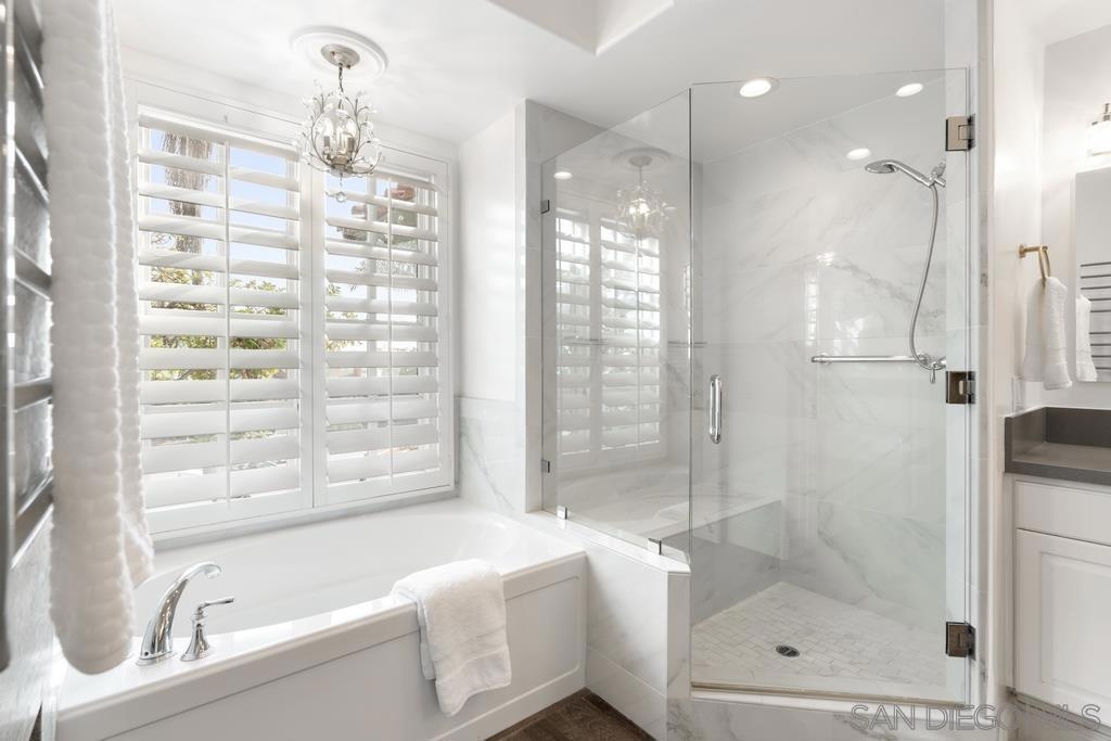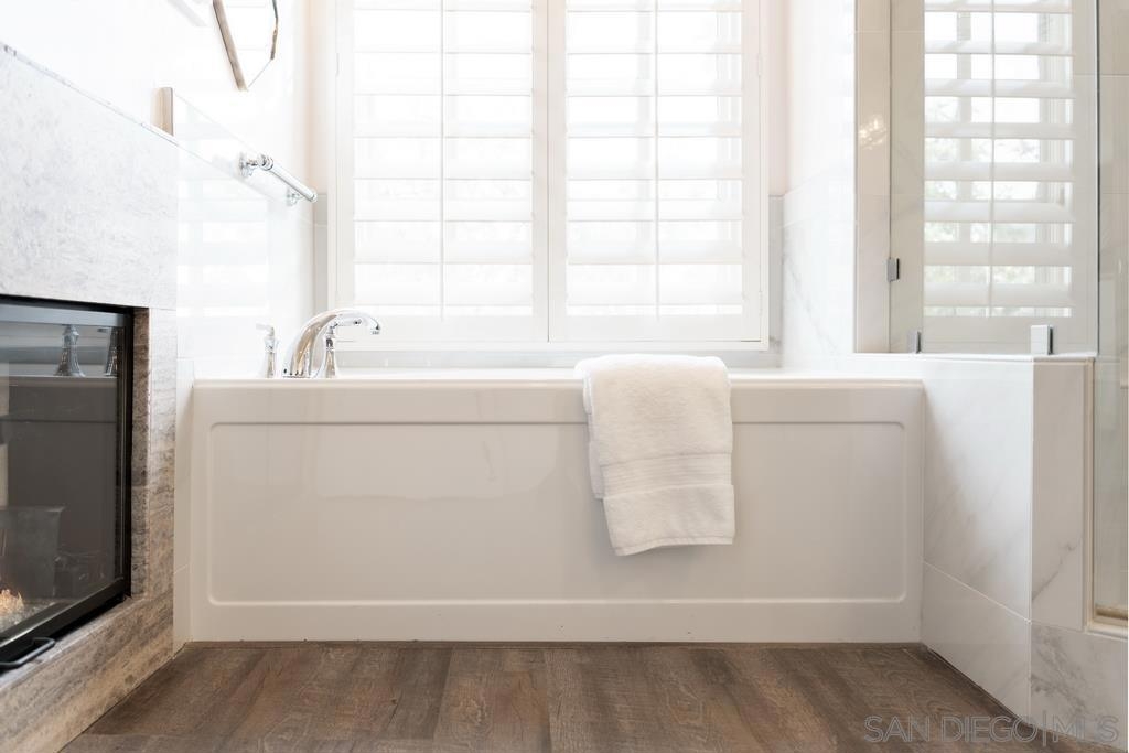 A rare gem in the heart of old La Jolla, this residence nestled in the exclusive Villas of Ivanhoe seamlessly combines contemporary flair with timeless elegance. The fusion of modern design and traditional charm is immediately evident with the formal dining room effortlessly transitioning into an expansive living room graced by a stunning mantle and fireplace. A cozy den with another fireplace on the other side of the home beckons for further moments of relaxation. This sleek and well-proportioned residence is bathed in natural light thanks to its lofty ceilings and generously sized windows and French doors. The plethora of thoughtful details and distinctive features - the natural wood beam ceilings, arched doorways and wood floors - contribute to the character and charm. The eye-catching wrap-around staircase serves as a centerpiece, adding a touch of grandeur to the overall aesthetic. The kitchen, adorned with gleaming quartz countertops, exemplifies the commitment to high-end finishes and functionality. Whether it's a quiet moment alone or a family meal, the breakfast nook adds an extra layer of coziness to the home. All three generously proportioned bedrooms and a well-placed laundry room are located on the second floor. Natural light infuses the rooms and cascades across the walls. A delightful see-through fireplace shares space with the impressive en suite primary bathroom that features a jacuzzi tub, separate shower, high vanities, double sinks, and a walk-in closet. The private patios on each side of the home invite you to embrace the indoor-outdoor lifestyle and bask in the warm Southern California sunshine and relish moments of tranquility under the open sky. This Villa ensures privacy and security as one of only thirteen residences in an exclusive gated community. With a garage entry leading to two convenient side-by-side parking spaces and storage space exclusive to the unit, arriving home is a pleasure. Villas of Ivanhoe is on the doorstep of the enchanting neighborhood of La Jolla and mere blocks away from the iconic La Jolla Cove and Children's Pool Beach and a vibrant array of restaurants, cafes and boutiques in the heart of the village. This residence offers sophistication, comfort and convenience: the perfect vantage point to immerse oneself in the rich tapestry of the La Jolla coastal lifestyle.