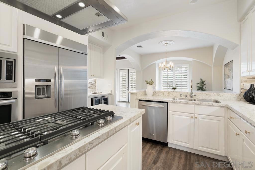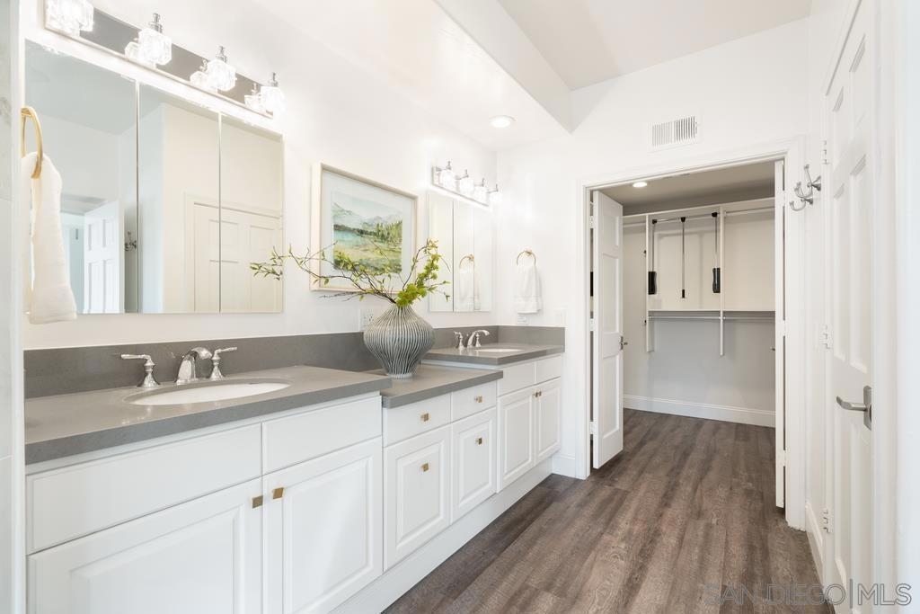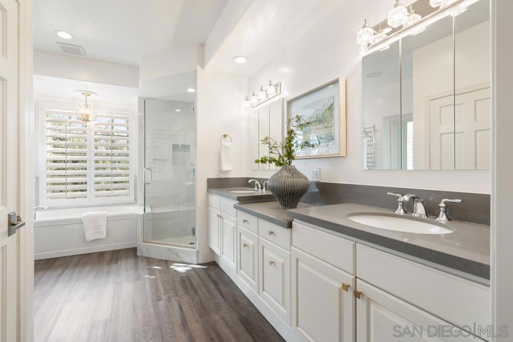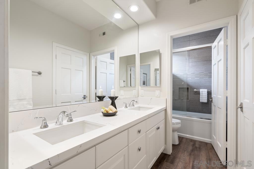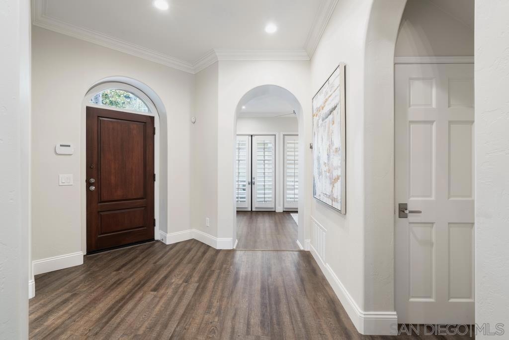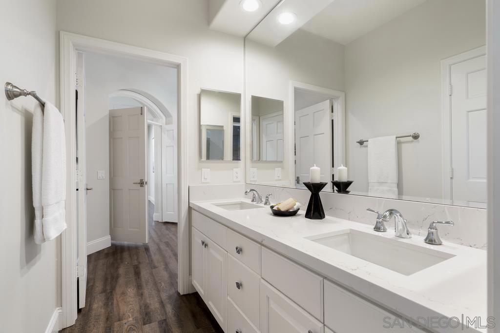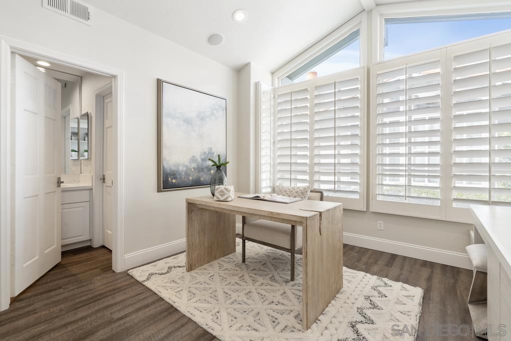A rare gem in the heart of old La Jolla, this residence nestled in the exclusive Villas of Ivanhoe seamlessly combines contemporary flair with timeless elegance. The fusion of modern design and traditional charm is immediately evident with the formal dining room effortlessly transitioning into an expansive living room graced by a stunning mantle and fireplace. A cozy den with another fireplace on the other side of the home beckons for further moments of relaxation. This sleek and well-proportioned residence is bathed in natural light thanks to its lofty ceilings and generously sized windows and French doors. The plethora of thoughtful details and distinctive features - the natural wood beam ceilings, arched doorways and wood floors - contribute to the character and charm. The eye-catching wrap-around staircase serves as a centerpiece, adding a touch of grandeur to the overall aesthetic. The kitchen, adorned with gleaming quartz countertops, exemplifies the commitment to high-end finishes and functionality. Whether it's a quiet moment alone or a family meal, the breakfast nook adds an extra layer of coziness to the home. All three generously proportioned bedrooms and a well-placed laundry room are located on the second floor. Natural light infuses the rooms and cascades across the walls. A delightful see-through fireplace shares space with the impressive en suite primary bathroom that features a jacuzzi tub, separate shower, high vanities, double sinks, and a walk-in closet. The private patios on each side of the home invite you to embrace the indoor-outdoor lifestyle and bask in the warm Southern California sunshine and relish moments of tranquility under the open sky. This Villa ensures privacy and security as one of only thirteen residences in an exclusive gated community. With a garage entry leading to two convenient side-by-side parking spaces and storage space exclusive to the unit, arriving home is a pleasure. Villas of Ivanhoe is on the doorstep of the enchanting neighborhood of La Jolla and mere blocks away from the iconic La Jolla Cove and Children's Pool Beach and a vibrant array of restaurants, cafes and boutiques in the heart of the village. This residence offers sophistication, comfort and convenience: the perfect vantage point to immerse oneself in the rich tapestry of the La Jolla coastal lifestyle.