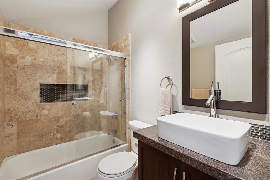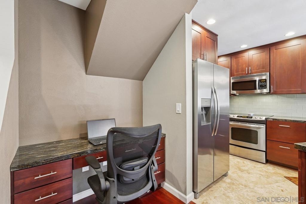 Discover the highly sought-after Woodlands West community in La Jolla Village, perfectly situated west of the 5 freeway and just moments from UCSD, La Jolla Shores, top schools, and premier shopping and dining. This spacious two-story townhome offers direct access with an attached two-car garage and is surrounded by lush greenbelts with access to resort-style amenities, including a pool, tennis courts, and clubhouse. Inside, the light-filled floor plan features wood flooring, recessed lighting, and a welcoming fireplace that anchors the living area. The beautifully remodeled kitchen is highlighted by granite countertops, stainless steel appliances, and rich cabinetry, with a convenient breakfast bar connecting seamlessly to the dining and living spaces. A built-in office nook adds flexibility for today’s lifestyle. Step outside to your own large private patio, ideal for entertaining or quiet relaxation. Upstairs, the generous primary suite impresses with vaulted ceilings, a private balcony, ample closet space, and a stylish en-suite bath. A junior suite with its own bathroom provides comfort for guests or family. This residence combines style, convenience, and a coastal lifestyle in one of La Jolla’s most desirable neighborhoods.