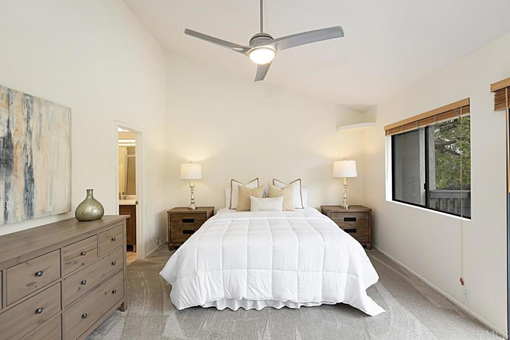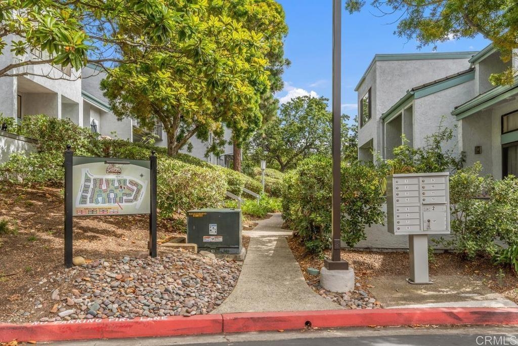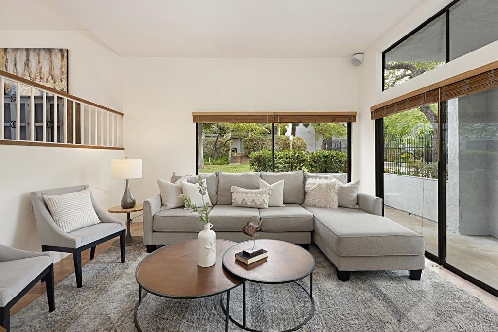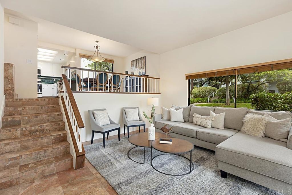 Rarely available, this exceptional 3-bedroom, 2.5-bathroom home offers a premier park-like location. Every window in this property offers picturesque views of the lush greenery that surrounds the home. The first and second levels feature elegant stone floors, while newer carpet graces the top level where all the bedrooms are situated. The two secondary bedrooms are serviced by a beautiful all-stone bath, while the primary bath showcases a new vanity and has a stall shower. Indoor and outdoor living seamlessly merge with a large wraparound patio, a deck accessed from the dining area, and a wall-to-wall outdoor balcony off the primary bedroom, providing stunning views of the pool, spa, and clubhouse. This home reflects the perfect blend of sophisticated interior design and serene outdoor beauty. Enjoy the convenience of being situated near the Trolley, shopping, dining, cinema, the UCSD campus, the Village of La Jolla, Torrey Pines Golf Course, and the renowned La Jolla Playhouse. Additionally, the proximity to La Jolla Shores Beach makes this location an ideal choice for those seeking the perfect blend of natural beauty and urban amenities.