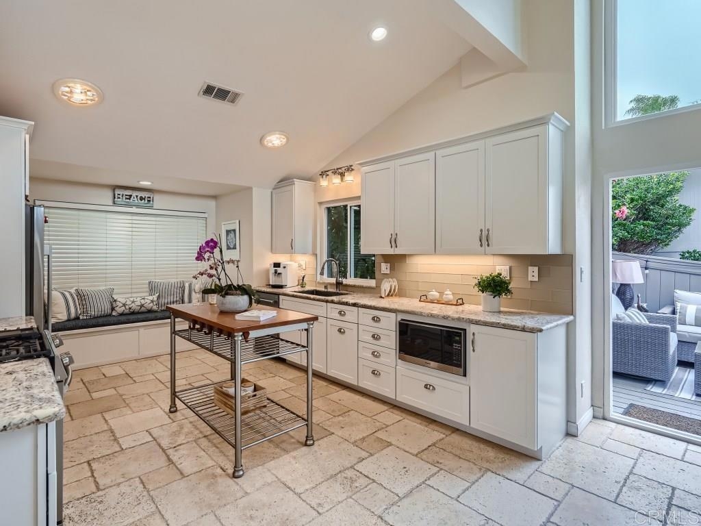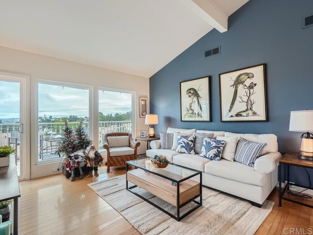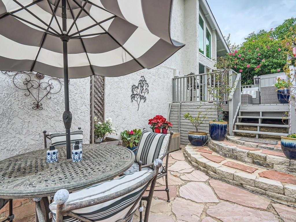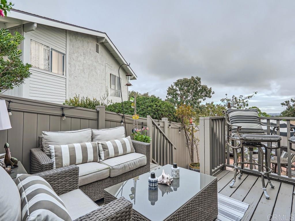 Breathtaking ocean and city views await you in one of the most desirable communities in La Jolla! This corner-unit home is one of only seven on a serene and quiet cul-de-sac. As soon as you enter this property an abundance of light fills the kitchen and living area, providing a sense of airy and openness that flows seamlessly to one of the three private outdoor spaces. Unlike many of the other homes in the community this home offers a nice size deck with incredible views off the kitchen area with steps down to a large side yard, both areas perfect for enjoying your morning coffee or evening glass of wine! The kitchen has been fully remodeled featuring travertine flooring, a brand new designer series gas range, beautiful white shaker cabinetry with puck lighting, granite countertops, a built-in window bench, and extra large pantry style cabinets for the perfect amount of storage. The top floor of the home features a large open living area with a gas fireplace, mini-bar and a sliding glass door that takes you out to a large deck with great views... This floor also features a bedroom, updated bathroom, and a secluded loft area perfect for a game/theater room or man cave. Heading downstairs, you will find the master suite which has a large private patio out the sliding glass door. The master suite also features a walk-in closet and a nice size walk-in-shower. On the lower floor, you will also find the 3rd bedroom with its own beautifully remodeled bathroom. The Mount La Jolla community is a peaceful and well maintained community with walking paths, resort-like amenities including pools, tennis courts, many greenbelts, a clubhouse, and gorgeous tree lined streets. Conveniently located just minutes away from La Jolla Village, La Jolla Cove, Mt. Soledad, Top-Rated Schools, Restaurants, Shopping, Pacific Beach, Mission Bay, and so much more. Your new home with panoramic views awaits!