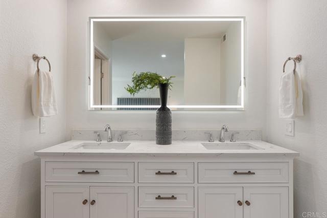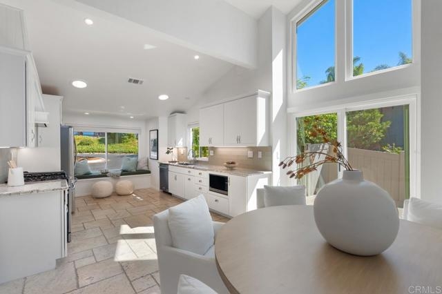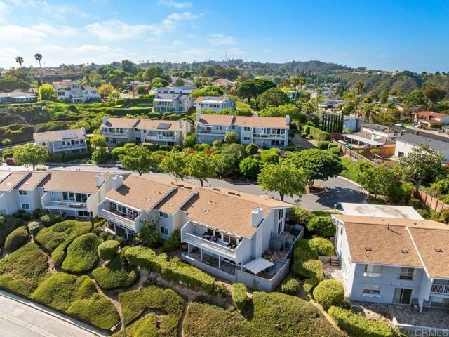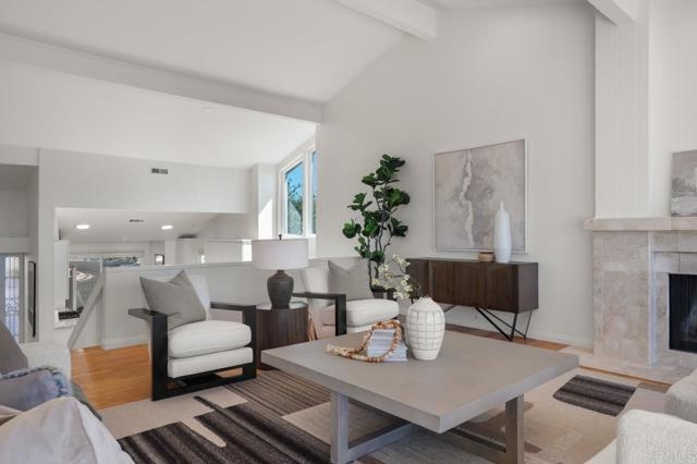 Stunning panoramic ocean and city views greet you from this rare corner residence, located in one of La Jolla’s most sought-after communities. Tucked away on a peaceful, private cul-de-sac with just seven homes, this property offers an abundance of natural light and a spacious, airy feel from the moment you walk in. The open kitchen and living area flow effortlessly to three private outdoor retreats, including a generous deck just off the kitchen—perfect for sipping your morning coffee or winding down with a glass of wine. From there, steps lead down to an expansive side yard ideal for relaxing or entertaining. The remodeled kitchen is a showstopper, featuring travertine floors, a designer series gas range, crisp white shaker cabinets with under-cabinet lighting, granite countertops, a built-in window bench, and oversized pantry storage. Upstairs, the bright and open living room features a cozy gas fireplace, a mini-bar, and sliding doors that lead to a spacious deck with sweeping views. This level also includes a guest bedroom, an updated full bath, and a tucked-away loft—perfect as a media room, office, or game room. The primary suite is located on the lower level, complete with a walk-in closet, a large walk-in shower, and access to a private patio through sliding glass doors. A third bedroom and beautifully remodeled bath complete this floor. Located in the beautifully maintained Mount La Jolla community, residents enjoy serene walking paths, resort-style amenities including pools, tennis courts, a clubhouse, and lush tree-lined streets. Just minutes from La Jolla Village, top-rated schools, beaches, Mt. Soledad, and the best of dining and shopping—this is coastal living at its finest. Your perfect view-filled retreat awaits!