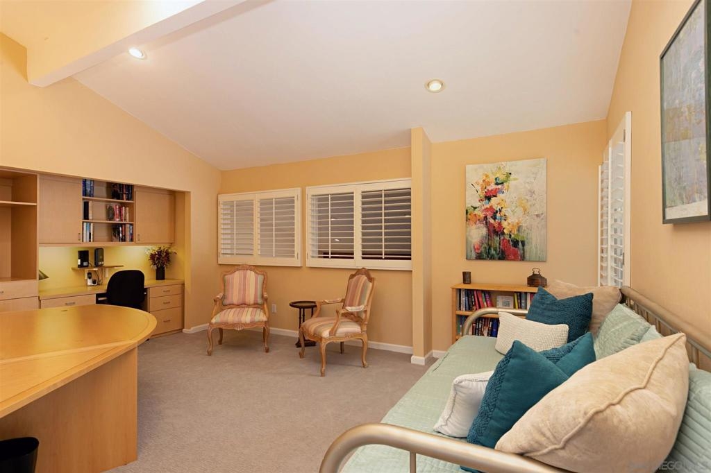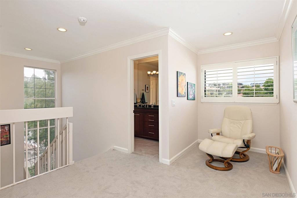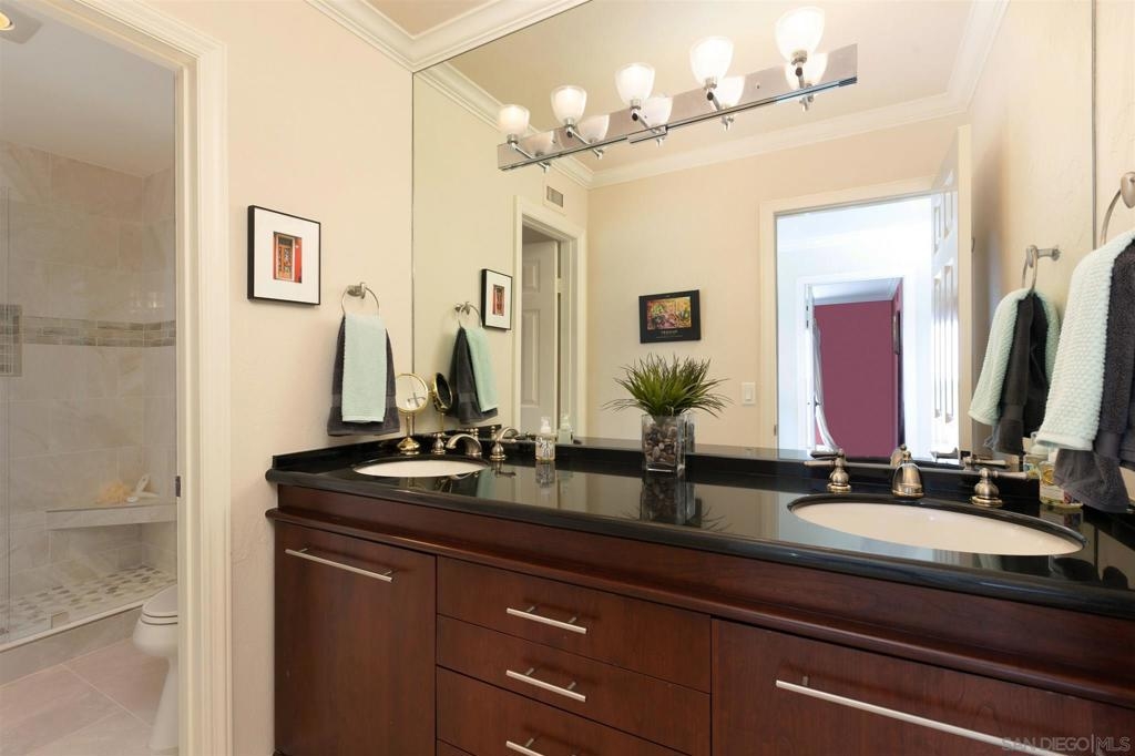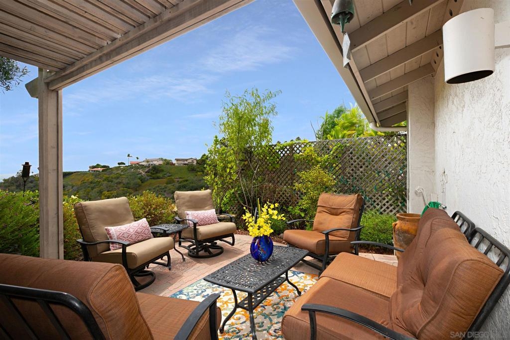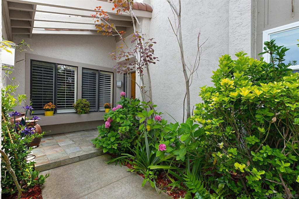 Private & tranquil La Jolla twinhome in El Dorado II on a single loaded street, overlooking the canyon w/views from Mission Bay to downtown & the ocean. Enjoy this desirable layout boasting the master bedroom on first floor w/ pvt patio. Home features vaulted ceilings, plantation shutters, balcony off upstairs guest room & floor to ceiling windows in living room leading to a very private view patio that opens to the canyon w/new sliding glass door. Gourmet kitchen w/stainless appliances & reed glass in uppers. Additional recent upgrades include Acacia hardwood floors throughout the downstairs, new carpet on stairs & upstairs, newer interior paint, patio tiles in 2020 & new roof in 2019. 4th bedroom/loft is being used as a large office w/built-ins in the former closet (easy to convert back). Newer piping from water main to house in 2016. La Jolla Alta HOA includes lighted tennis courts, 2 pools, fitness center, clubhouse and more! Effective year built per public records is 2002. Located near Windemere shops & restaurant and situated perfectly to watch Seaworld fireworks in the summer! Additional recent upgrades include Acacia hardwood floors throughout the downstairs, new carpet on stairs & upstairs, newer interior paint, patio tiles in 2020 & new roof in 2019. 4th bedroom/loft is being used as a large office w/built-ins in the former closet (easy to convert back). Newer piping from water main to house in 2016. La Jolla Alta HOA includes lighted tennis courts, 2 pools, fitness center, clubhouse and more! Effective year built per public records is 2002. Located near Windemere shops & restaurant and situated perfectly to watch Seaworld fireworks in the summer! Master bathroom was completely remodeled in 2011 with new cabinets, marble tub, walk-in shower, commode, marble tiles, sinks, faucets, mirrors and window. Master closet was upgraded with built-ins. Kitchen was upgraded in 2016 with a new dishwasher and new sink faucet. New water heater plus garage floor in epoxy in 2017. Guest bath was remodeled in 2020 with new tile, window and commode as well as upstairs bath with walk-in shower, tile, commode and window. Complex Features: ,, Equipment: Garage Door Opener Sewer: Sewer Connected, Public Sewer Topography: , Frontage: Canyon