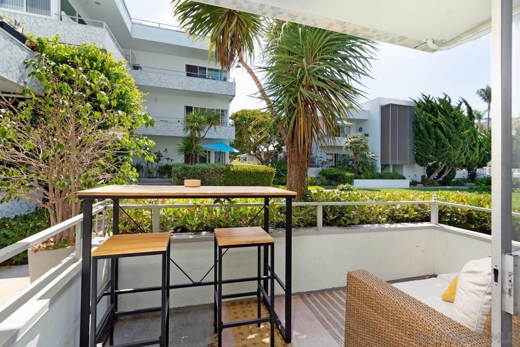 Walk to La Jolla Shores Beach! This luxury La Jolla Shores condo feels like a house. Mid-Century style, lots of windows, living room porch opens to a private, lush and tropical courtyard area with a community pool. Beautifully remodeled single-story end unit – approximately 1700 sq. ft. in a smoke-free complex. Two large bedrooms, 2 full baths, with a HUGE extra bunk/bonus room (400 square feet) and 2 porches. This move-in-ready home is perfect for the discerning buyer - new bamboo wood flooring and fresh paint throughout, new custom kitchen with quartz countertops, new appliances and lighting, renovated front bathroom, new washer/dryer in-unit, new heating registers. Upgraded electrical panel and new wiring. The complex, built in 1959, is a tranquil respite from the surrounding area, features mid-century modern "Jackie O" style of architecture with a beautiful pool and gorgeous mature landscaping, very pet-friendly. Garage parking directly under the building and storage area, as well as outdoor parking space included. This stunning home has a “secret path” to the beach via Paseo Dorado. To live that close to the beach in La Jolla with all that square footage? Coffee shops and great restaurants are a short stroll. This is the best location for easy access to get in and out of La Jolla via 5 & 52 freeways. San Diego Union schools - La Jolla Elementary, Muirlands Middle and La Jolla High. Simplify your life - HOA fee includes all utilities (basic cable, electricity, water, trash, sewer, heating). Sewer: Sewer Connected Topography: GSL