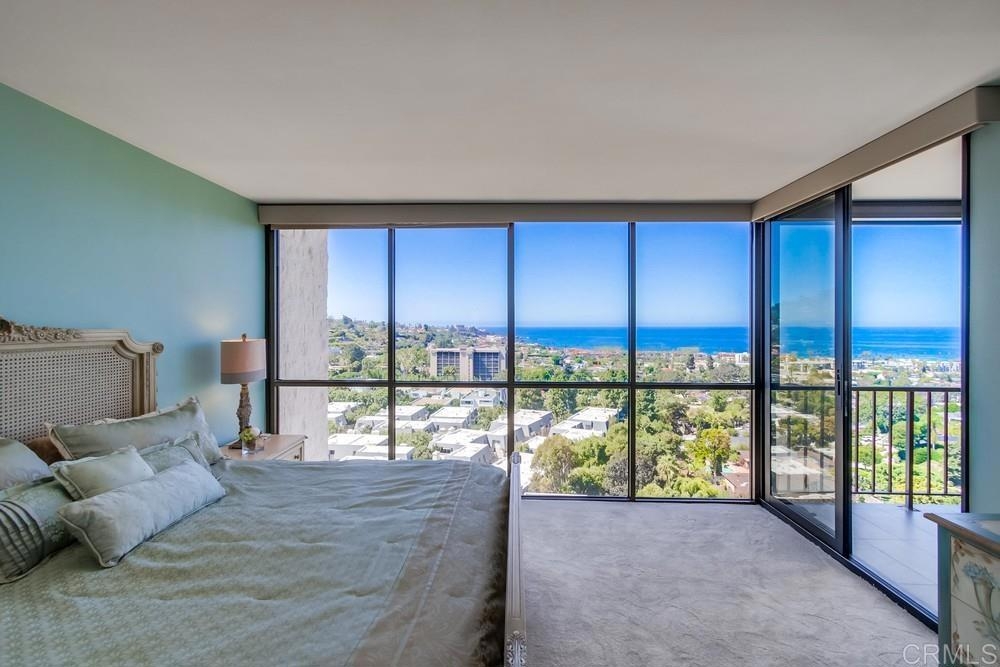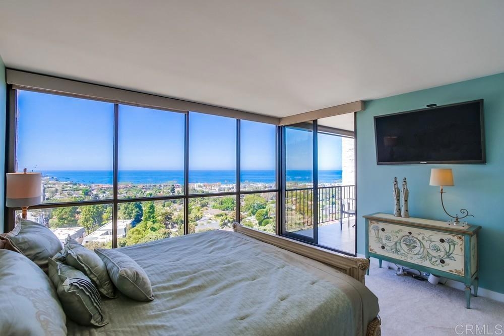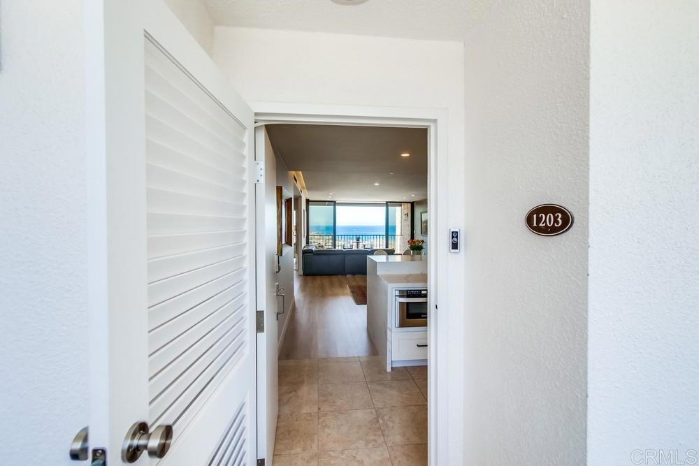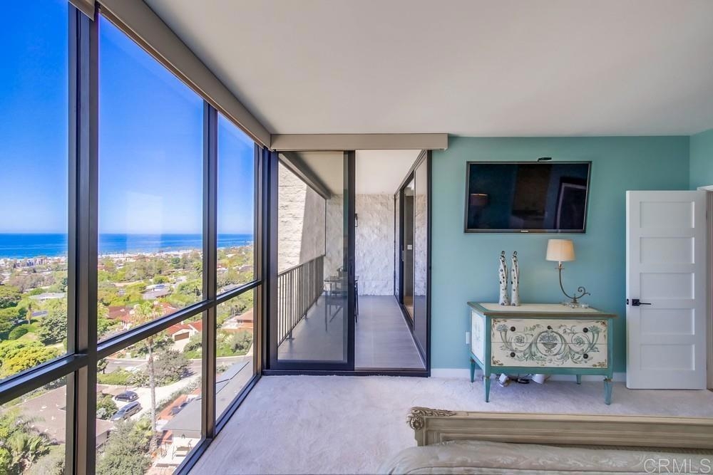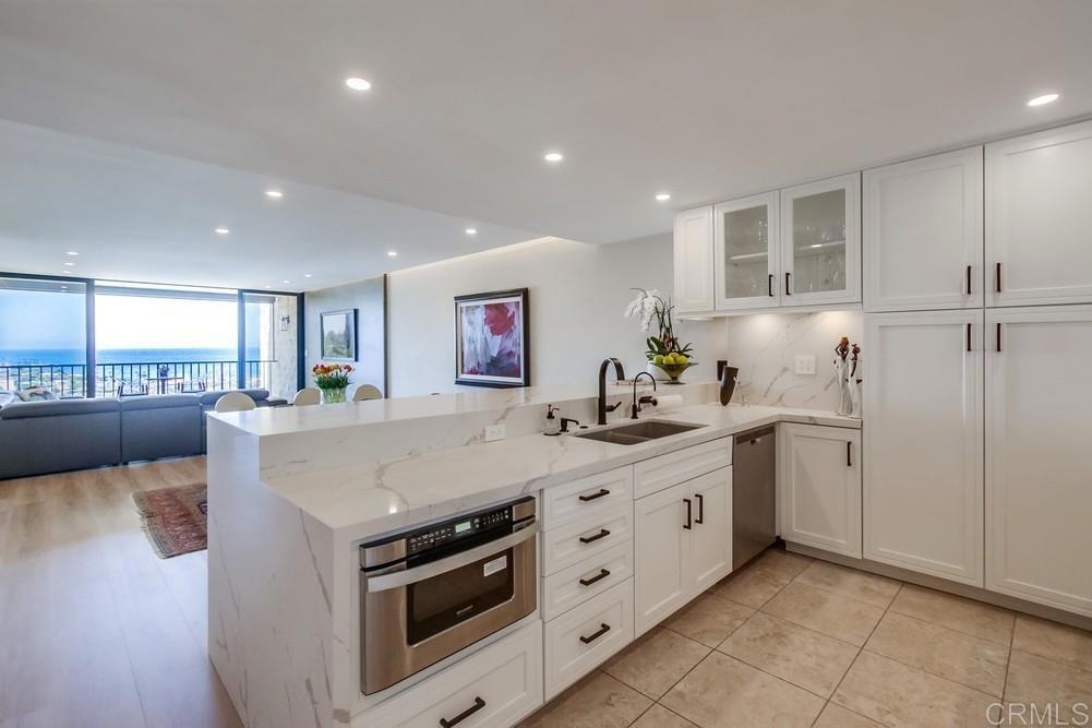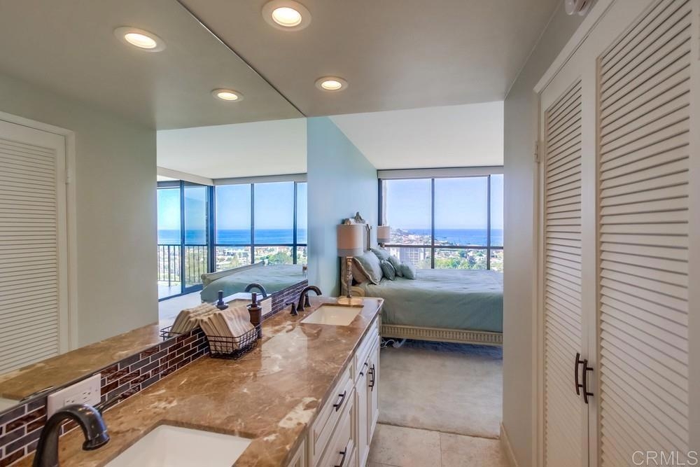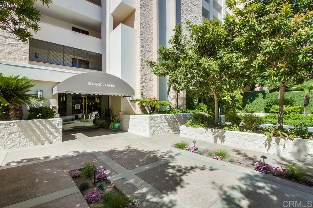 Stunning ocean views from this tastefully remodeled 12th floor condo offering reconfigured walls with expanded living space, new LED recessed smart lighting, electronic shades, new A/C, built in cabinetry, new dual glazed windows and floor to ceiling sliding glass doors, all new flooring, updated kitchen cabinets and waterfall quartz counter top, Subzero refrigerator, built in warming drawer oven, reverse osmoses water filtration, recessed in wall TV that displays live camera footage of the ocean view, large tiled balcony with electronic screen and plenty of storage. Enjoy perfect sunsets, cross breezes, and breathtaking ocean views from almost all rooms! No expense spared here! This unit has it all. Shore Tower provides resort-style amenities featuring an elegant foyer, gym with sauna, tennis courts, large rec room, sparkling pool and spa, guest suites for visiting friends or relatives and a BBQ area. There is an on-site property manager with security. This unit includes 2 assigned parking spaces on lobby level, as well as plenty of guest parking on site. Extra storage cabinet is in the storage room down the hall on 12th floor. Convenient access to La Jolla Shores, La Jolla Village, UCSD and nearby freeways. A great primary or secondary home awaits your pleasure. One pet up to 25 lbs allowed.