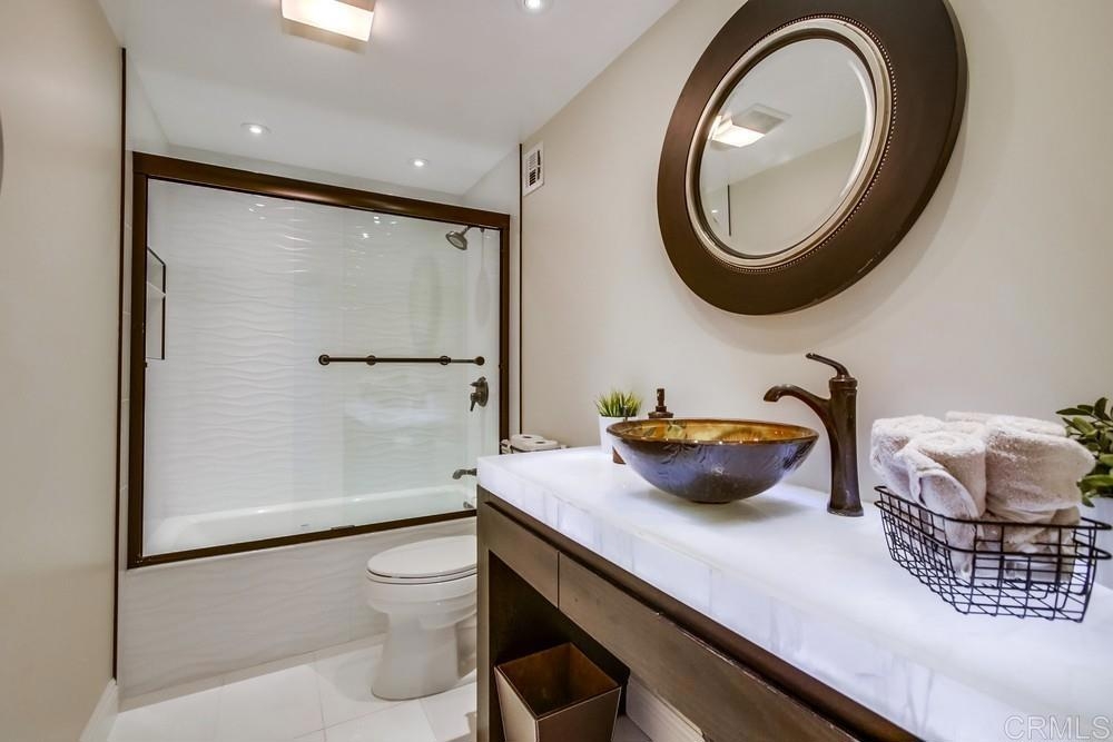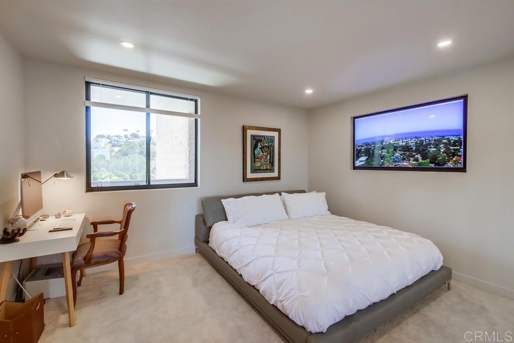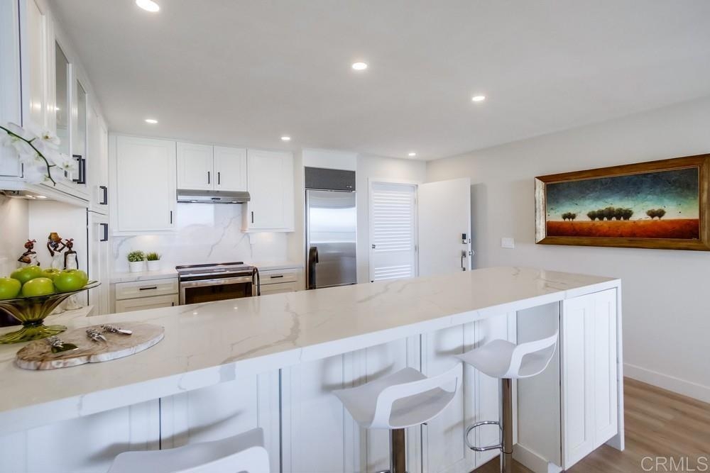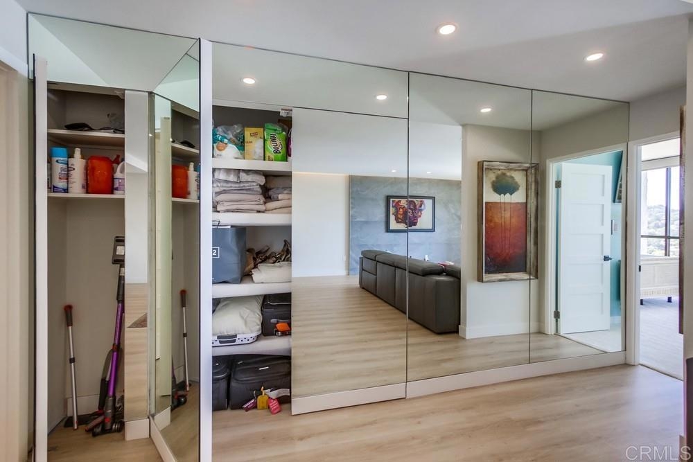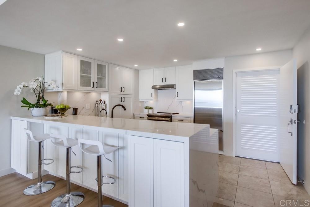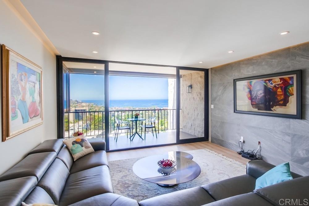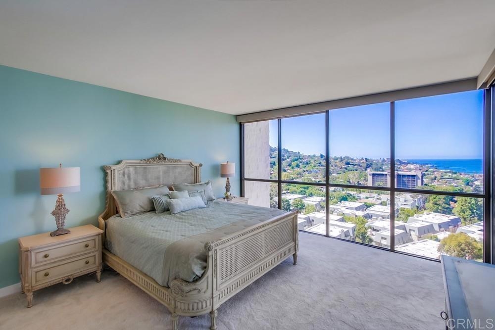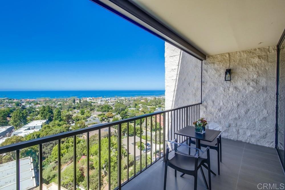 Stunning ocean views from this tastefully remodeled 12th floor condo offering reconfigured walls with expanded living space, new LED recessed smart lighting, electronic shades, new A/C, built in cabinetry, new dual glazed windows and floor to ceiling sliding glass doors, all new flooring, updated kitchen cabinets and waterfall quartz counter top, Subzero refrigerator, built in warming drawer oven, reverse osmoses water filtration, recessed in wall TV that displays live camera footage of the ocean view, large tiled balcony with electronic screen and plenty of storage. Enjoy perfect sunsets, cross breezes, and breathtaking ocean views from almost all rooms! No expense spared here! This unit has it all. Shore Tower provides resort-style amenities featuring an elegant foyer, gym with sauna, tennis courts, large rec room, sparkling pool and spa, guest suites for visiting friends or relatives and a BBQ area. There is an on-site property manager with security. This unit includes 2 assigned parking spaces on lobby level, as well as plenty of guest parking on site. Extra storage cabinet is in the storage room down the hall on 12th floor. Convenient access to La Jolla Shores, La Jolla Village, UCSD and nearby freeways. A great primary or secondary home awaits your pleasure. One pet up to 25 lbs allowed.