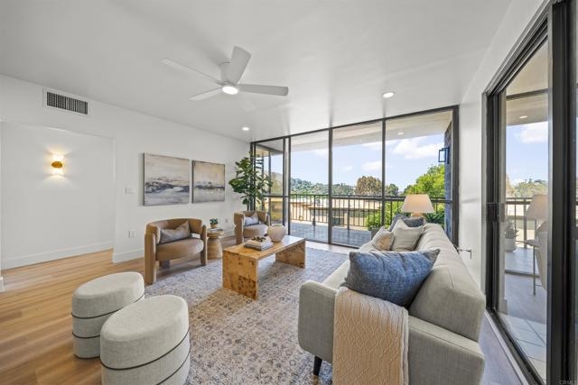 Beautifully updated, sun-drenched corner residence in the sought-after Shore Tower! Enjoy gentle ocean glimpses and tranquil greenbelt scenery from almost every room. This stylishly refreshed 2BR/2BA showcases a new contemporary kitchen, upgraded flooring, modern lighting, and a calm, coastal palette throughout. Floor-to-ceiling sliders open to an expansive private patio, perfect for effortless indoor-outdoor living. The spacious primary suite offers wide picture windows, a walk-in closet, and dual vanities. Resort-inspired amenities include a pool, spa, tennis courts, fitness center with sauna, guest suites, and more. With dedicated garage parking, plentiful guest spaces, and a prime location near La Jolla Shores, the Village, UCSD, and major freeways, this turnkey home blends comfort, convenience, and coastal charm.