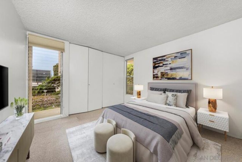 This beautifully bright and inviting 1-bedroom, 1-bathroom condo is a rare find in coastal La Jolla Shores. Ideally located on the second floor above the lobby and parking level, it offers excellent natural light and partial mountain views from both the living room and private balcony. Blending original charm with a fresh touch, the interior features new paint in the living room and bedroom, professionally cleaned carpets, and a recent deep clean throughout. Whether you're looking for a primary home, vacation escape, or investment property, this gem is just minutes from the beach, UCSD, restaurants, shops, and offers quick access to the 5 freeway.