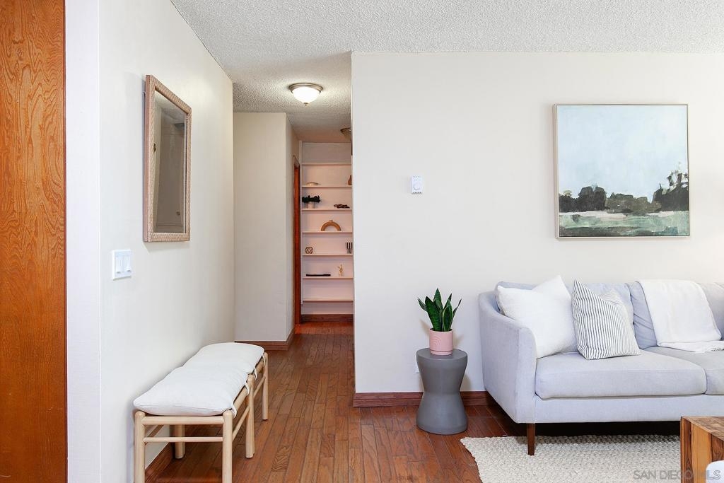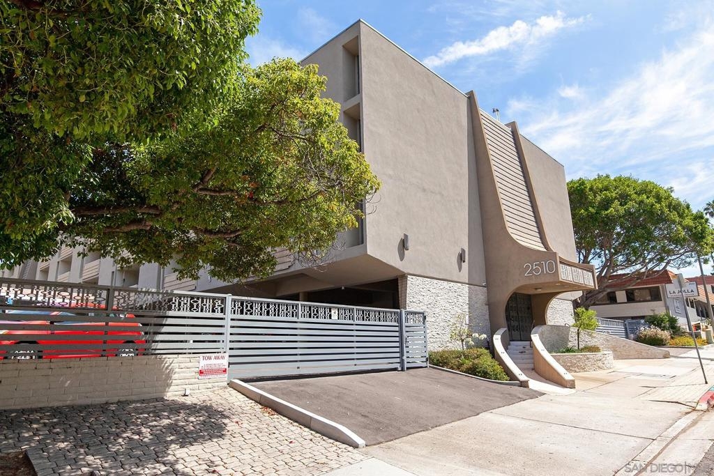 Don't miss this affordable La Jolla Shores gem! The spacious 1 bedroom, with optional 2nd bedroom/office space is a great opportunity to own in La Jolla. The light and bright condo has updated windows and french door sliders and is ready for its new owners to make it their own. The gated complex with an elevator is just a short walk to all that the La Jolla Shores has to offer. Relax on your private patio or out by the community pool that is tucked away in the back of the complex. Unit comes with 1 assigned carport parking space and HOA includes water, hot water, and trash.