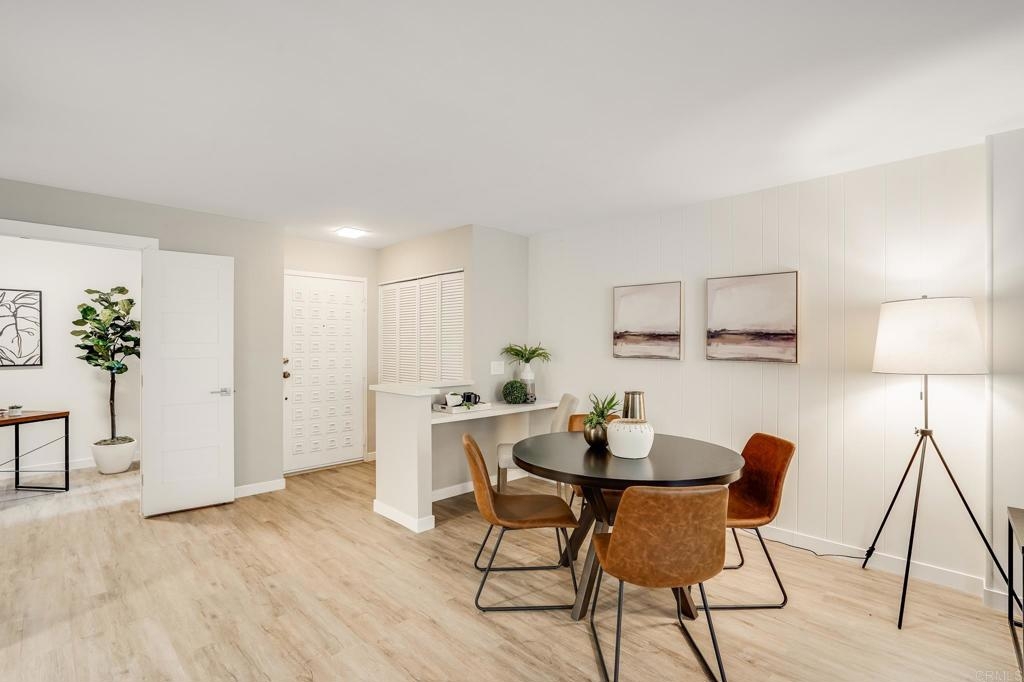 ICONIC MID CENTURY ARCHITECTURE…. The swinging HOT SPOT in the late 60's/70's, still TIMELESS today! Literally 1 mile to beach! FIRST TIME ON MARKET…OPEN BRIGHT SMASHING REMODEL! PRIVATE ground floor SINGLE LEVEL END UNIT! …One of a Kind location with PRIVATE wrap around YARD Featuring a covered patio, a sunny deck and sideyard ideal for a dog run. … French Oak Flooring throughout, Custom Paint & Trim……All NEW SUNNY AND WHITE Kitchen…… Sparkling QUARTZ counters, SHAKER cabinets, ALL NEW STAINLESS APPLIANCES, canned dimmer lighting …..Built in BREAKFAST/COFFEE BAR plus built in WINE BAR or ENTERTAINMENT BUFFET at spacious DINING AREA……HUGE LIVING AREA with oversized sliders to outside... BEDROOM 1 opens w/Double Doors allowing long look lines to Living Area, Glass Door to patio, and oversized window…. Smaller.....10' x 7' .....BEDROOM 2 is set up as OFFICE (no closet but room for) w/double door views to two garden areas ….TRANQUIL BATH: NEW Tavertine look porcelain tiled walk-in shower w/ marble stone floor, Vanity and wall heater. Bathroom can be separately accessed from Bedroom 1 OR Living Area..… INSIDE Stackable Washer dryer hookup, NEW efficient electric baseboard heaters, Gated covered Parking Space. LJRC Pool, Spa, Tennis Courts, Wellness/workout Center, ClubHouse. This is a V E R Y UNIQUE unit at La Jolla Racquet Club. Ready for summer fun now!