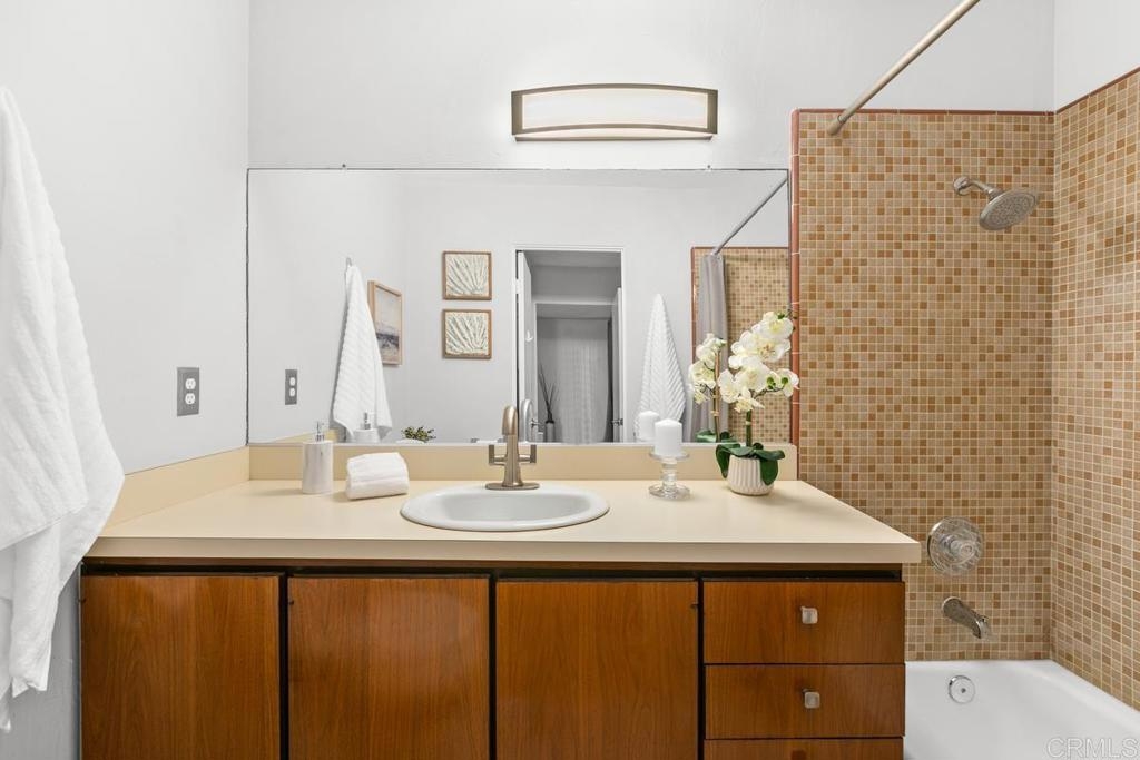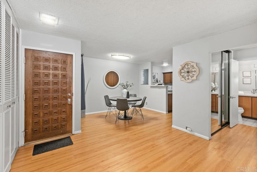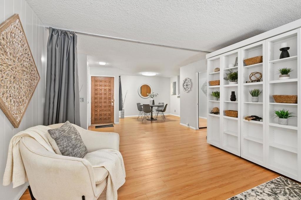 The coastal lifestyle awaits in this updated ground floor 1BD/1BA condo in the wonderful La Jolla Racquet Club complex, just minutes from La Jolla Shores! Open concept layout with luxury vinyl plank flooring & new appliances in kitchen! Murphy bed in living room is great for guests! Spacious private patio with covered seating area. LED lighting throughout and new cast iron Kohler kitchen sink with professional grade faucet. Bathroom has been upgraded with new sink with high-end Kohler fixture and new Kohler toilet. Shower valve & fixtures, including drain, have been replaced. Under sink plumbing has been upgraded. Assigned parking space in covered gated garage and assigned closet sized storage locker. Secure bicycle storage room. Community laundry with the ability to add private laundry in the unit. Fantastic amenities include exercise room, pool, spa, tennis courts, and clubhouse! Just a short walk or drive to everything beautiful La Jolla has to offer – great beaches, shopping, dining, museums, and more!