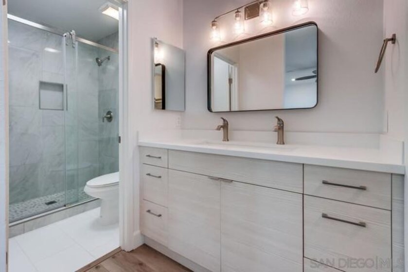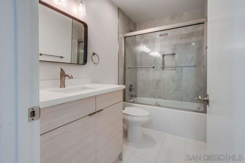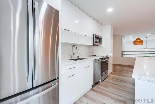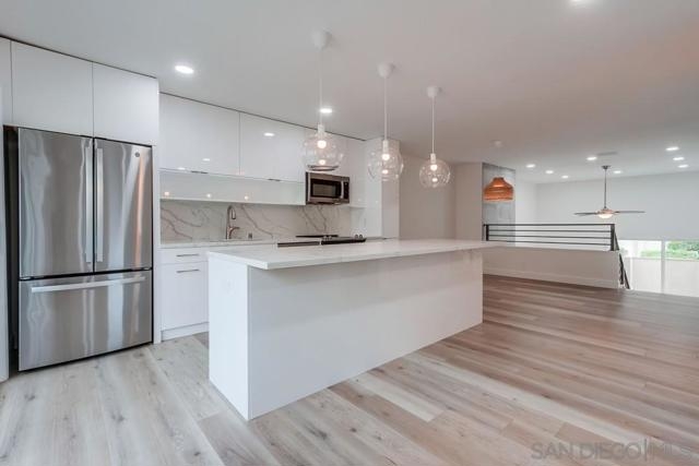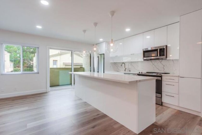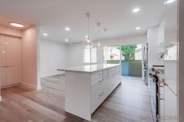 Dazzling, modern coastal living in this impeccably renovated 3-bedroom, 2.5-bath townhome. Completely transformed from top to bottom, the home features wide-plank luxury vinyl floors & a crisp color palette that creates a bright and open atmosphere. Ideal gourmet kitchen with gleaming quartzite backsplash & countertops, modern white cabinetry, & spacious eat-in island. All bathrooms have been meticulously updated with new cabinets, tile and fixtures. Additional features include central HVAC, updated windows throughout, 2 car garage, and cozy fireplace with vaulted ceiling in the living room. Space for an office or sitting area adjacent to the kitchen. Enjoy multiple outdoor spaces- a balcony off the kitchen and a spacious enclosed patio with direct access from the living room. Beautiful, desirable community with pools, spa and clubhouse and next to a park/greenbelt. This complex is located west of the 5 and near restaurants, shopping, beaches and UCSD.
