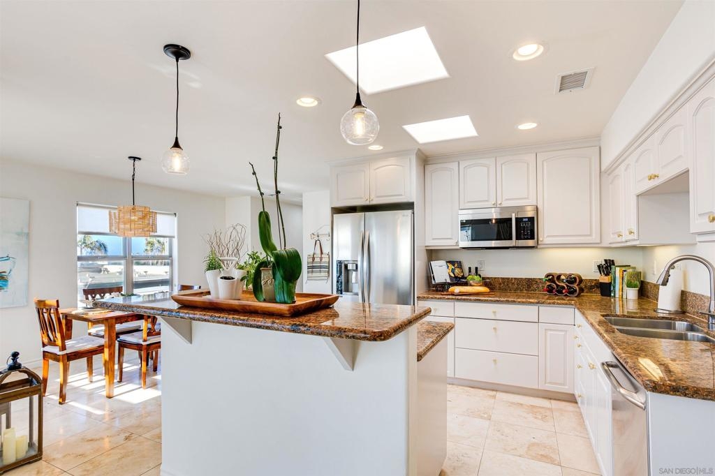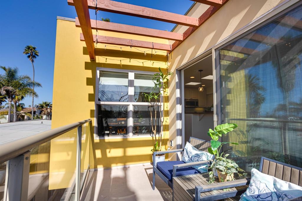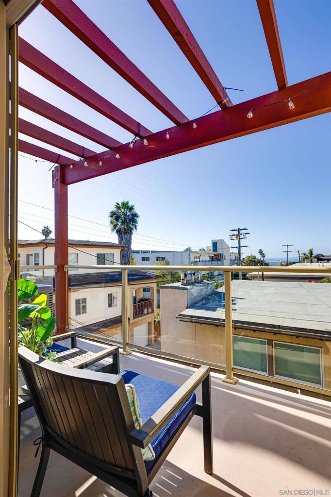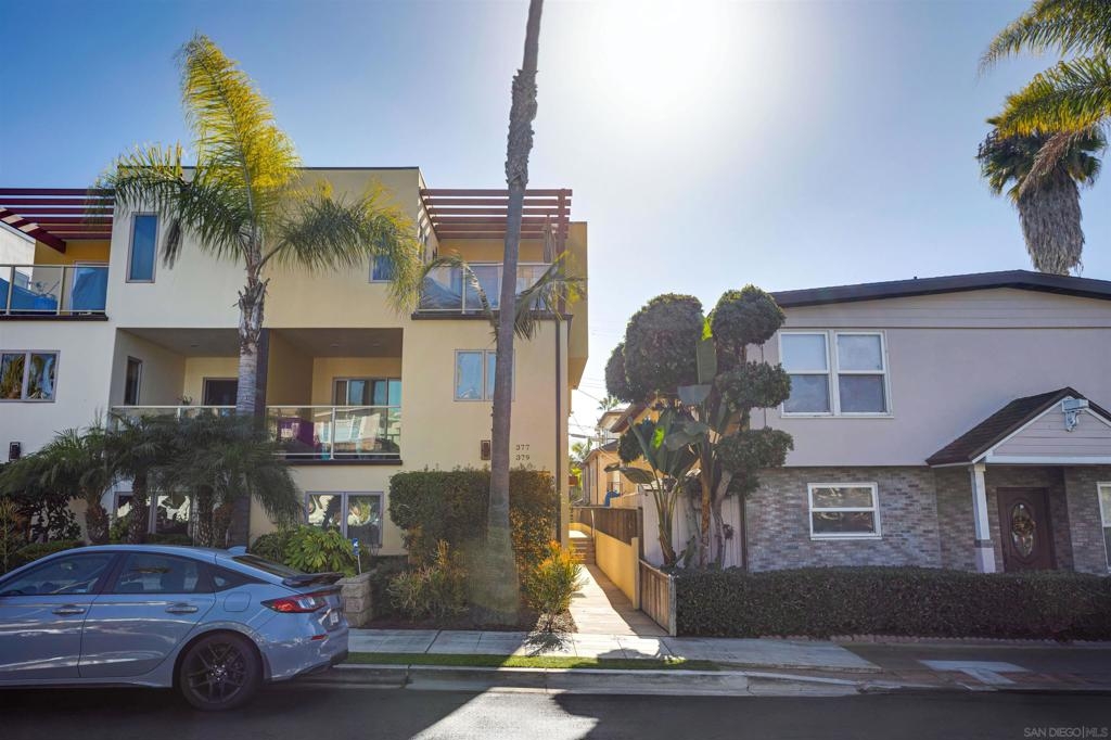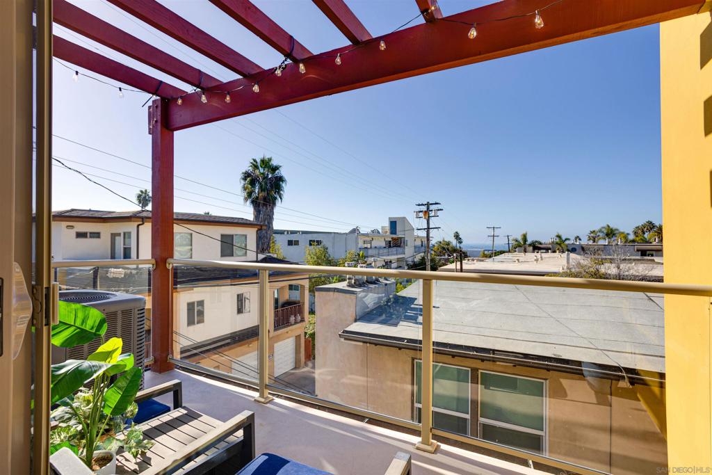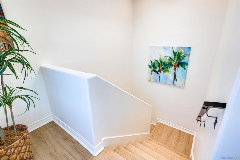 This light and bright town home offers 2 bedrooms, 2.5 bathrooms and an additional flex room. Ocean view from this beautiful Southwest facing condo with luxury vinyl flooring and travertine tile. Stainless Steel appliances, granite counters, 3 skylights, and laundry near the bedrooms. Primary bedroom with walk-in closet, dual vanity and large walk-in shower. Top level of the home provides an ocean view from the windows and balcony. Enjoy incredible sunsets and watch the surfers or join them at Windansea Beach. Located about a 1000 ft from the beach, along with close walking score to many shops and restaurants. An easy bike ride and access to La Jolla Village, Bird Rock and Pacific Beach. A private 2 car tandem garage to store you surf boards and beach chairs. This 4 unit complex has HOA owned Solar, recently painted with in the past year, newer exterior lighting and beautiful landscaping.