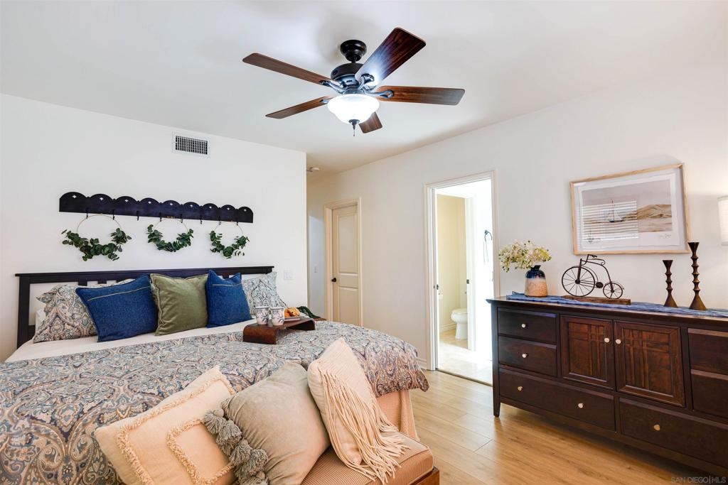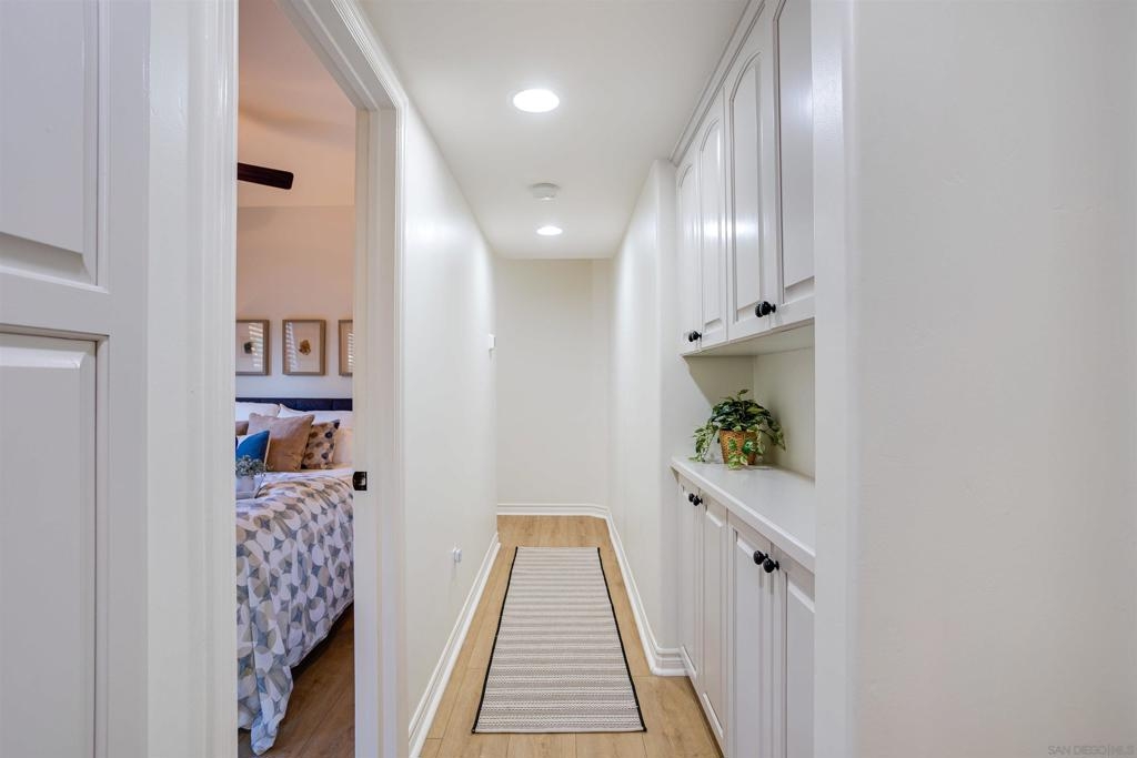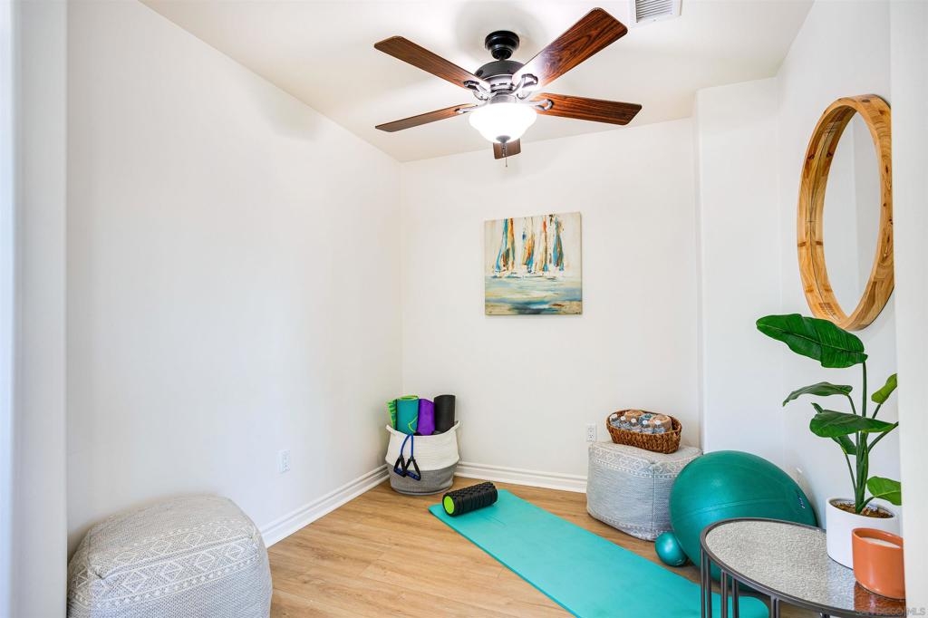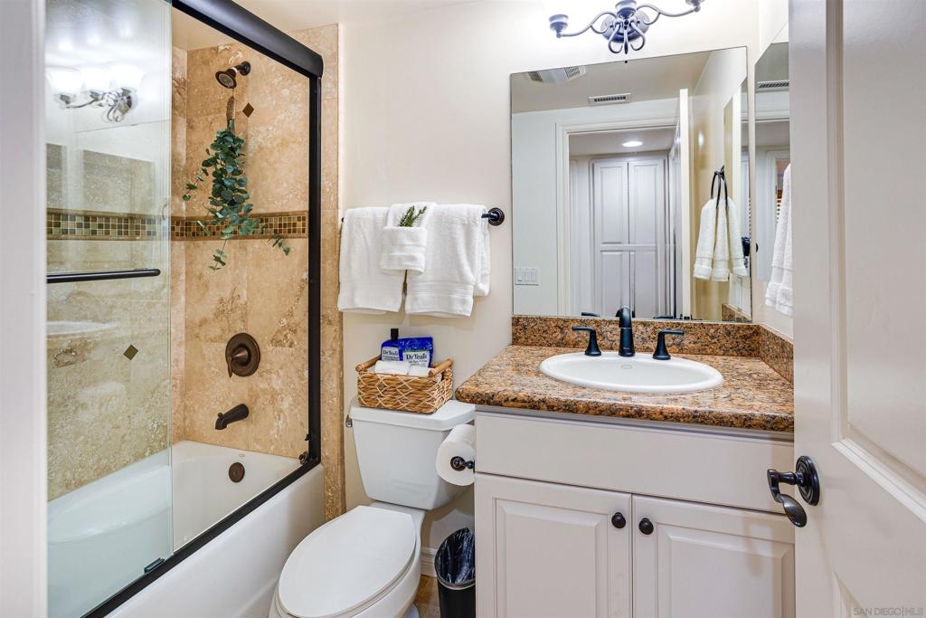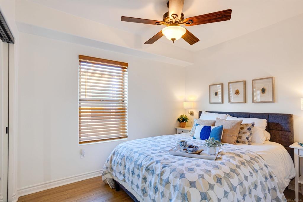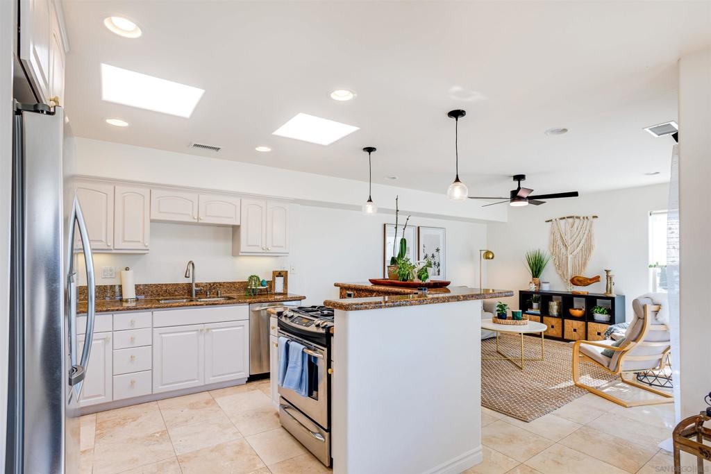 This light and bright town home offers 2 bedrooms, 2.5 bathrooms and an additional flex room. Ocean view from this beautiful Southwest facing condo with luxury vinyl flooring and travertine tile. Stainless Steel appliances, granite counters, 3 skylights, and laundry near the bedrooms. Primary bedroom with walk-in closet, dual vanity and large walk-in shower. Top level of the home provides an ocean view from the windows and balcony. Enjoy incredible sunsets and watch the surfers or join them at Windansea Beach. Located about a 1000 ft from the beach, along with close walking score to many shops and restaurants. An easy bike ride and access to La Jolla Village, Bird Rock and Pacific Beach. A private 2 car tandem garage to store you surf boards and beach chairs. This 4 unit complex has HOA owned Solar, recently painted with in the past year, newer exterior lighting and beautiful landscaping.