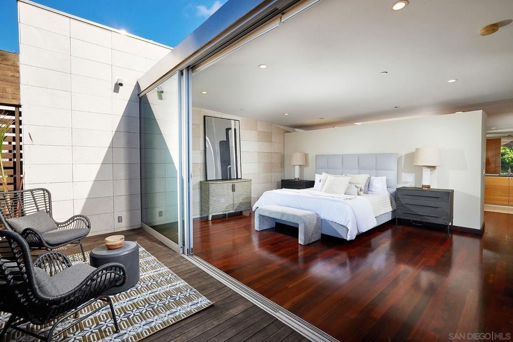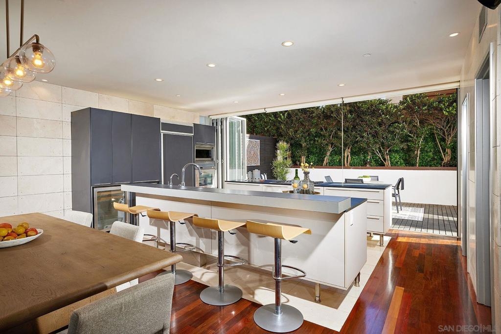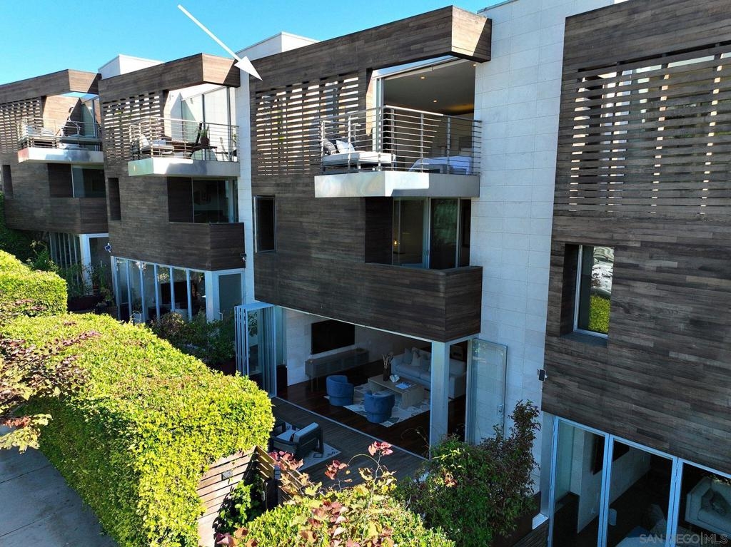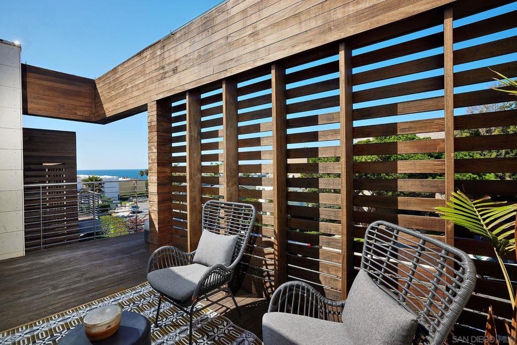 This lovely, contemporary home offers a completely open flow living space while enjoying the privacy offered by the enclosed entry and relaxing patio/deck. The three levels flow easily from the main floor living areas and exquisitely designed kitchen to the bedroom areas, culminating with the luxurious master suite. Each of the bedroom levels open up to expansive, ocean view decks and are serviced either by an elegant stairway bordered by glass or by an elevator that will bring you up from the private 2 car garage. "Conceived as a series of town residences, SIX in La Jolla combines clear form with continuous indoor/outdoor spaces, elevating to the views of the Pacific Ocean." This description of his work by the architect, Sebastian Mariscal, presents the perfect picture of this special place. The home is literally steps from both the beach known as "Horseshoe" and the vibrant atmosphere of the Village of La Jolla with its famous shopping and restaurants. The home is freshly painted and the wood floors have been refinished, bringing out the nuances of the wood hues.