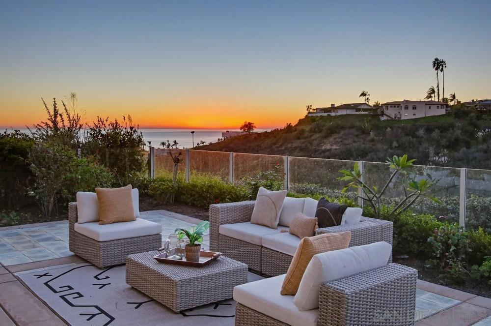 Situated in the beautiful and tranquil Emerald Cove community, this canyon-rim hideaway offers stunning ocean and sunset views enhanced by the surrounding natural landscape. Perched above a serene canyon, the home enjoys exceptional privacy and uninterrupted coastal breezes. Volume ceilings and a beautifully appointed fireplace anchor the main living area. Rich Brazilian cherry wood flooring flows throughout the generous floor plan. The primary suite includes an enclosed ocean-view balcony offering year-round comfort and a peaceful retreat to enjoy morning light or evening colors over the water. Outdoor spaces are designed to maximize the blue-water and canyon vistas, including a private patio perfectly positioned for sunset views. Located within the boundaries of top-rated schools: Bird Rock Elementary, Muirlands Middle School, and La Jolla High.
