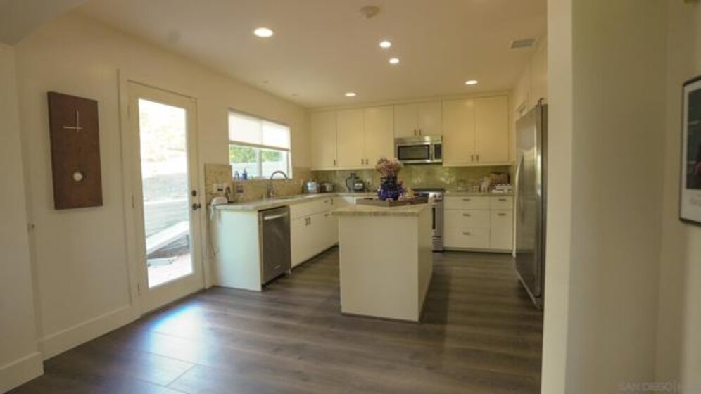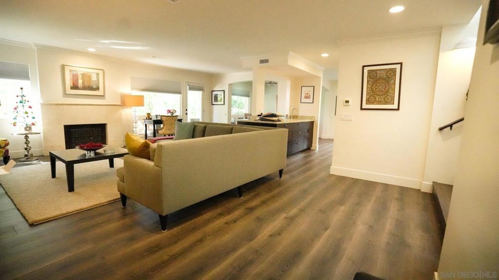 You’re welcomed by an impressive mezzanine and grand living room featuring beautiful luxury vinyl plank flooring, a stylish bar island, and a cozy fireplace that opens to a tranquil, greenscape patio — perfect for relaxing or entertaining. The newly renovated and expanded kitchen is designed for culinary inspiration, complete with a spacious center island, walk-in pantry, custom cabinetry, granite countertops and backsplash, and new windows and sliders throughout that fill the home with natural light. The large primary suite offers dual closets and a private balcony with peek ocean and landscape views — your own peaceful retreat.